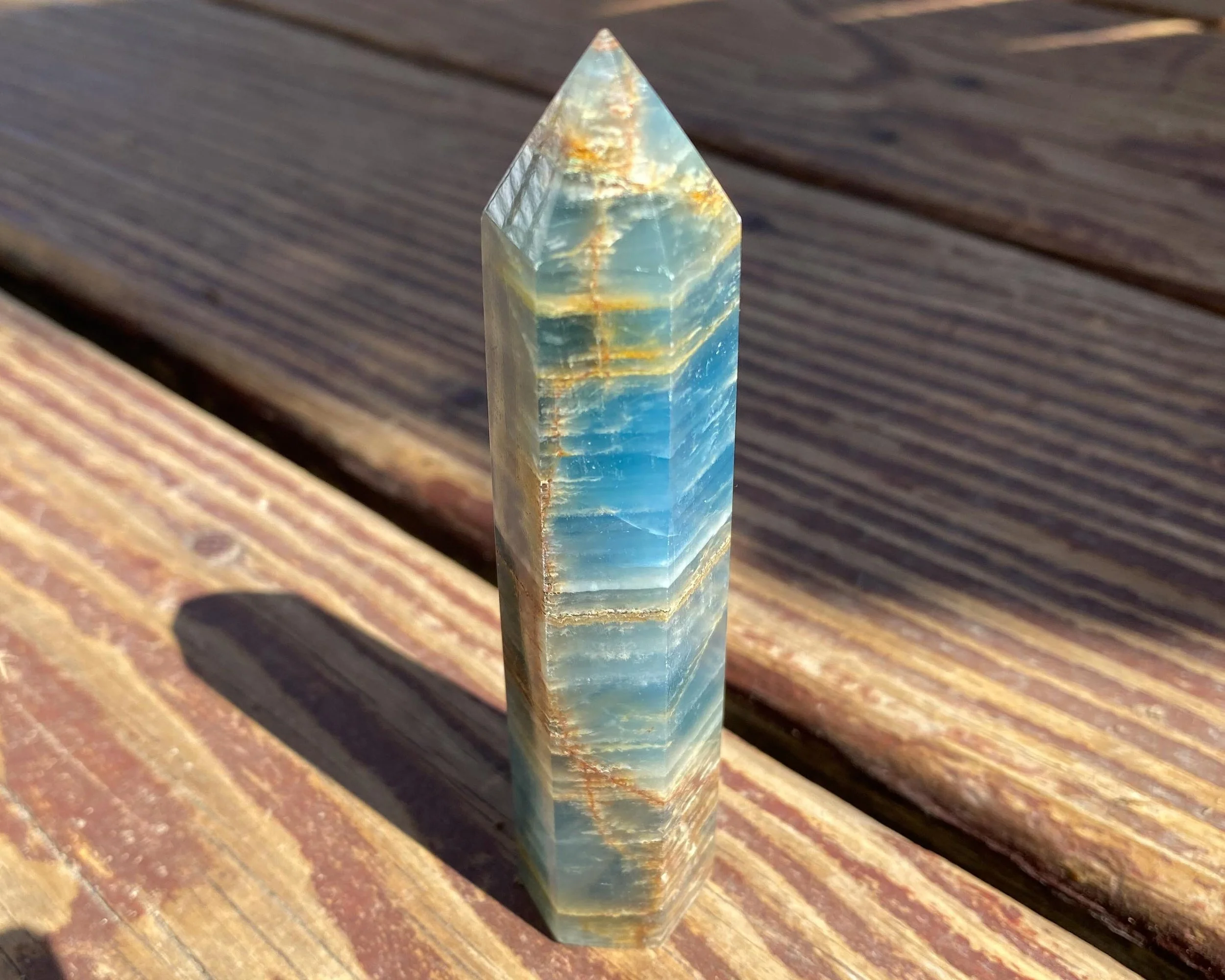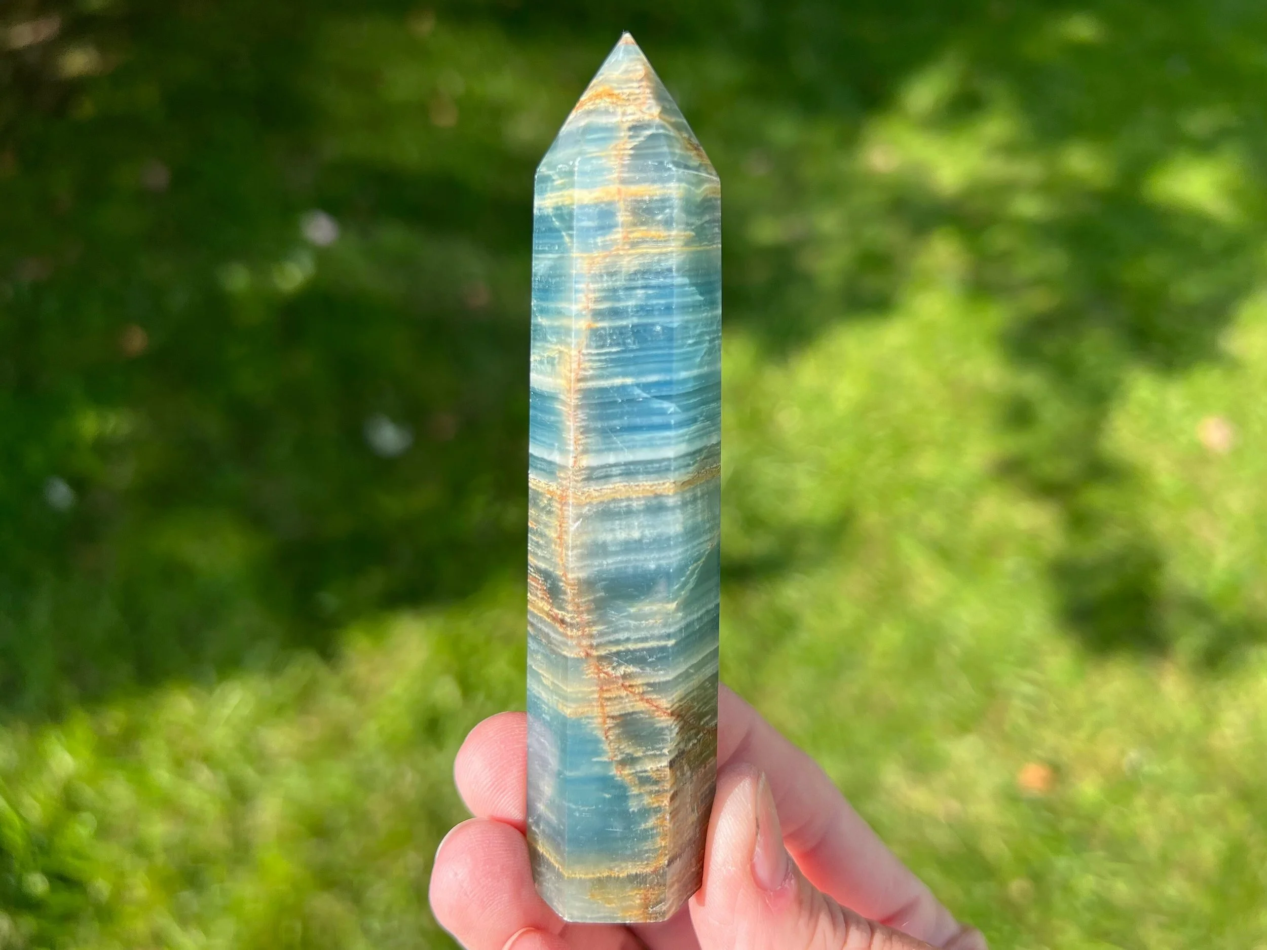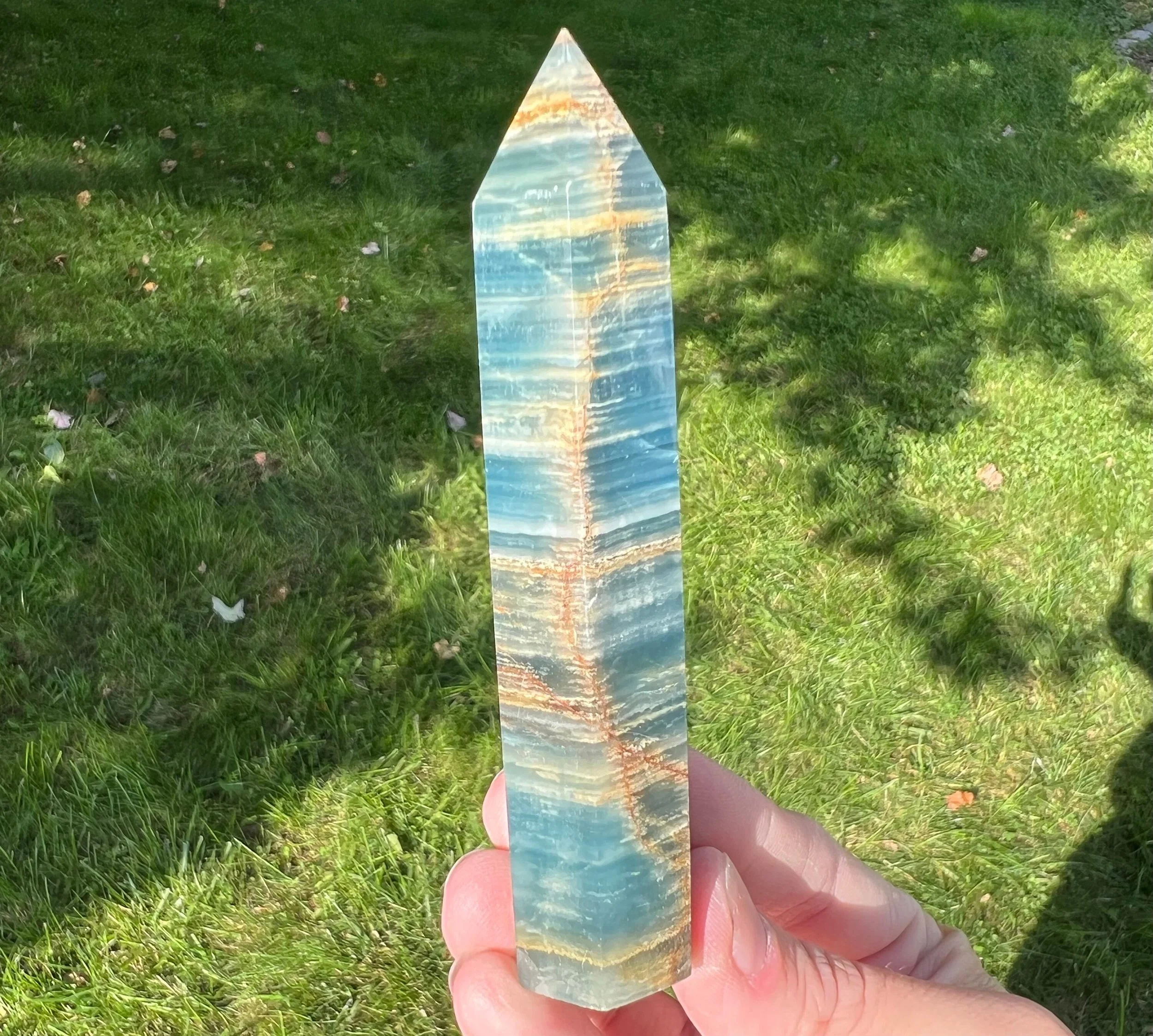 4.1" Blue Aquatine Lemurian Calcite Crystal Tower #11 Bright Blue Onyx Point from Argentina, Self Standing Polished Gemstone Decor Gift Idea