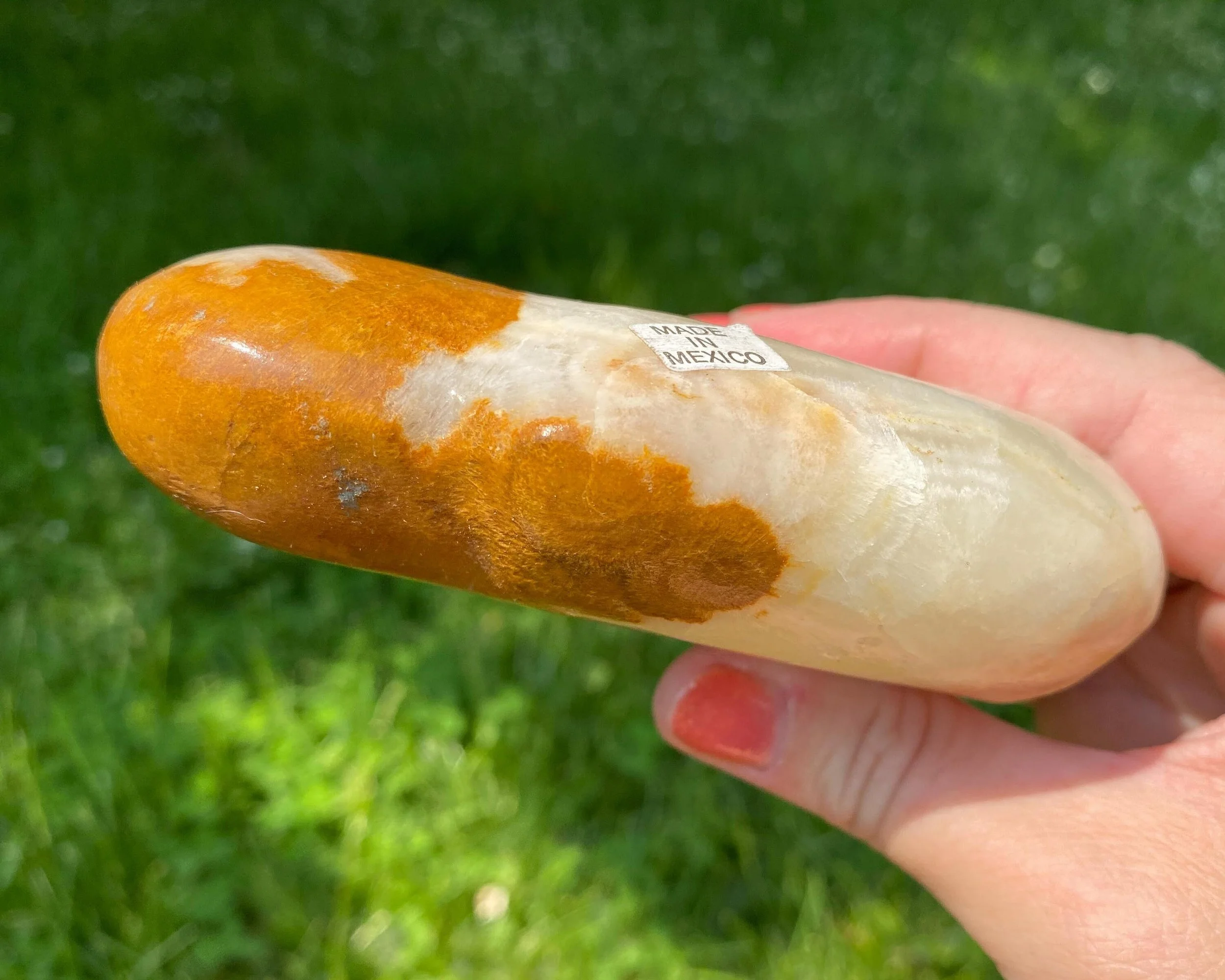 This is a Zuni style bison or buffalo carved from banded Calcite from Mexico also called Onyx. It has a gorgeous color and stands upright and looks extra beautiful when light shines from behind it :)