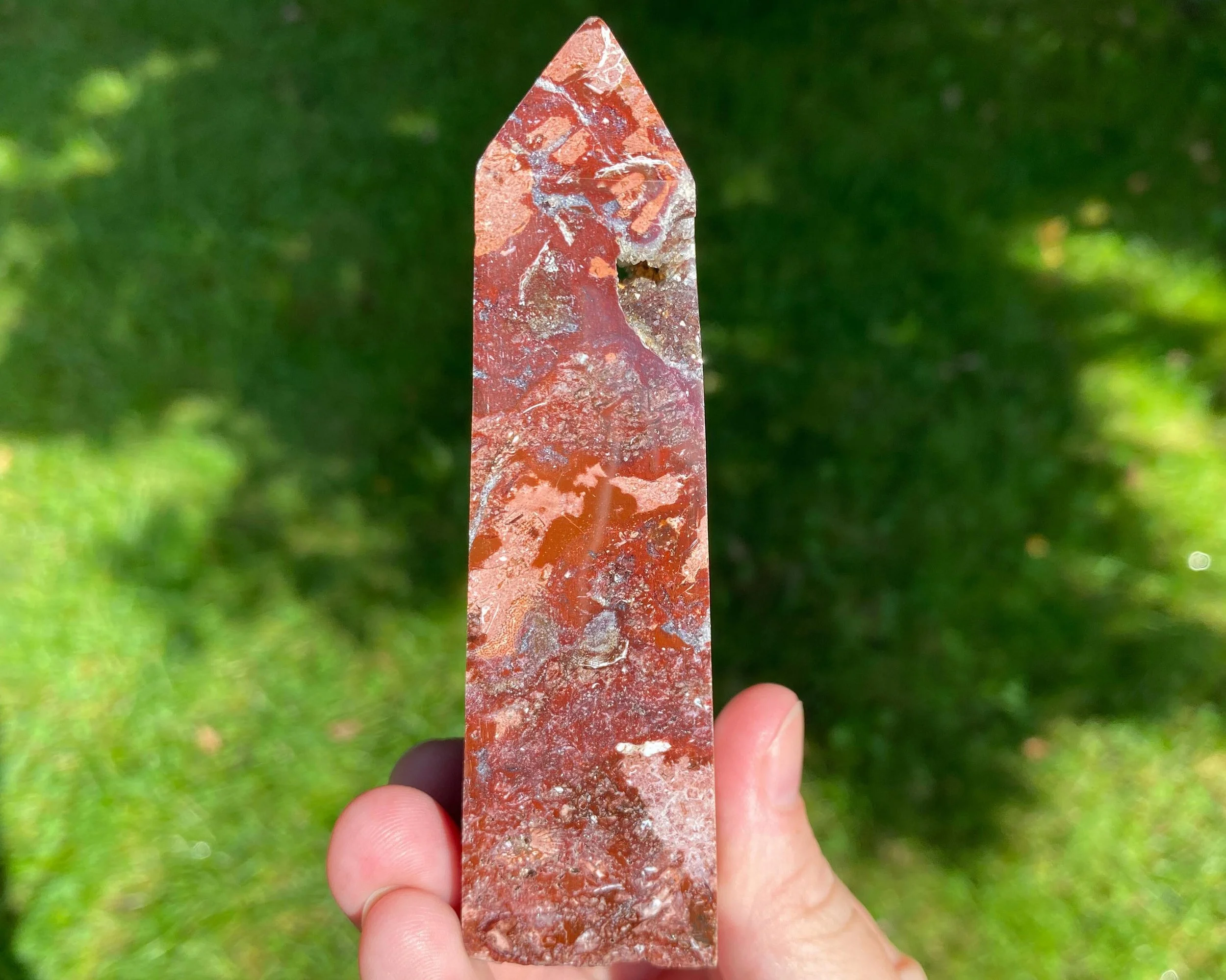 4.1" Red Jasper Crystal Tower, Druzy Quartz Pockets, Polished Point, Self Standing, Gift for Her, Gift for Mom, for Him, Sparkly Crystals #1