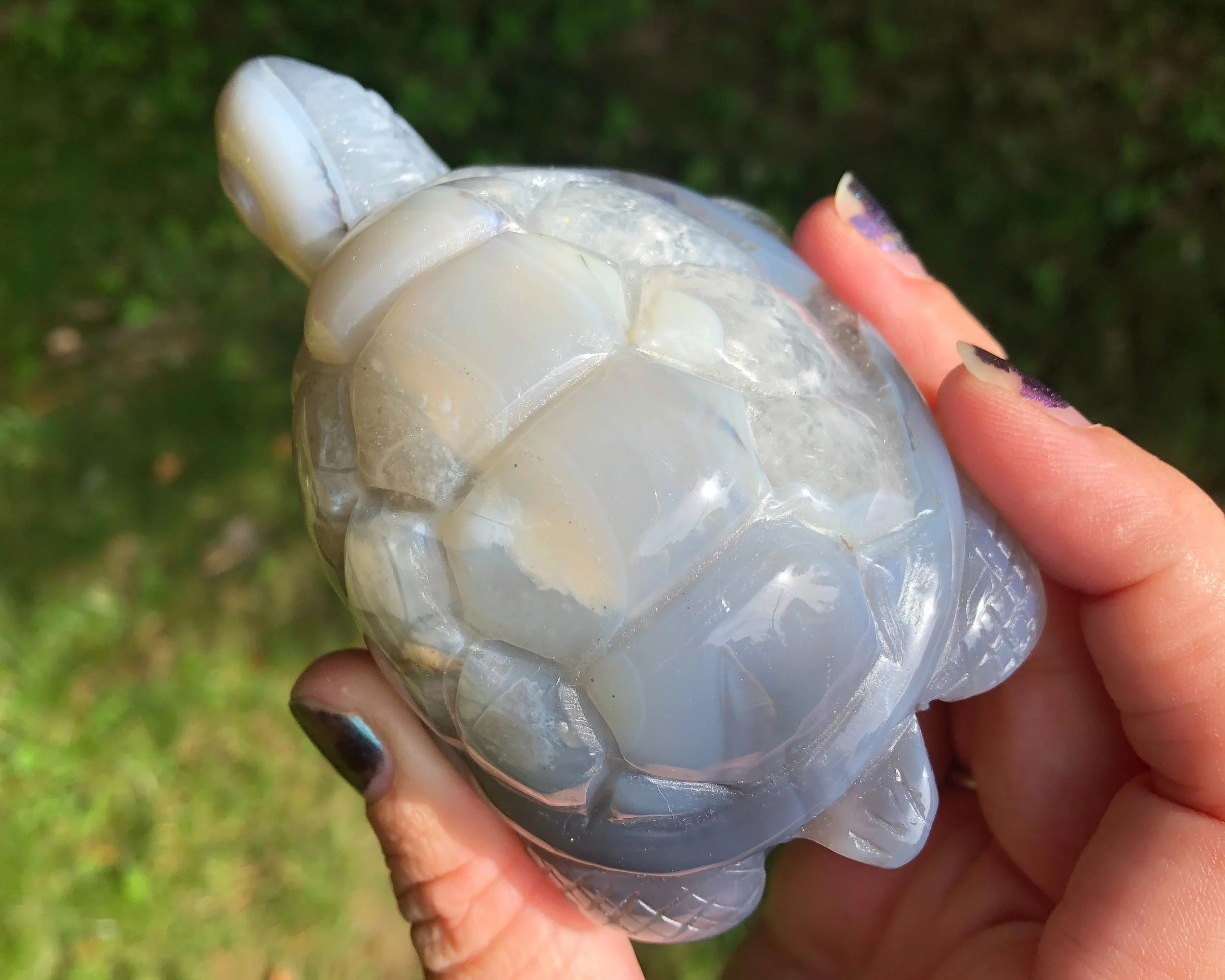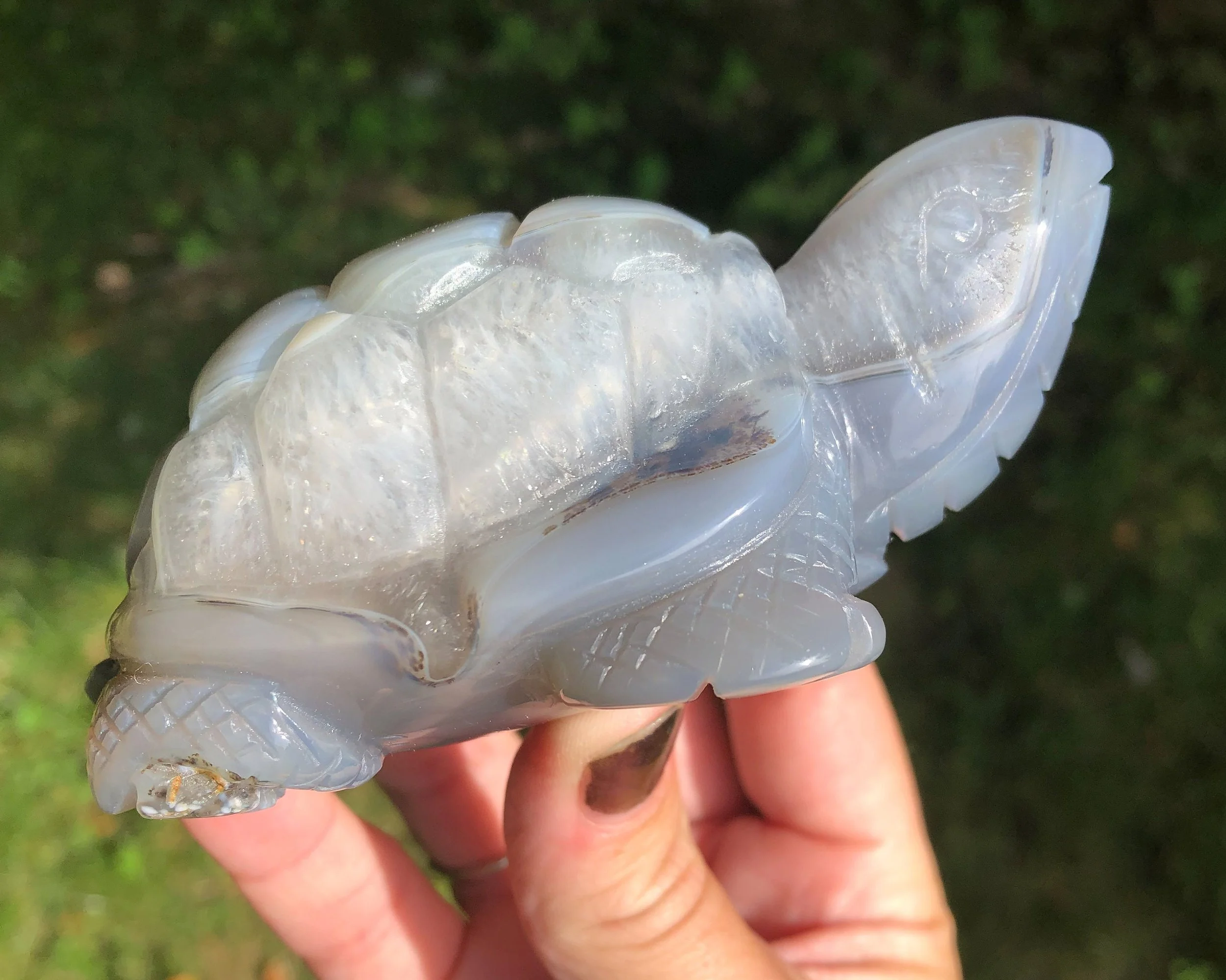 4.3" Agate Turtle Large Gray Banded Agate and Quartz Tortoise Figurine Crystal Carving #1