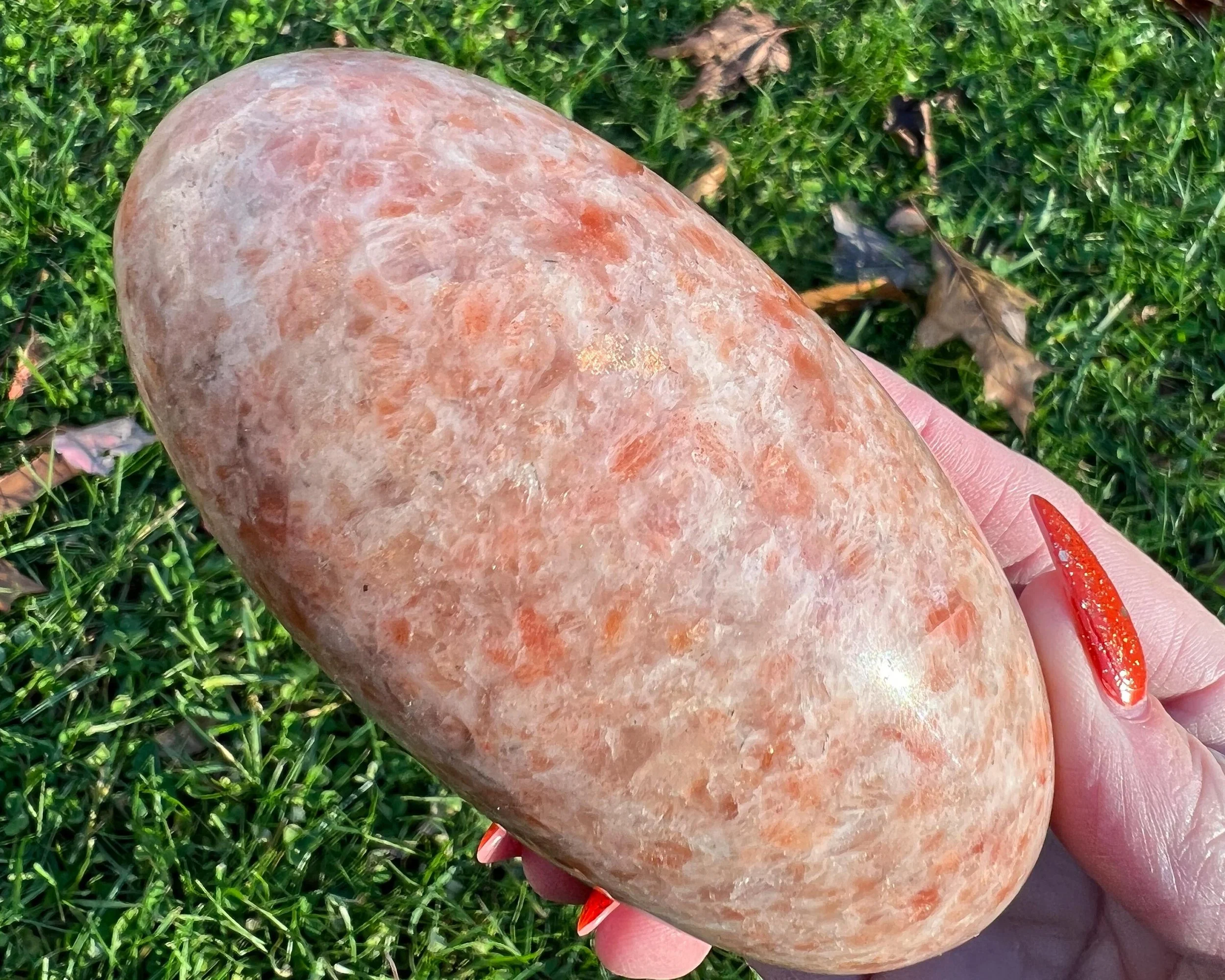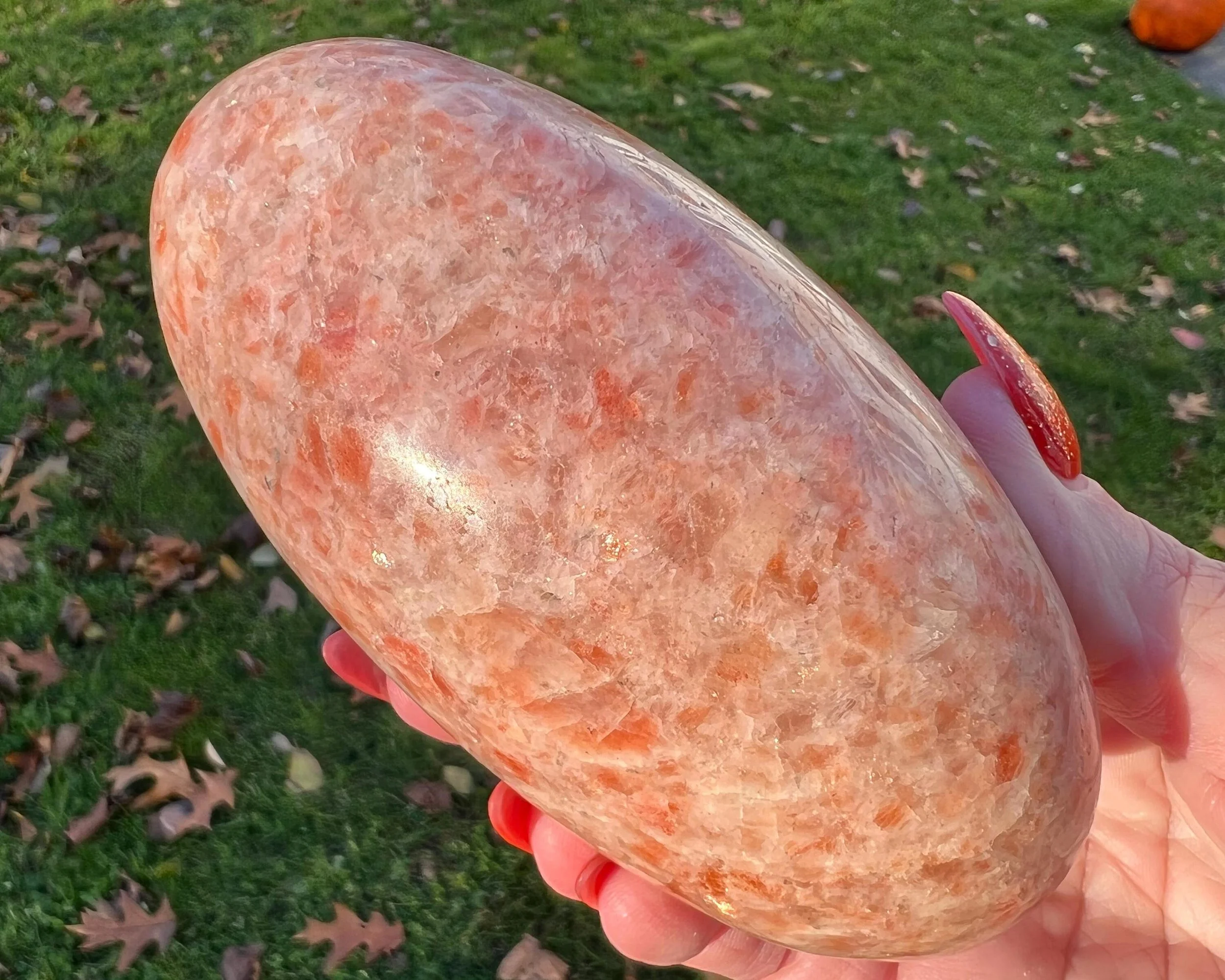 4.3" Sunstone Shiva Lingham, Large Confetti Sunstone, Orange Polished Crystal, from India, Birthday Gift for Wife, Gift for Mom #5
