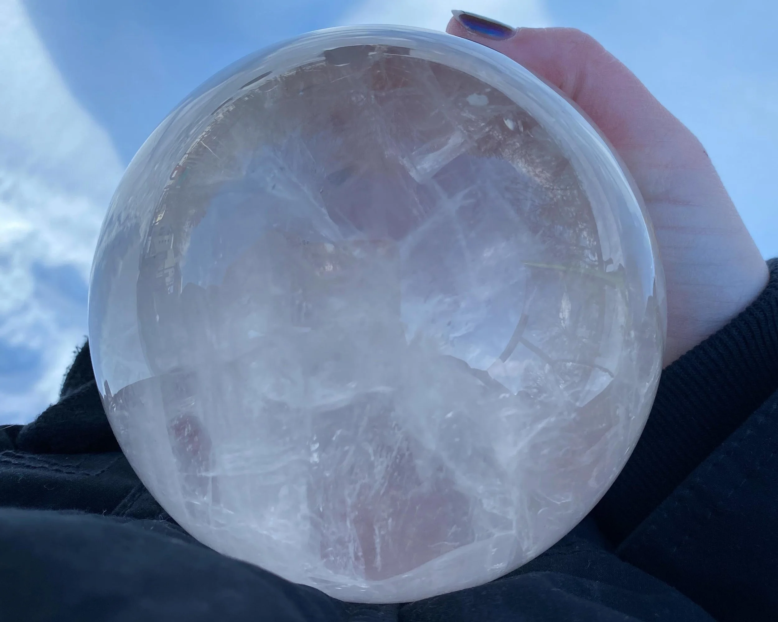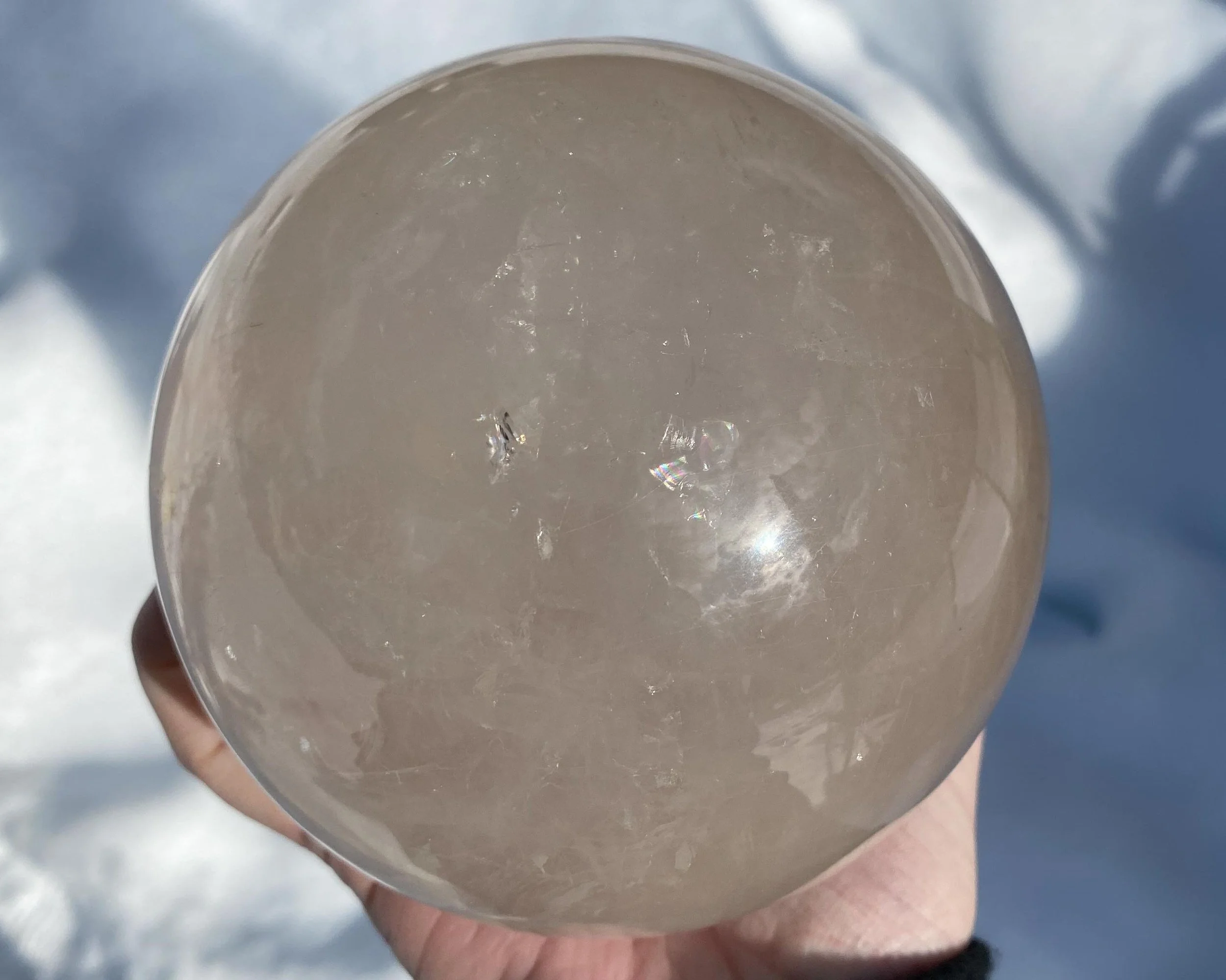 4.6" Quartz Sphere with Hematite and Rainbows, Clear Crystal Ball, Large Quartz Sphere, Golden Healer, Witchy Gift for Her, Wife, Bestie #YH