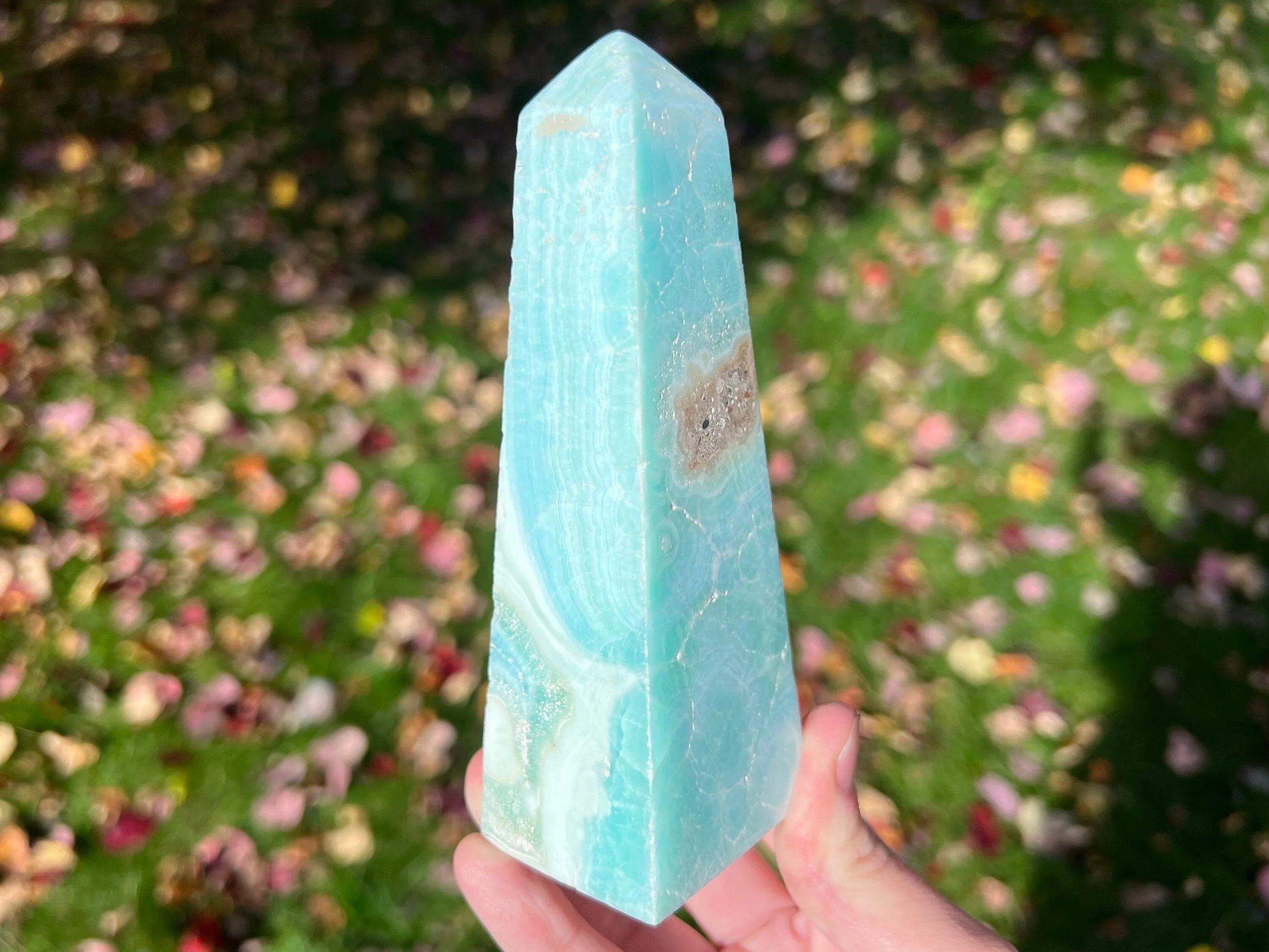 5.2" Blue Aragonite Crystal Tower #12 Large Polished Point, Aqua Blue Banded Calcite, Home Decor, Caribbean Gemstone Gift Beach House Accent