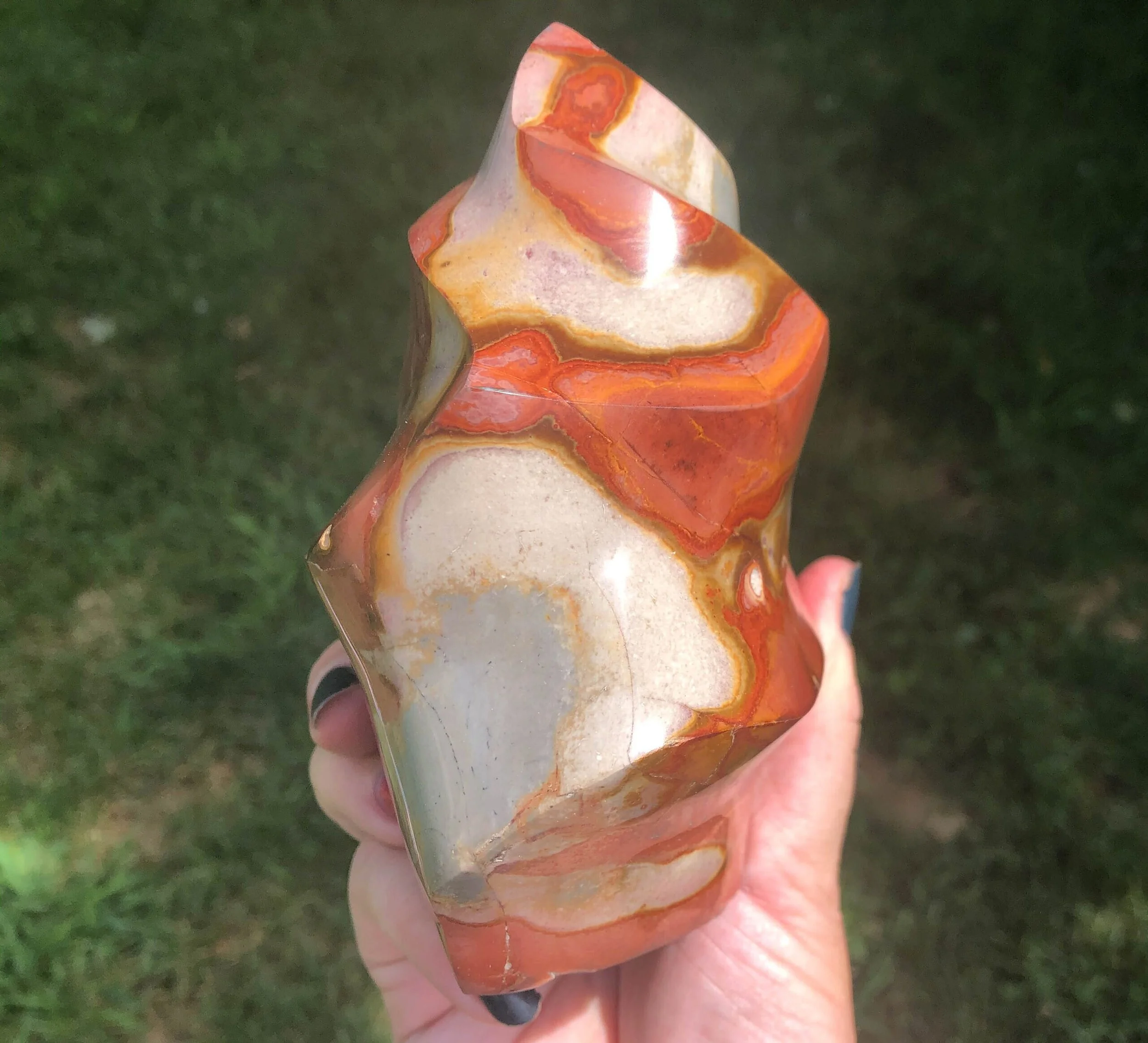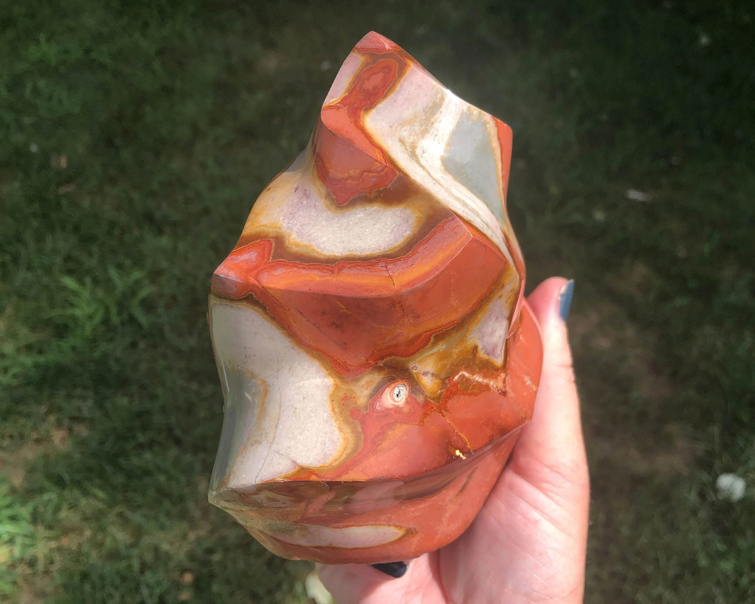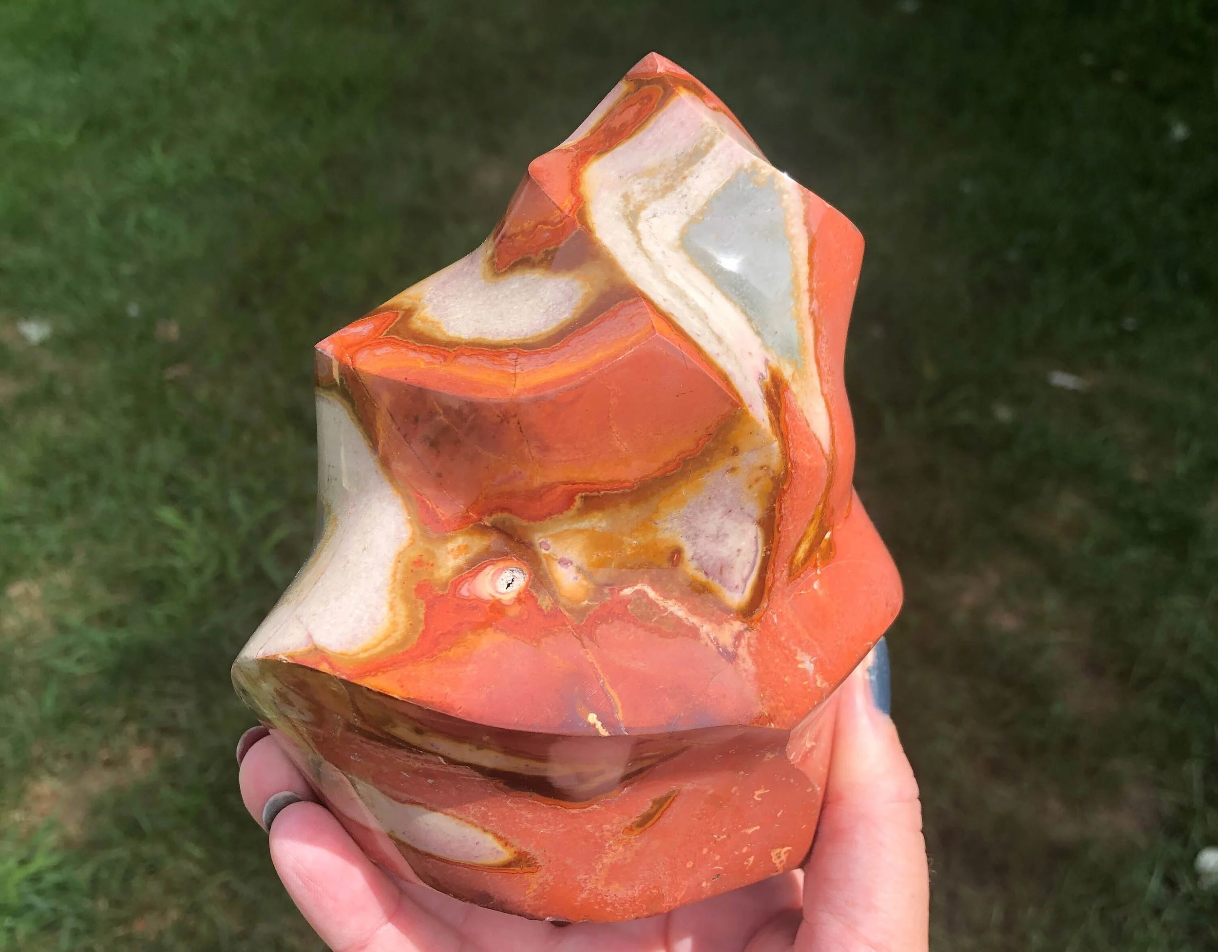 Image 1 of 10 Image 2 of 10 Image 3 of 10 Image 4 of 10 Image 5 of 10 Image 6 of 10 Image 7 of 10 Image 8 of 10 Image 9 of 10 Image 10 of 10 5.4" Polychrome Jasper Flame, Crystal Flame Carving, Crystal Spiral, Desert Jasper, Polished Stone, Home Decor, Pink Blue, Gift for Her #3 $102.06 Beautiful, bold and colorful Polychrome Jasper cut and polished into a lovely self-standing 'flame' or spiral shape! :) Measures 5.4 x 4.5 x 3.2 inches Weighs 1271 grams / 2.8 pounds Thanks for looking! :) Kouva Dream Catchers <3 Add To Cart Added! Beautiful, bold and colorful Polychrome Jasper cut and polished into a lovely self-standing 'flame' or spiral shape! :) Measures 5.4 x 4.5 x 3.2 inches Weighs 1271 grams / 2.8 pounds Thanks for looking! :) Kouva Dream Catchers <3 Reviews Reviewer Name Review Date Star Rating Description Posted on Etsy Product Show More