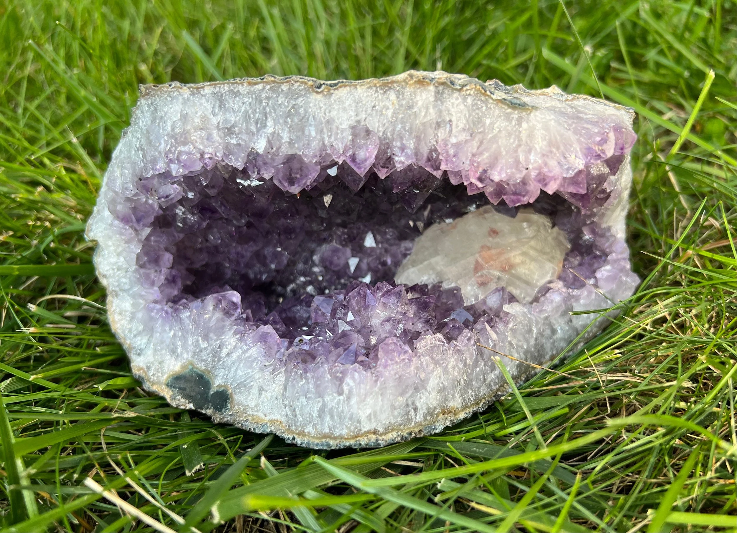 7" Amethyst Geode with Calcite and Pyrite, Large Crystal Cluster from Brazil, Purple Druzy, February Birthday Gift, Gemstone Home Decor #2