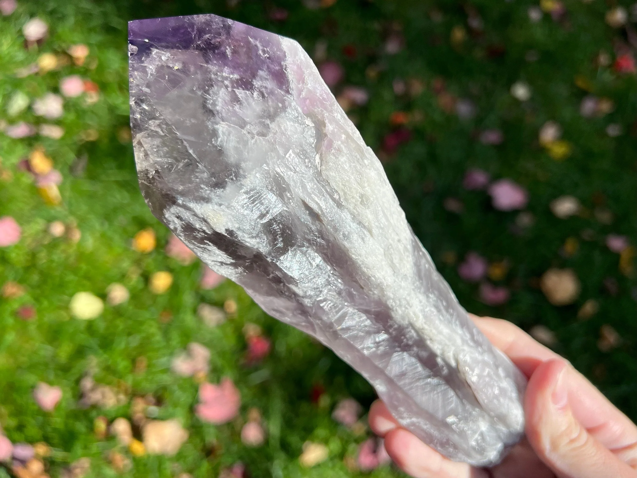 8.1" Bahia Amethyst Crystal Point #8 Large Phantom Crystal Wand, Elestial Smoky, Polished Termination, Raw Sides, February Birthstone Gift
