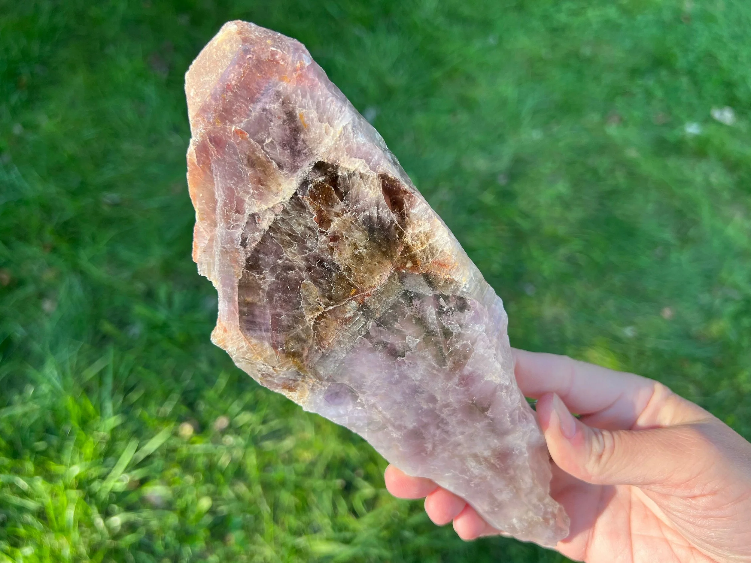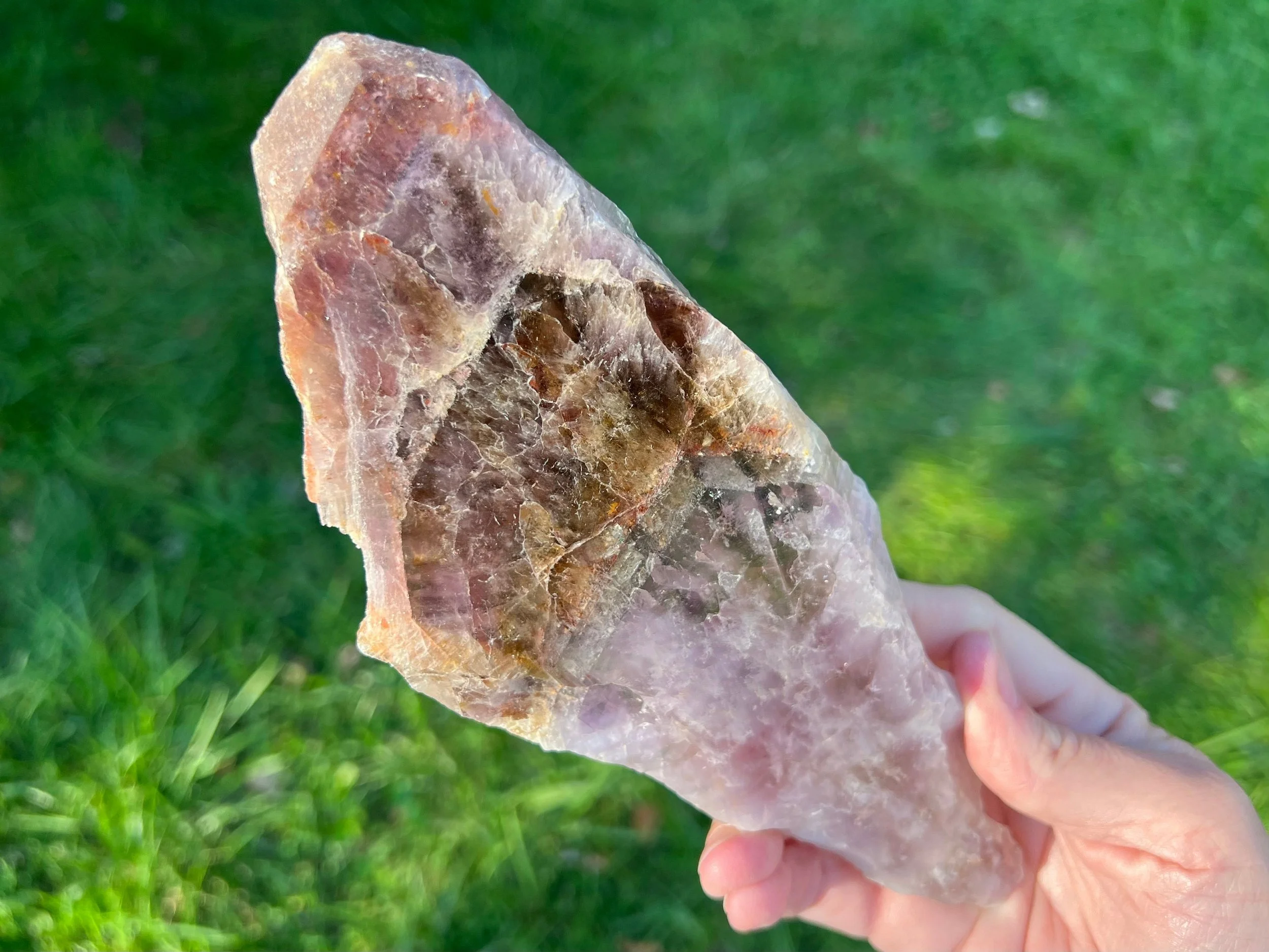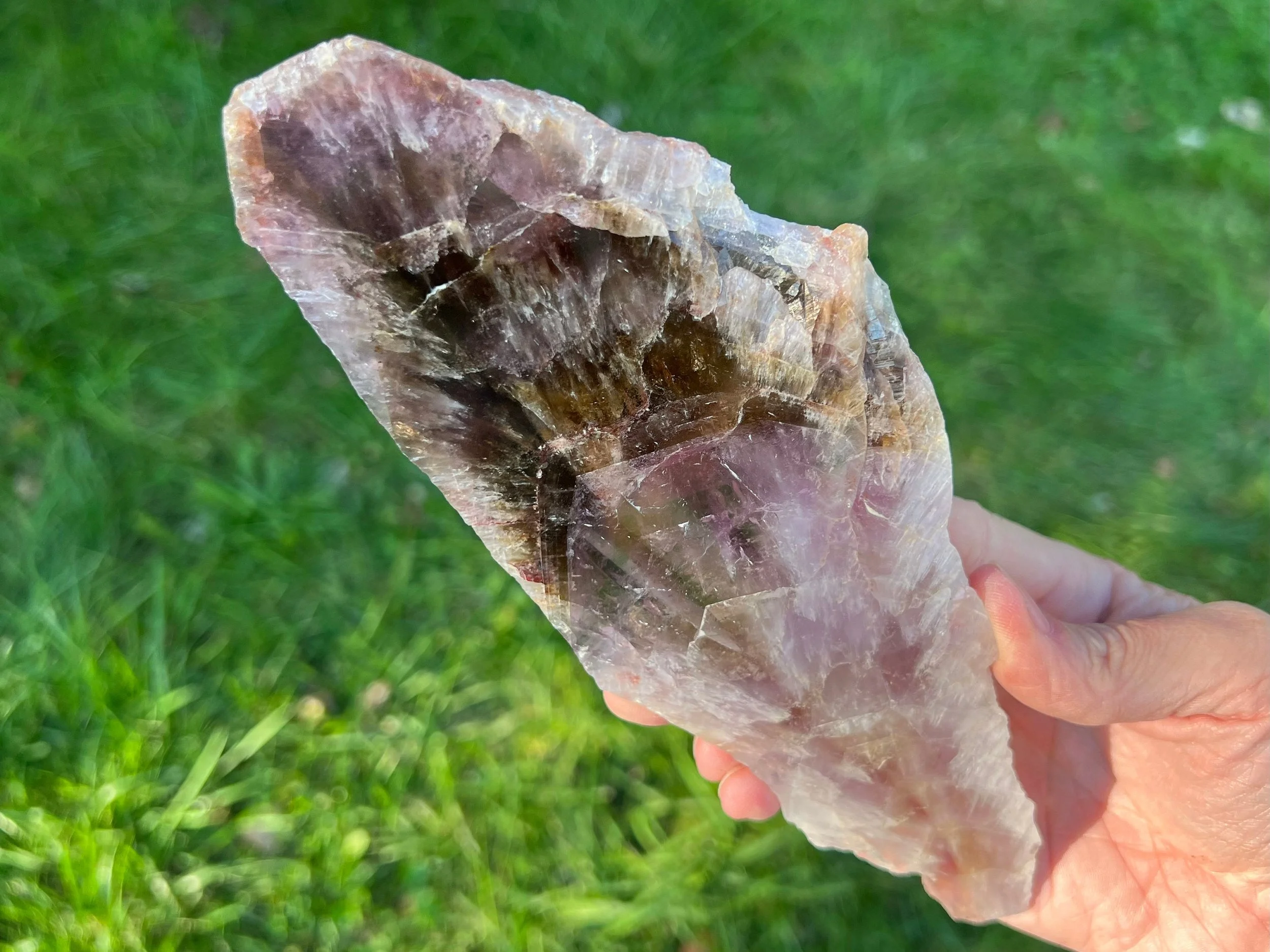 The same is true of Cacoxenite, which again has been disproven to exist in Quartz via laboratory analysis. It cannot exist in these Amethyst because the environment they form in has no phosphorus present. What are those shiny, often golden fan-shaped sprays then? They are Goethite - which is already one of the “seven” minerals.