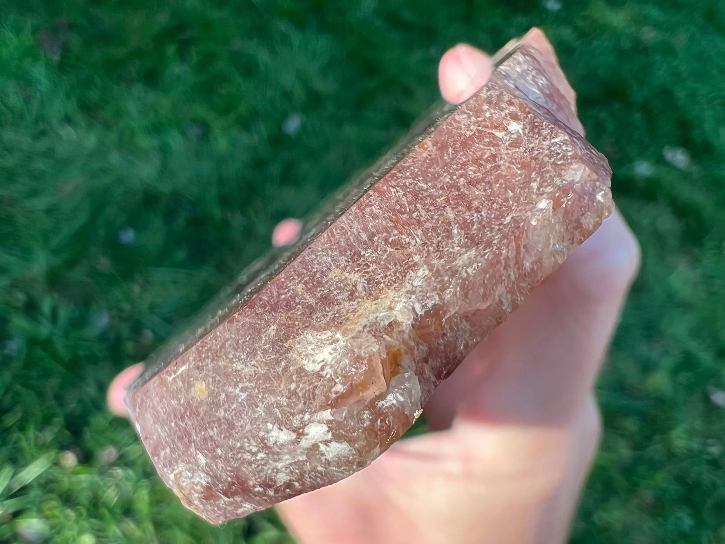 No piece has ever been proven to have Lepidocrocite, a label commonly given to Crystals with shiny Red Hematite inclusions. It has Later pieces were called “Super Eight” for having Hematite as “another” mineral in the stones, but any Lepidocrocite in Quartz, there is much more evidence pointing to it being Hematite in the first place.