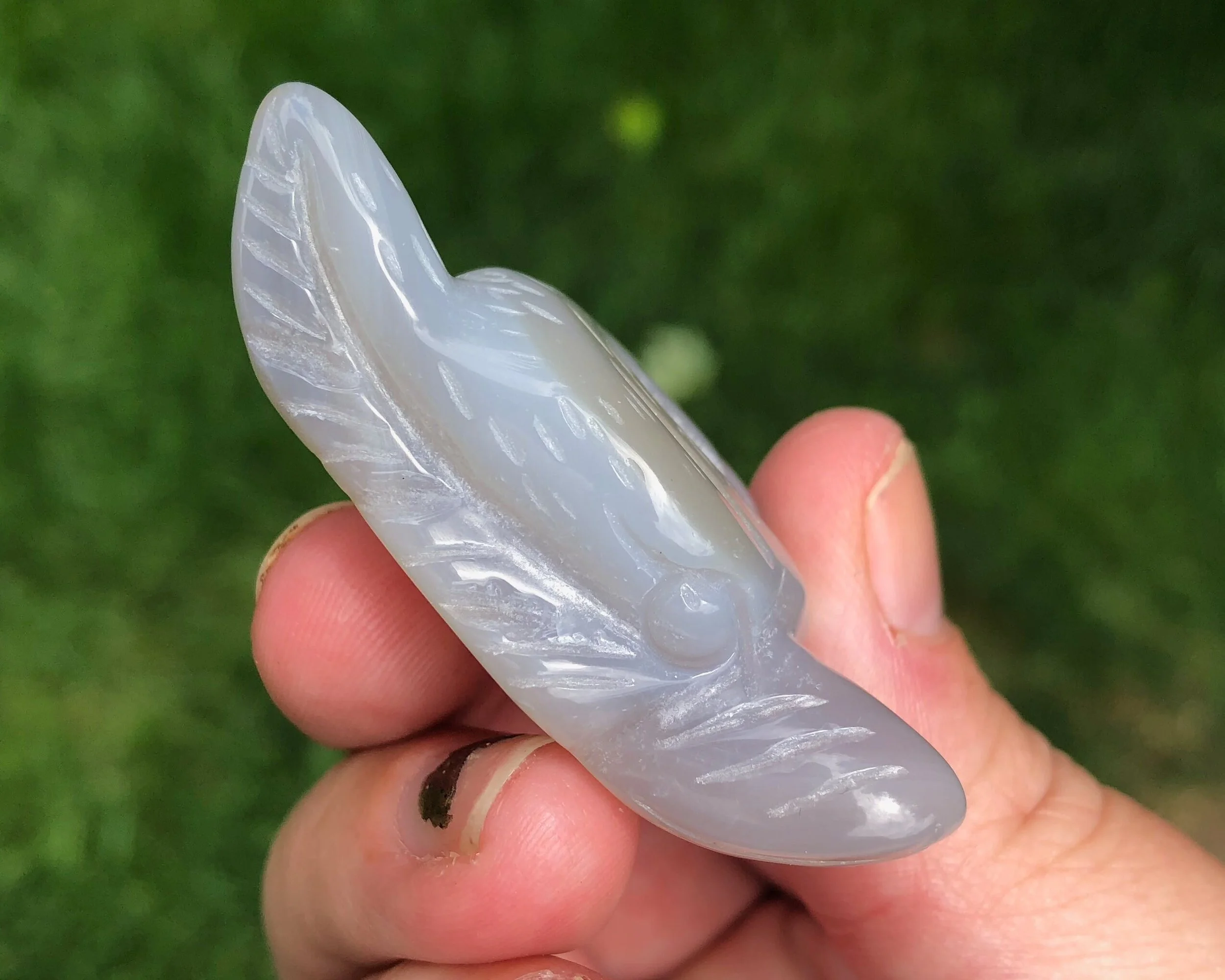 Image 1 of 9 Image 2 of 9 Image 3 of 9 Image 4 of 9 Image 5 of 9 Image 6 of 9 Image 7 of 9 Image 8 of 9 Image 9 of 9 Agate Wolf Head with Druzy Quartz Pocket Gray Wolf Coyote Fox Face Carving with Crystal Druzy #1 $39.00 You will receive the exact piece pictured This is a lovely Agate wolf head with a druzy Quartz pocket. It is lovely, sparkly and the carving is well detailed. This piece is NOT drilled there is no hole in it. Measures 2 x 1.5 x .6 inches Weighs 33 grams Thanks for looking! :) Kouva Dream Catchers <3 Add To Cart Added! You will receive the exact piece pictured This is a lovely Agate wolf head with a druzy Quartz pocket. It is lovely, sparkly and the carving is well detailed. This piece is NOT drilled there is no hole in it. Measures 2 x 1.5 x .6 inches Weighs 33 grams Thanks for looking! :) Kouva Dream Catchers <3 Reviews Reviewer Name Review Date Star Rating Description Posted on Etsy Product Show More