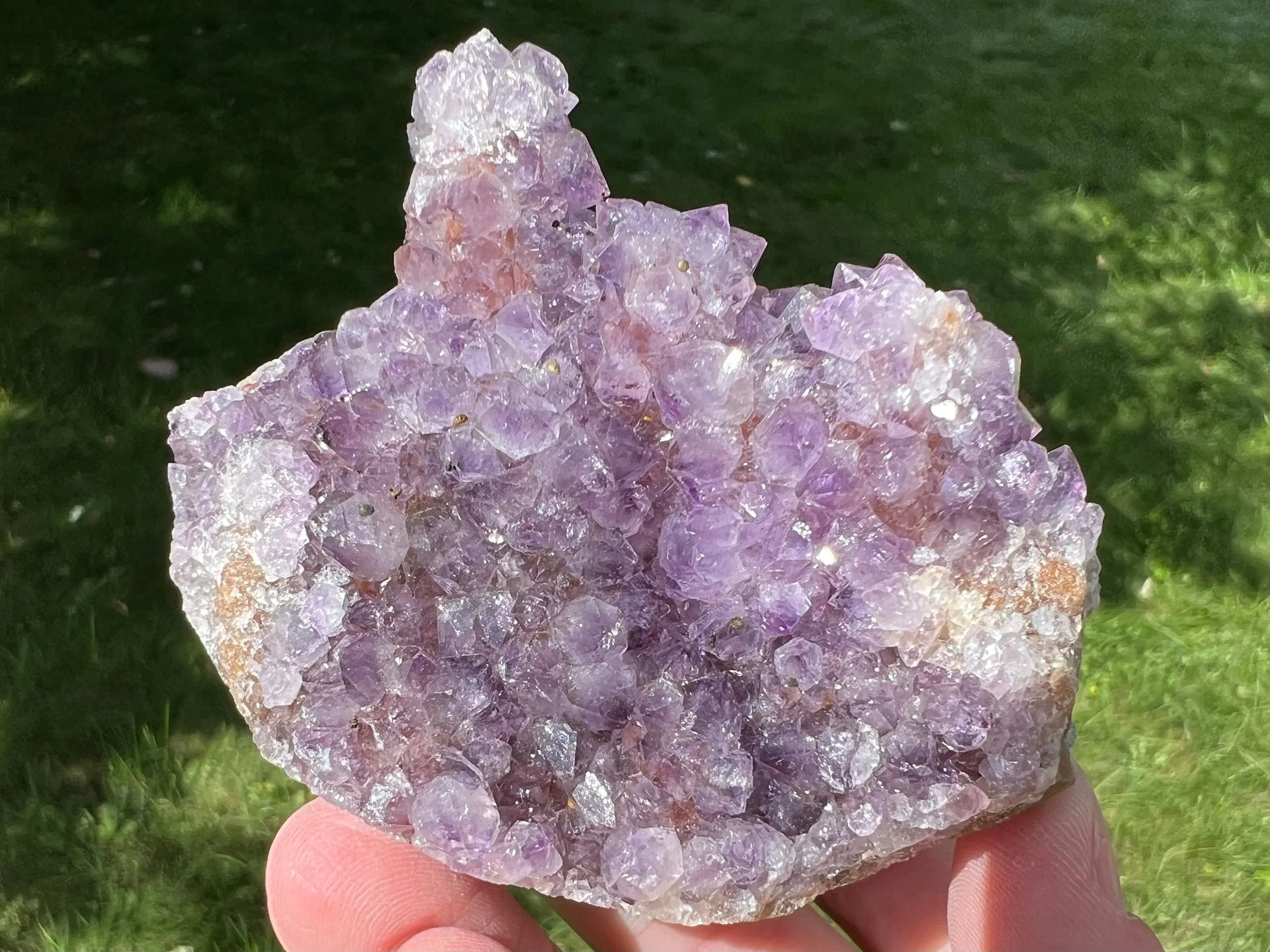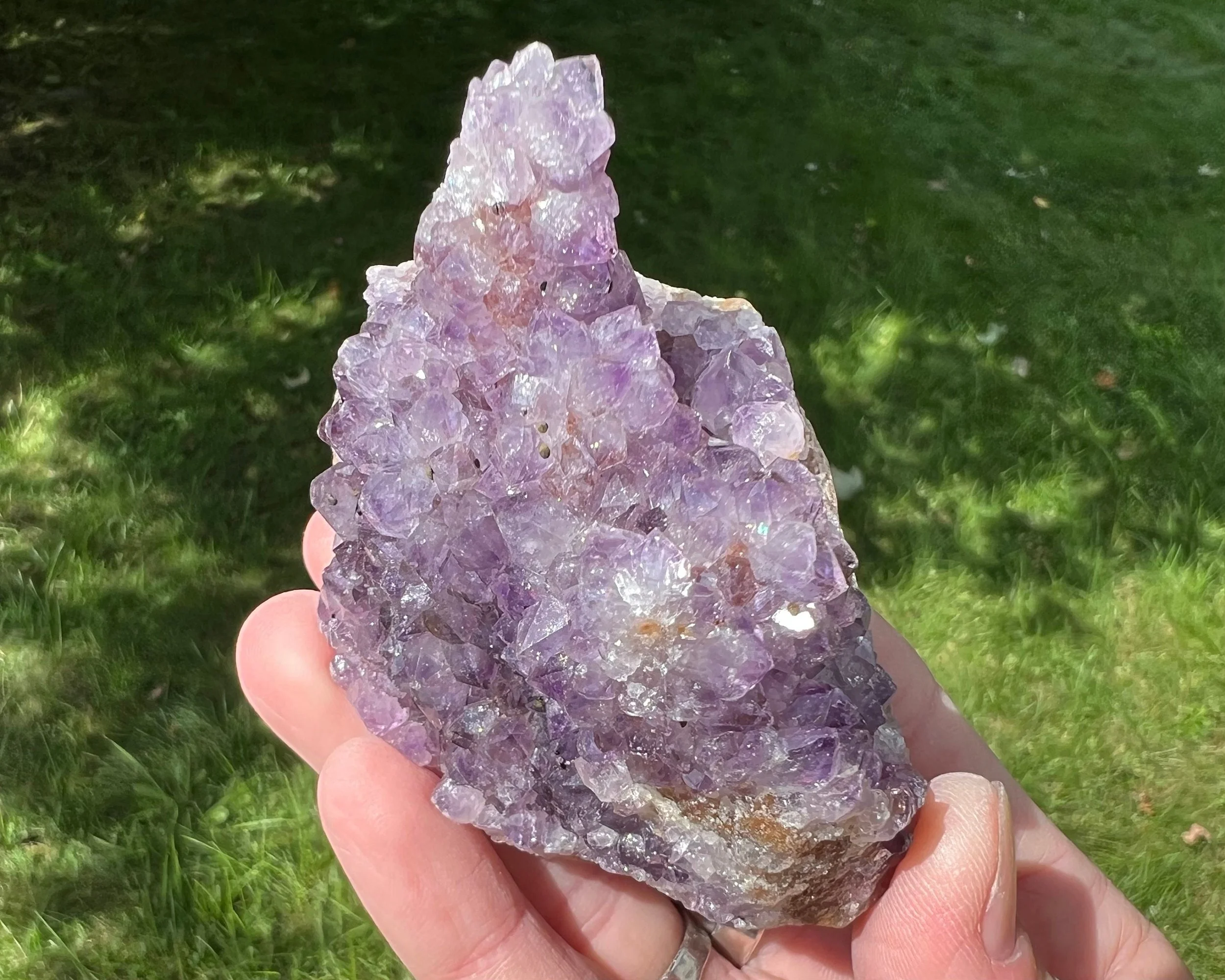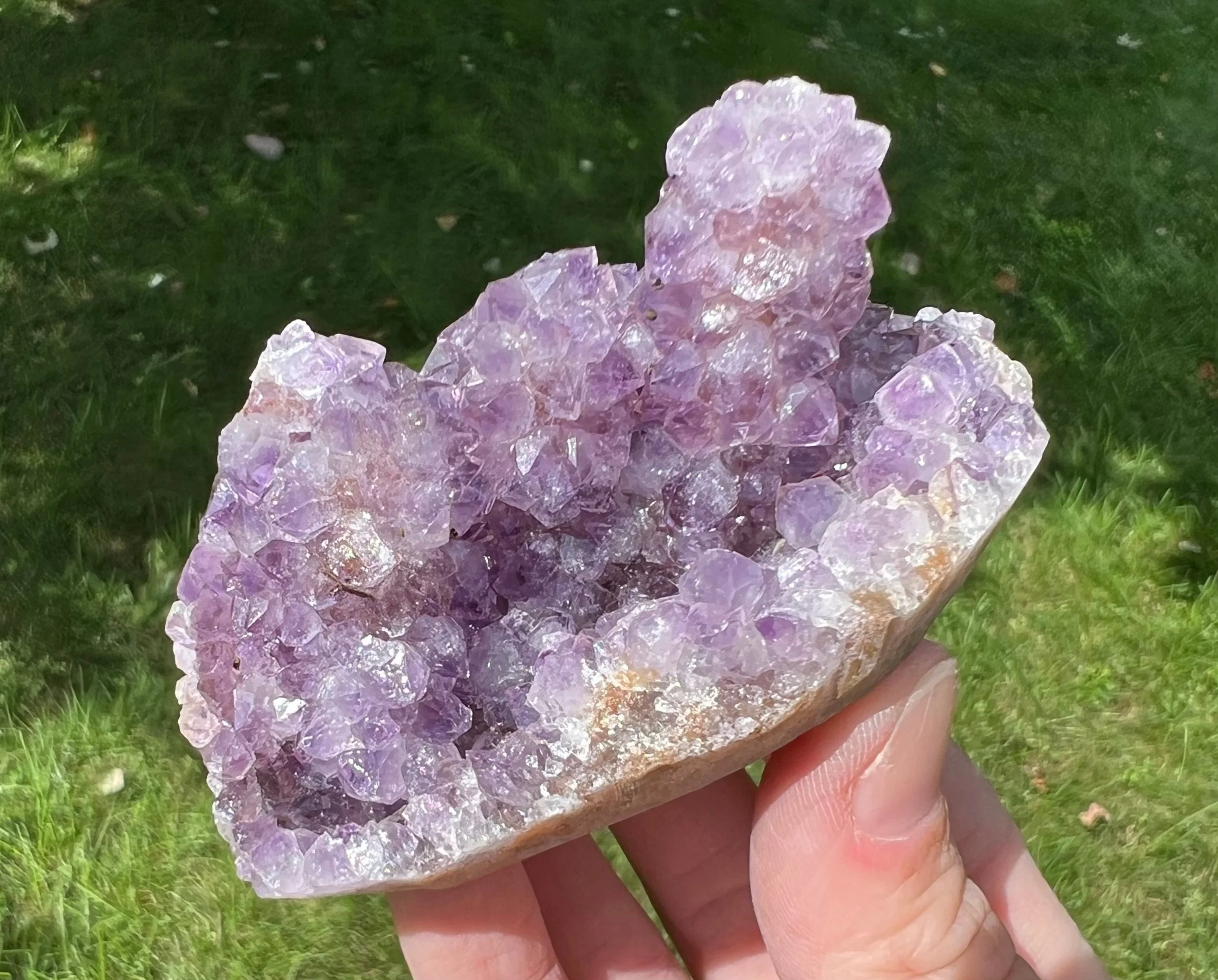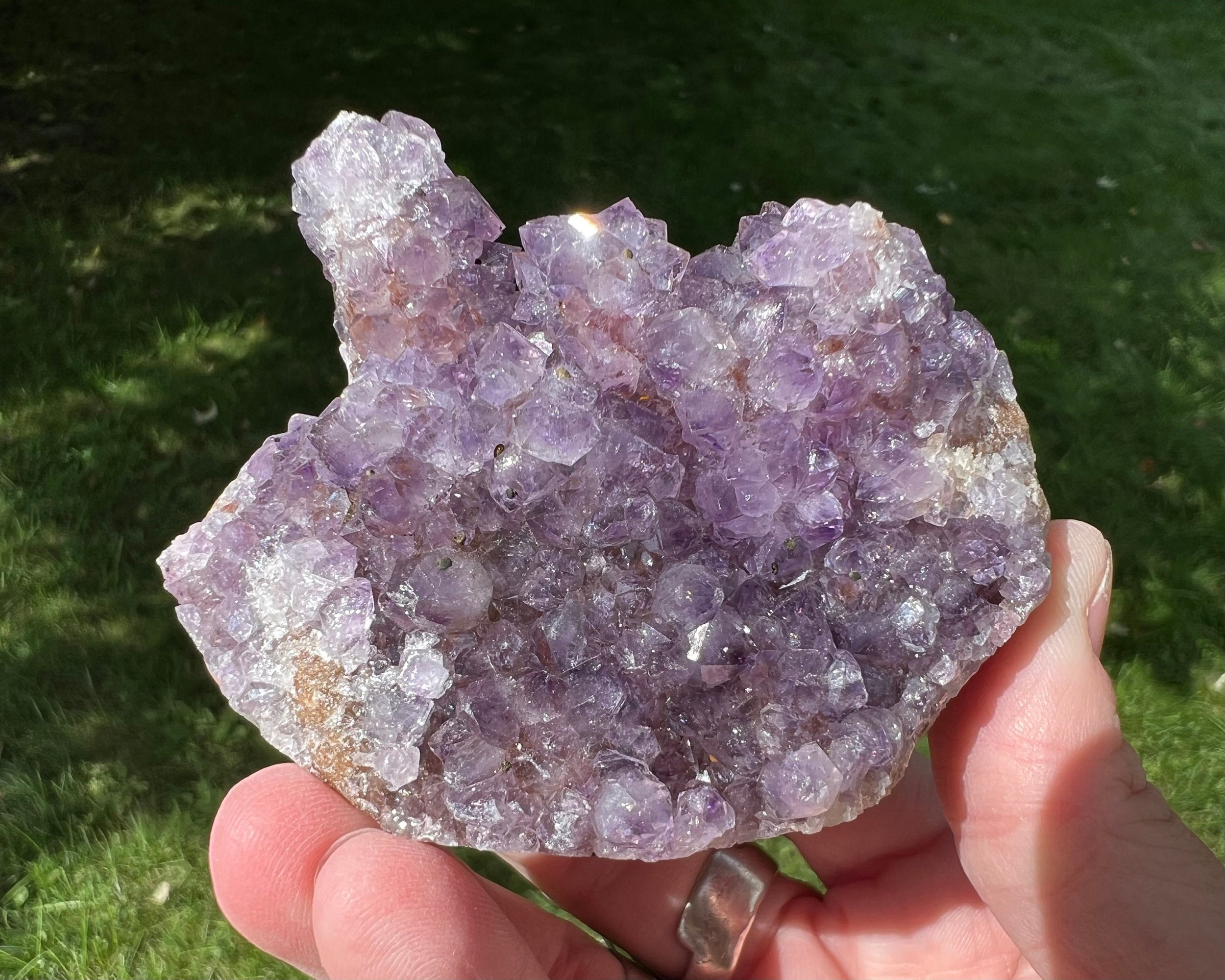 This is a beautiful cluster of sparkling Amethyst Stalactites! The flowery stalactites are unique and rare and very aesthetic! Nice deep purple color. <3