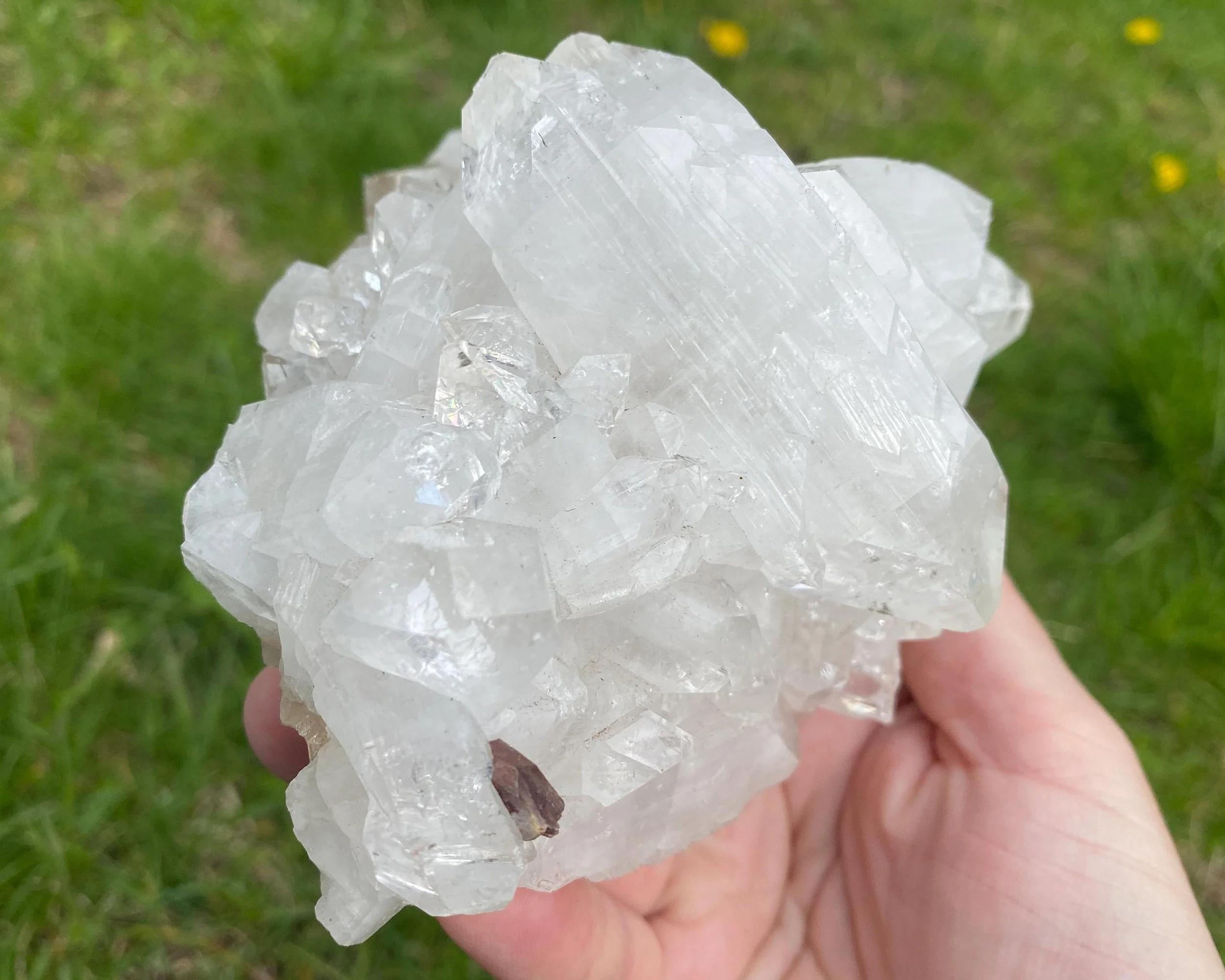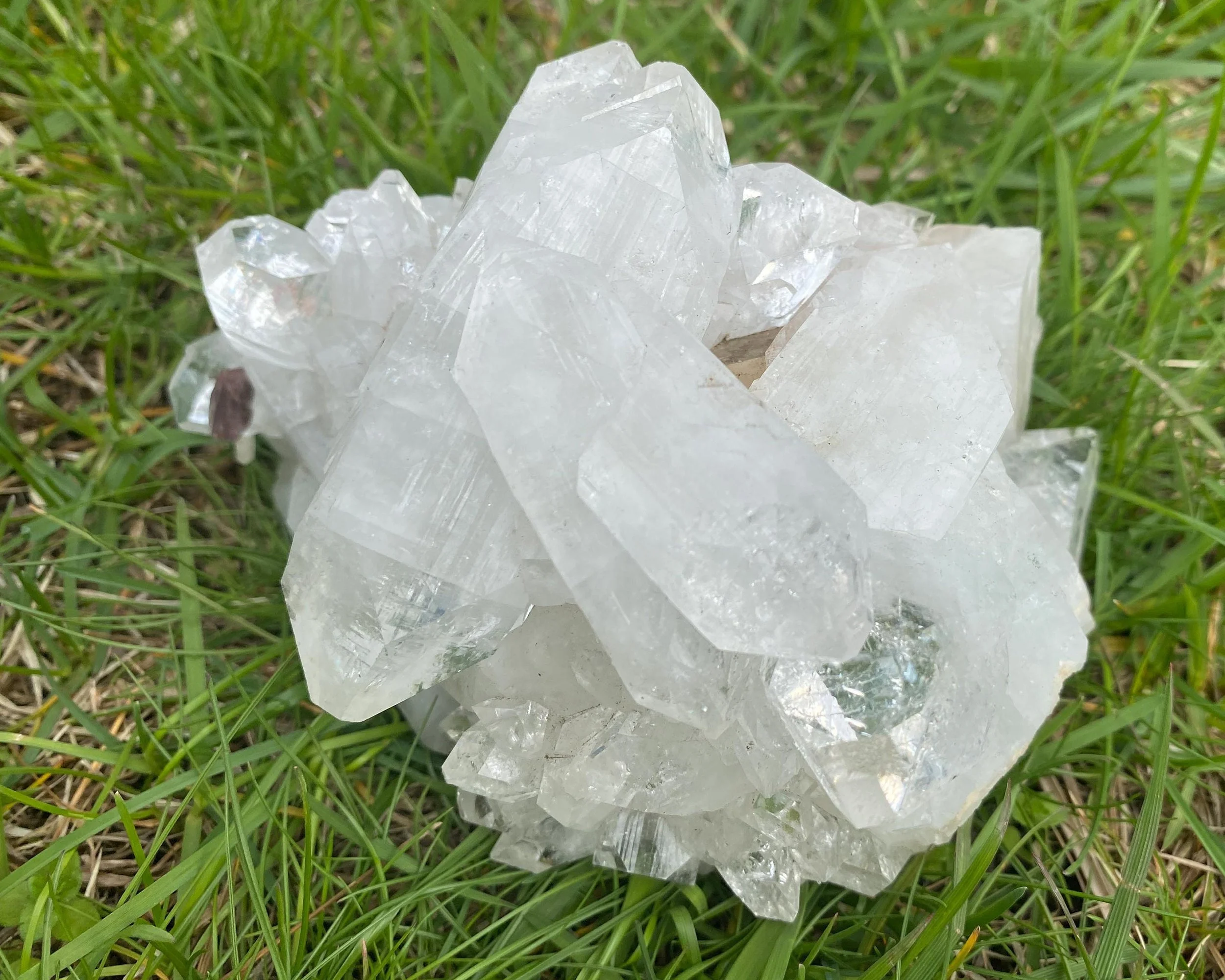 Apophyllite Crystal Cluster on Calcite from India, Large, Lustrous, Pointed Apophyllite Cluster, Mirror