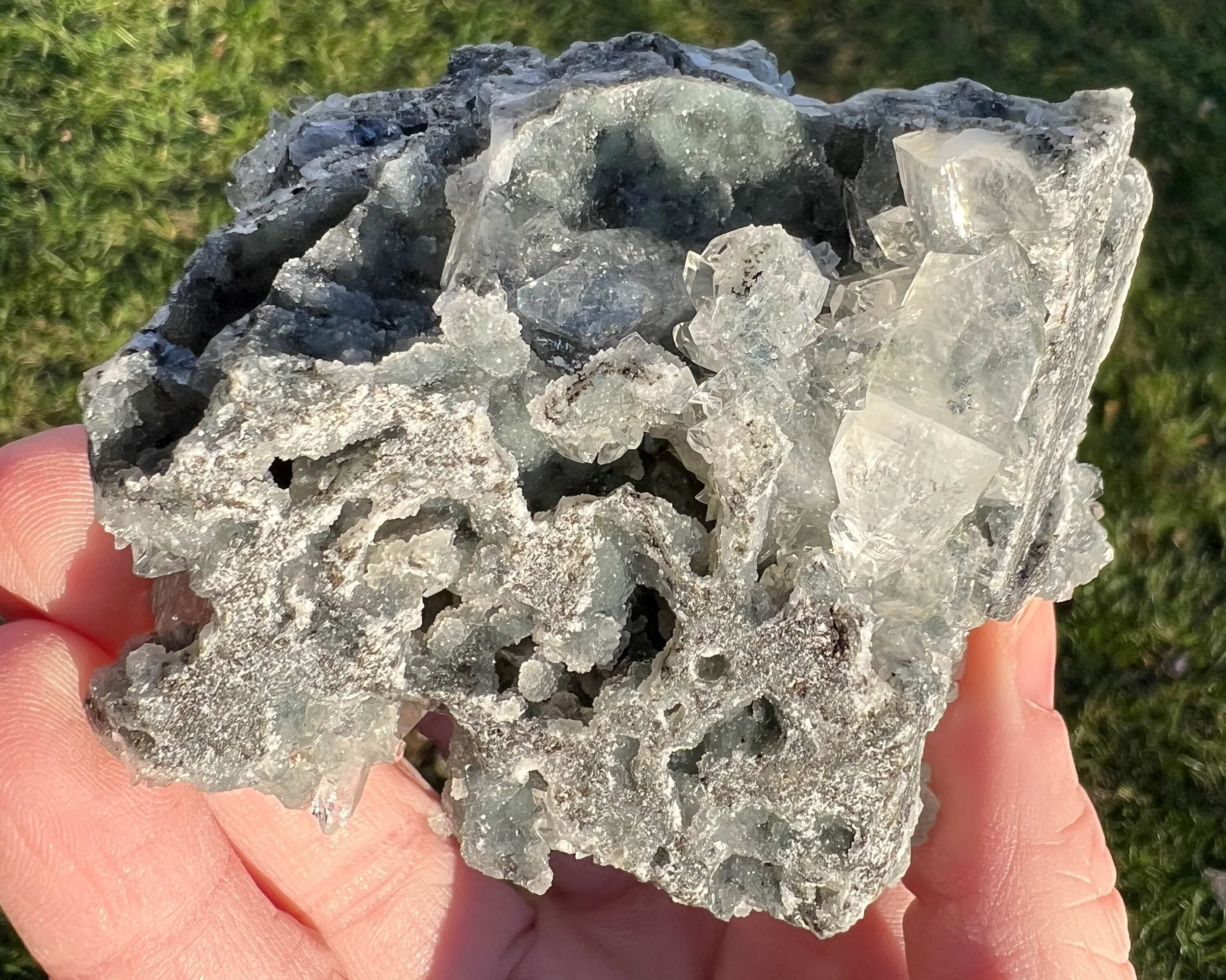Apophyllite Crystal Cluster w Stilbite, Black Chalcedony, & Druzy Quartz, Diamond Apophyllite Cluster, Stalactites, Mineral Specimen #2