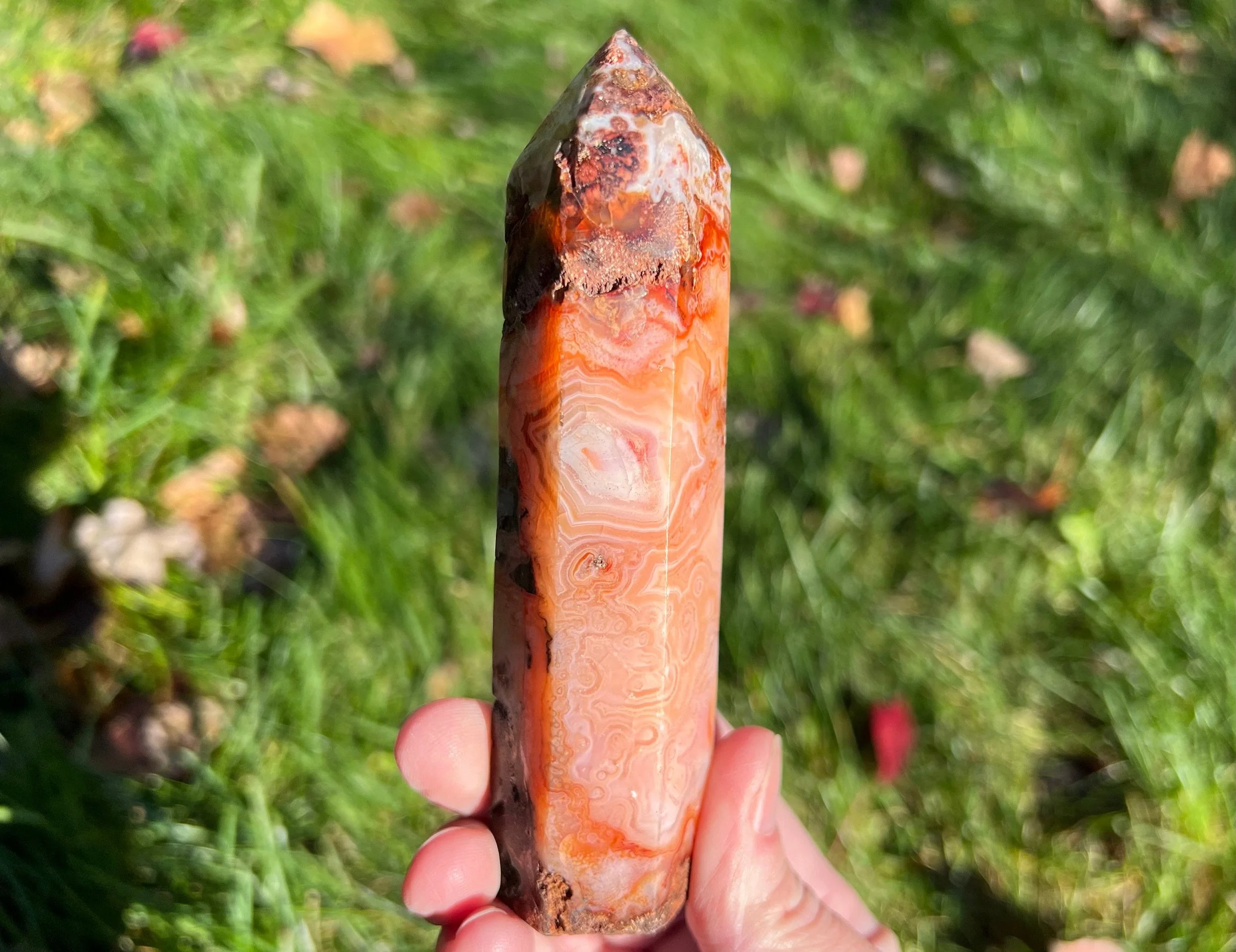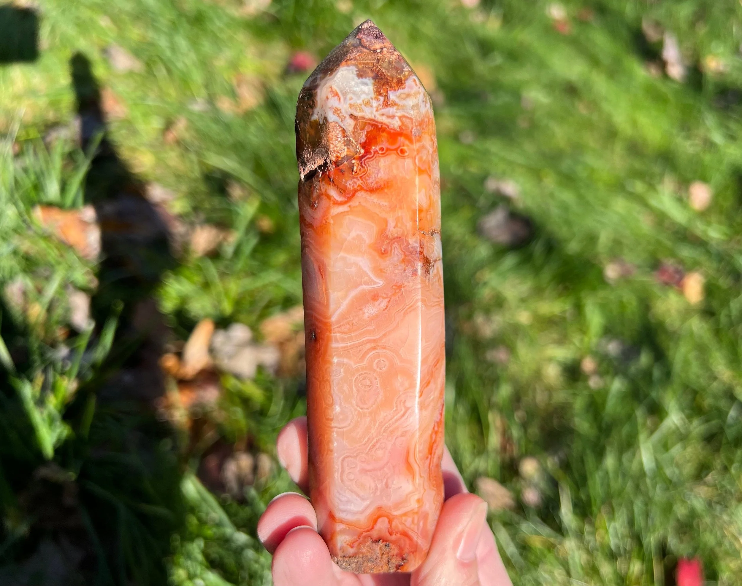 Banded Carnelian Agate Tower: Large Polished Point, Home Decor (5") #3