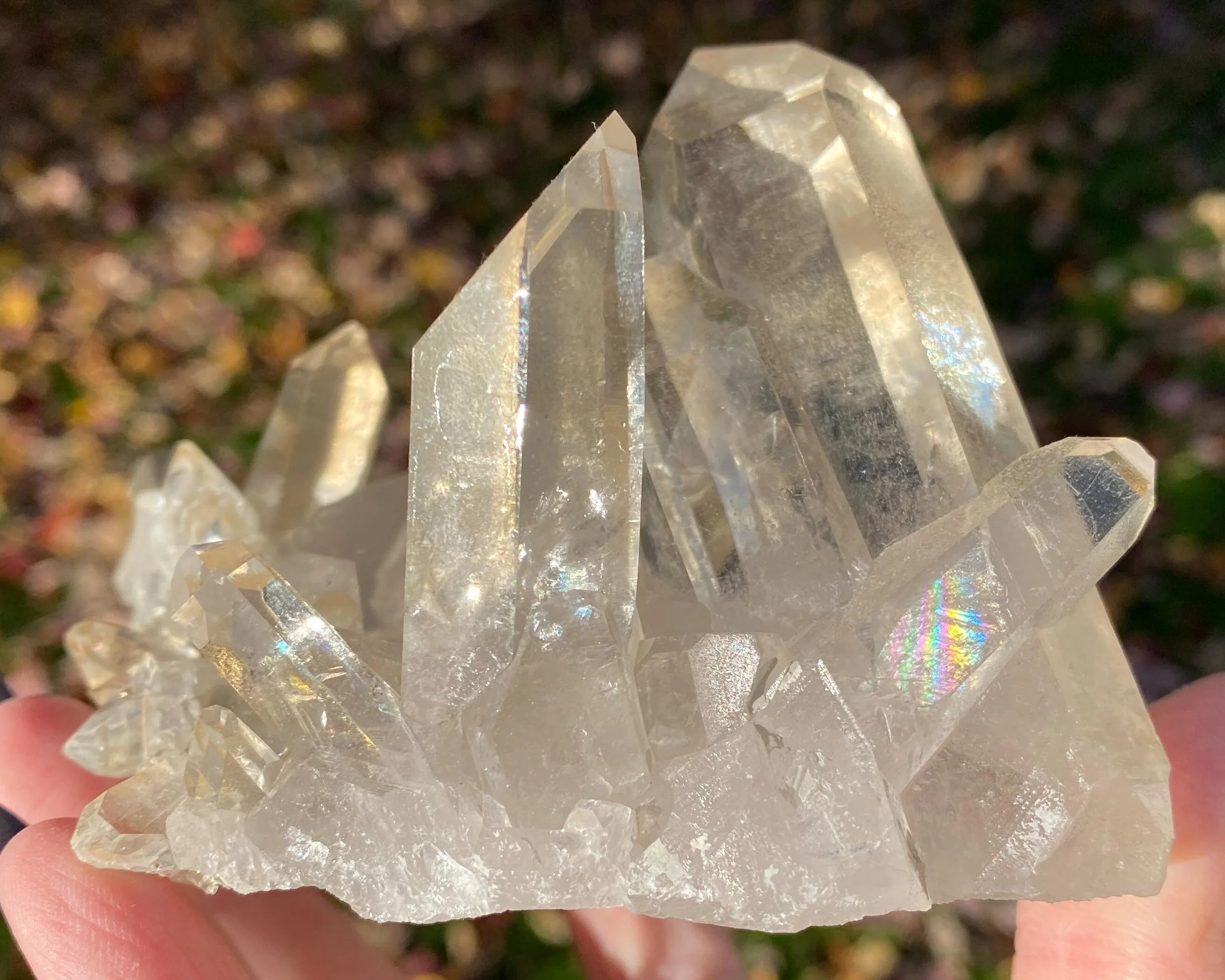 This cluster is beautiful with very good clarity and lustrous crystals. Nice aesthetic formation and has some rainbows in it too! From Brazil. A beautiful high quality piece <3