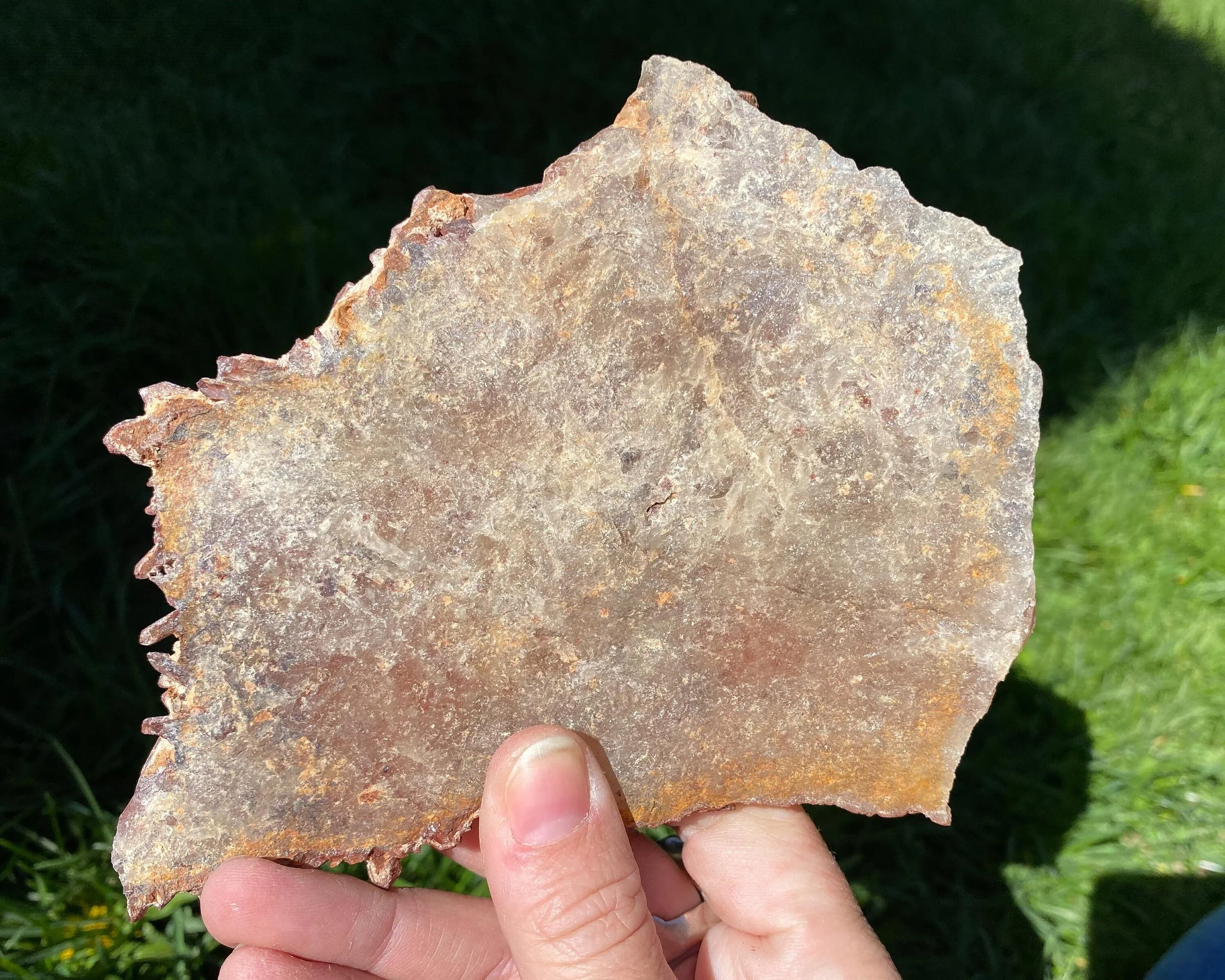 This is a Quartz cluster that has red Hematite on and in it, giving them their blood-red coloring. They are fun and colorful and good quality. These are from Morocco.