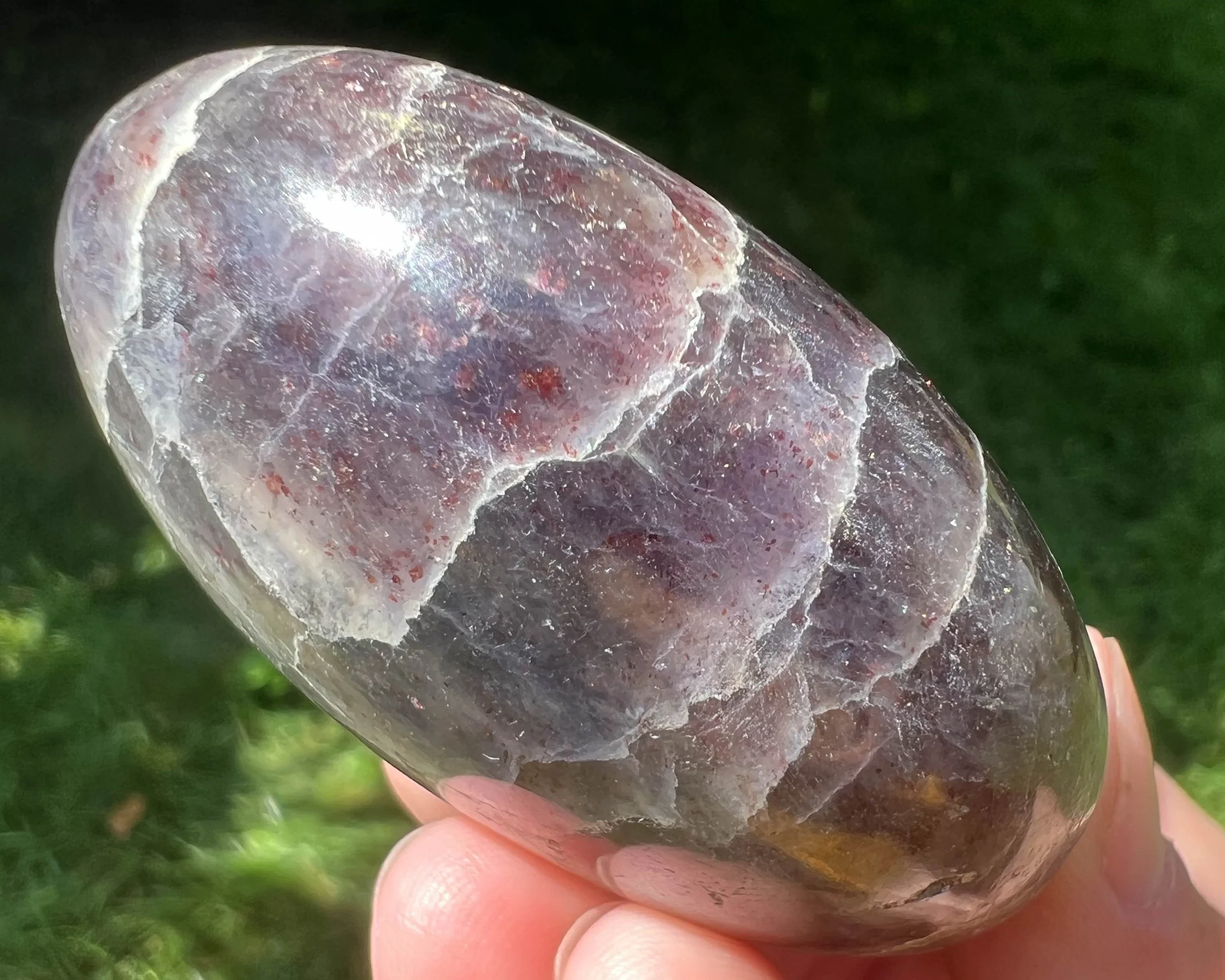 Bloodshot Iolite Sunstone Palm Stone #1 Sparkly Crystal with Rainbow Hematite, Smooth Fidget Oval, Gift for Best Friend, Third Eye Chakra