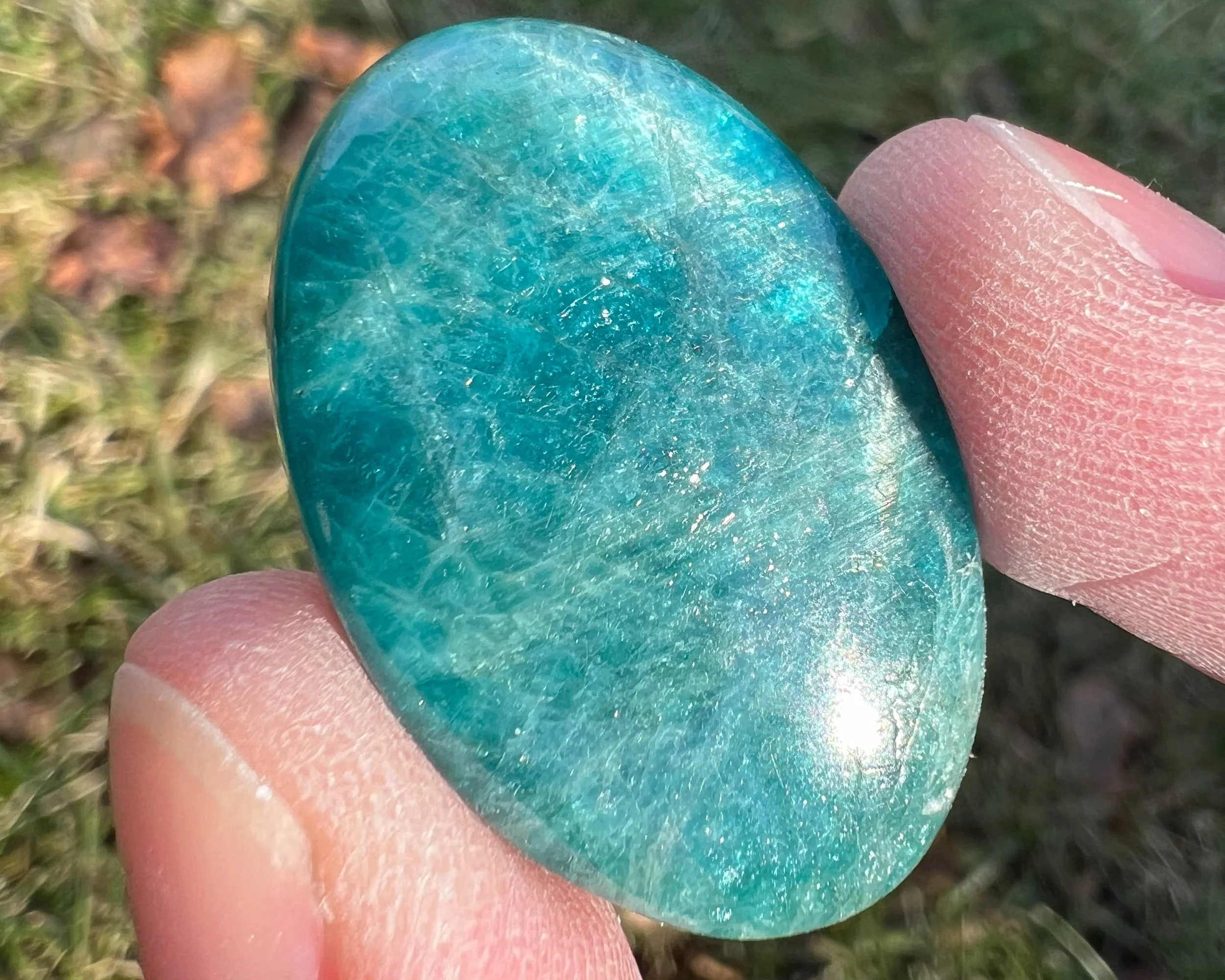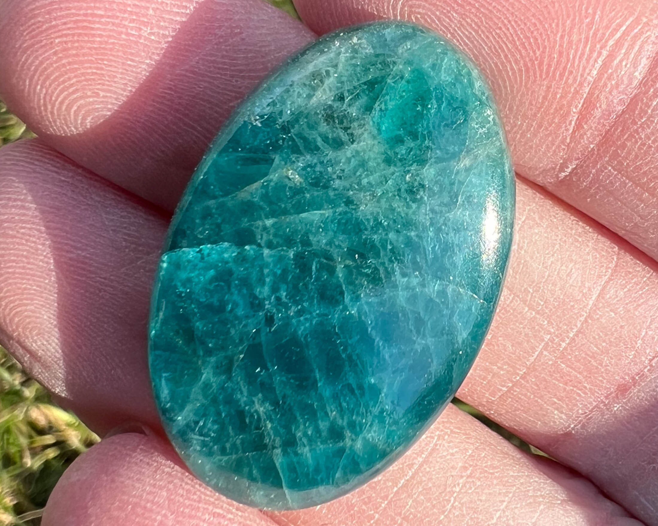 Blue Apatite Cabochon, for Necklace, Pendant, Crystals for Jewelry Making, Large Oval Cabochon, Chatoyant Blue Cab Gemstone Cats Eye #1