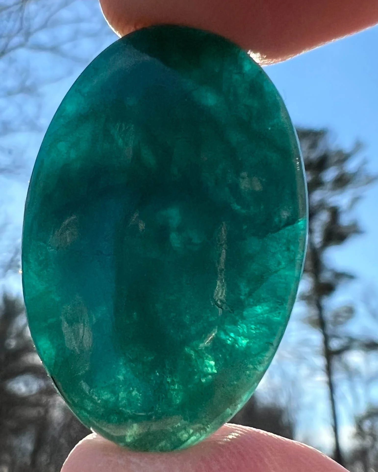This is a beautiful Blue Apatite cabochon, it is oval shaped. It is chatoyant bright blue with cat's eye effect or sheen. The back is flat to set in jewelry like a necklace or pendant. Very beautiful stone.