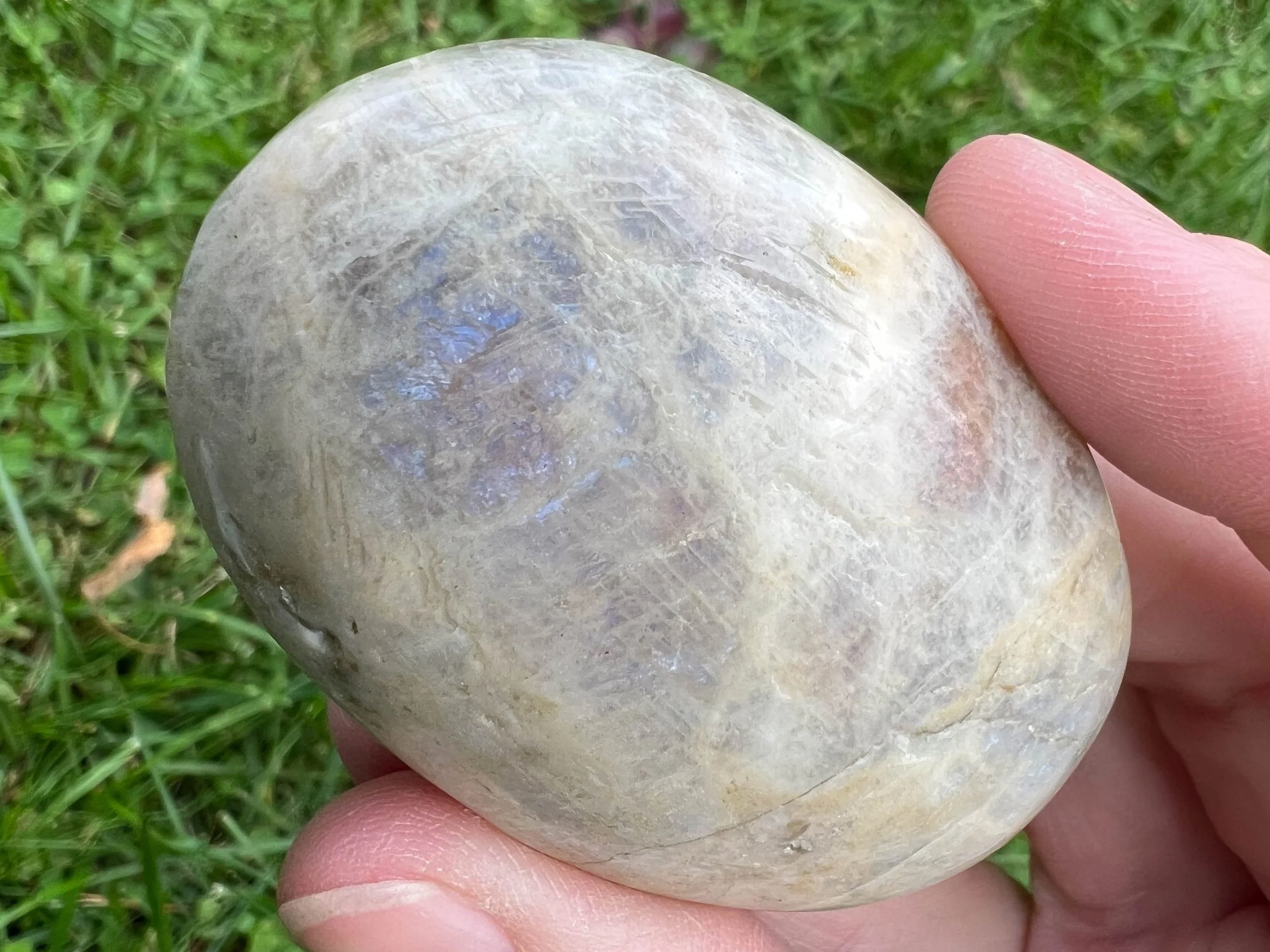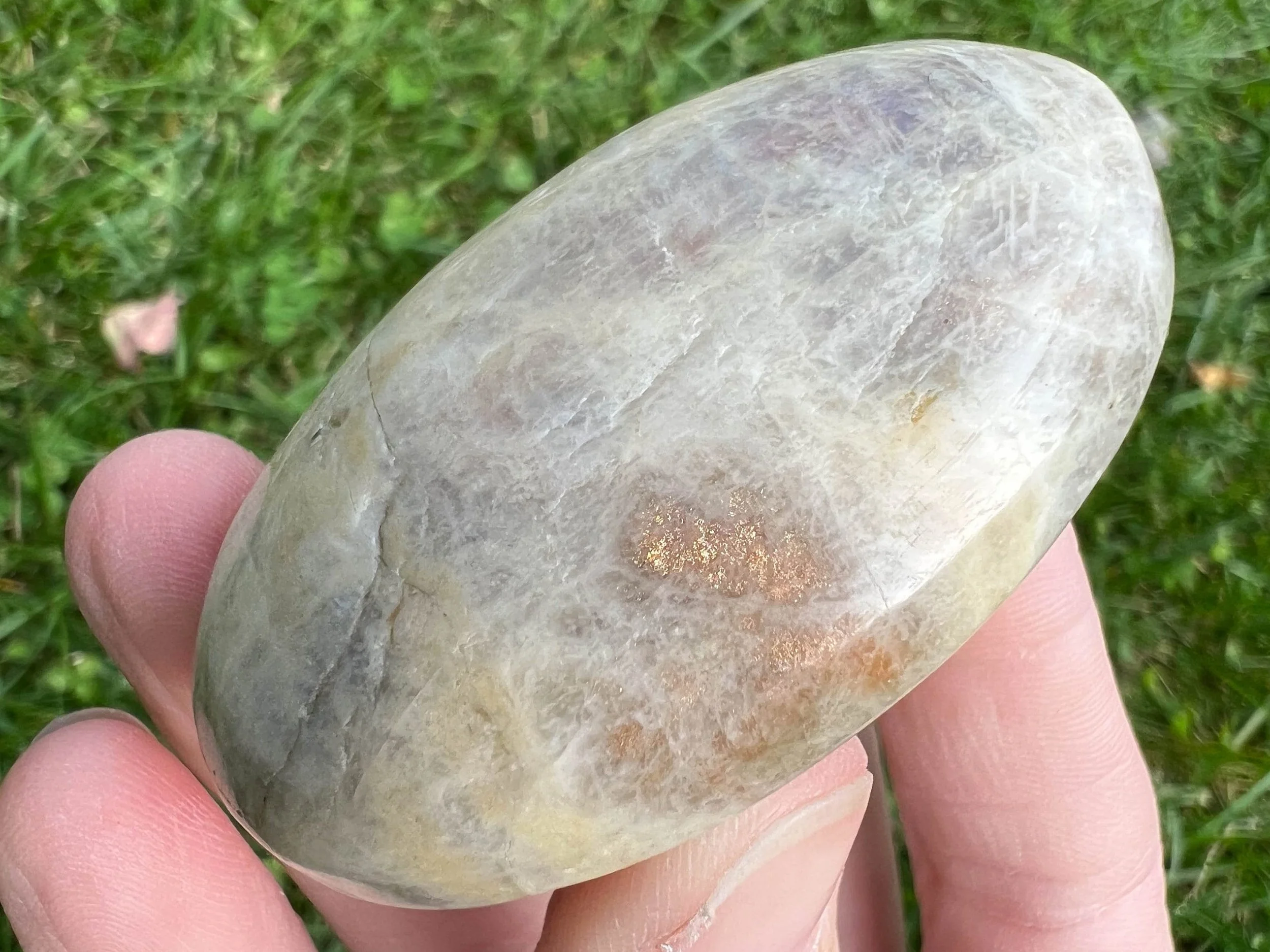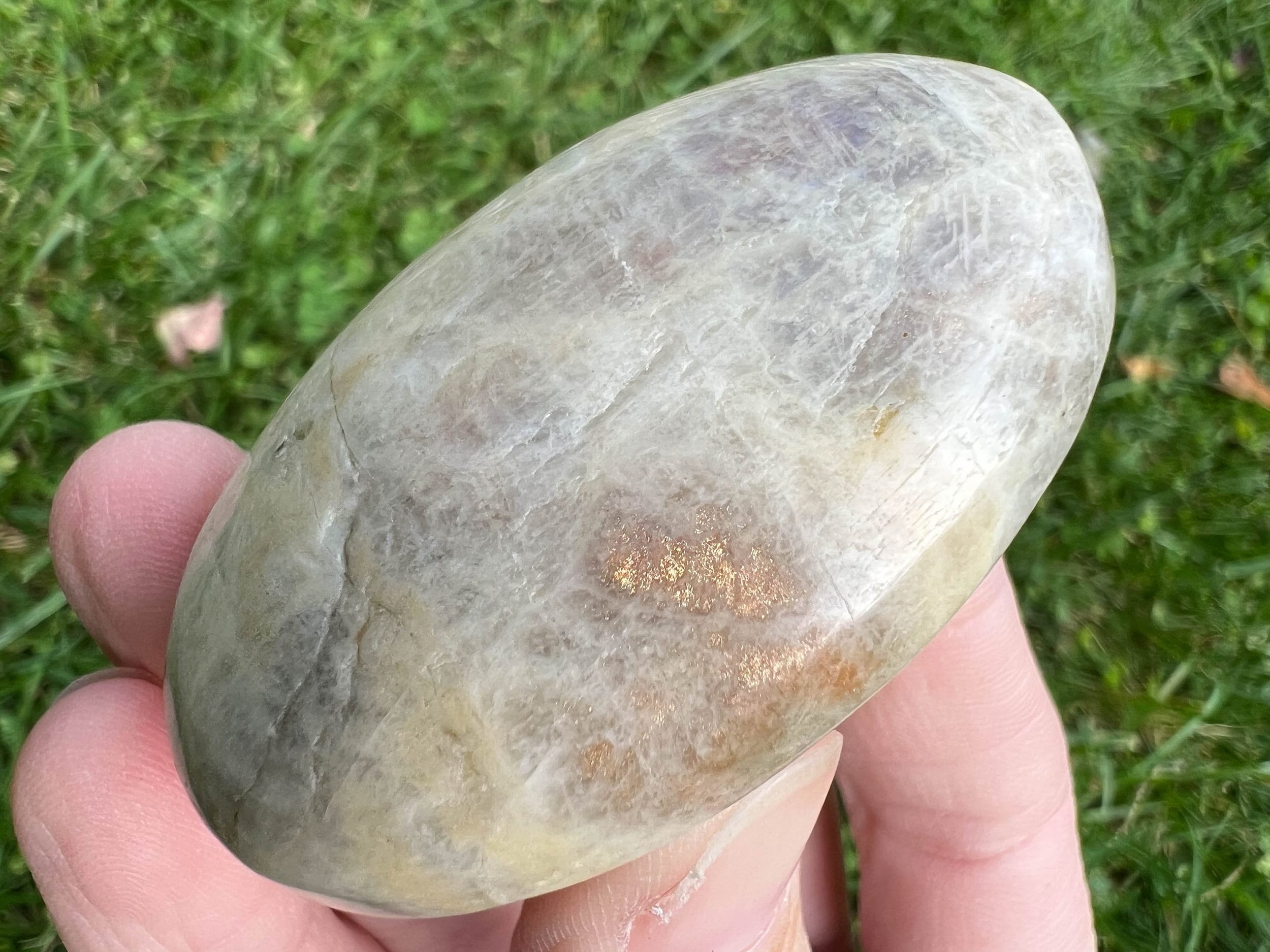 Blue Flash Moonstone Sunstone Palm Stone: Belomorite Confetti Schiller #2