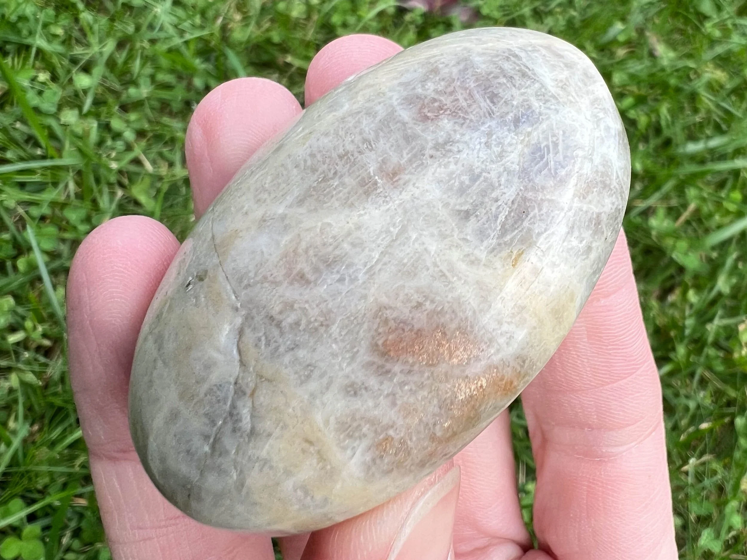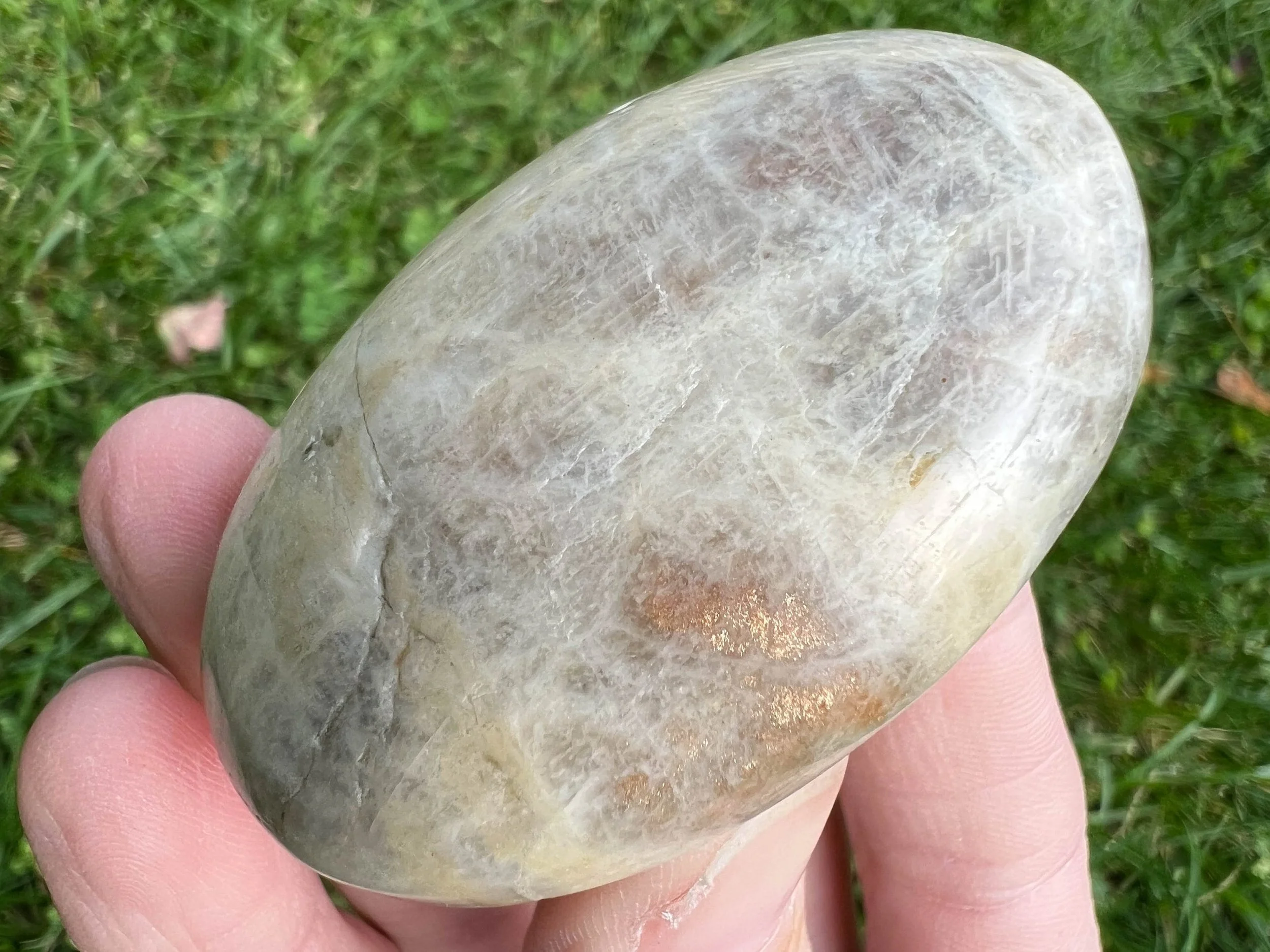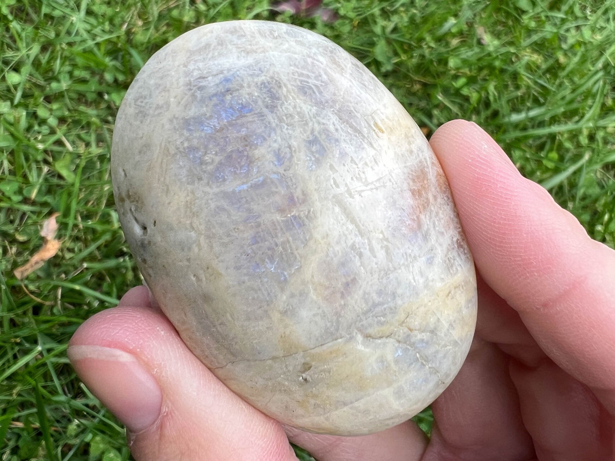 Blue Flash Moonstone Sunstone Palm Stone: Belomorite Confetti Schiller #2