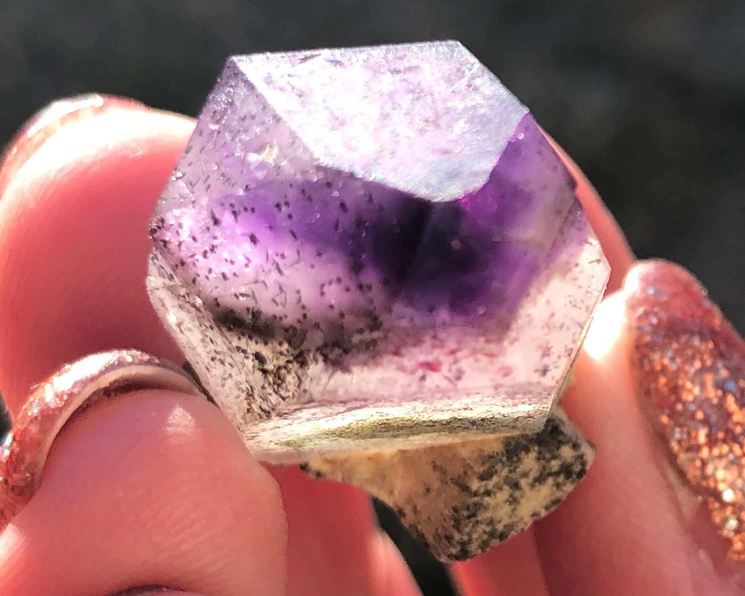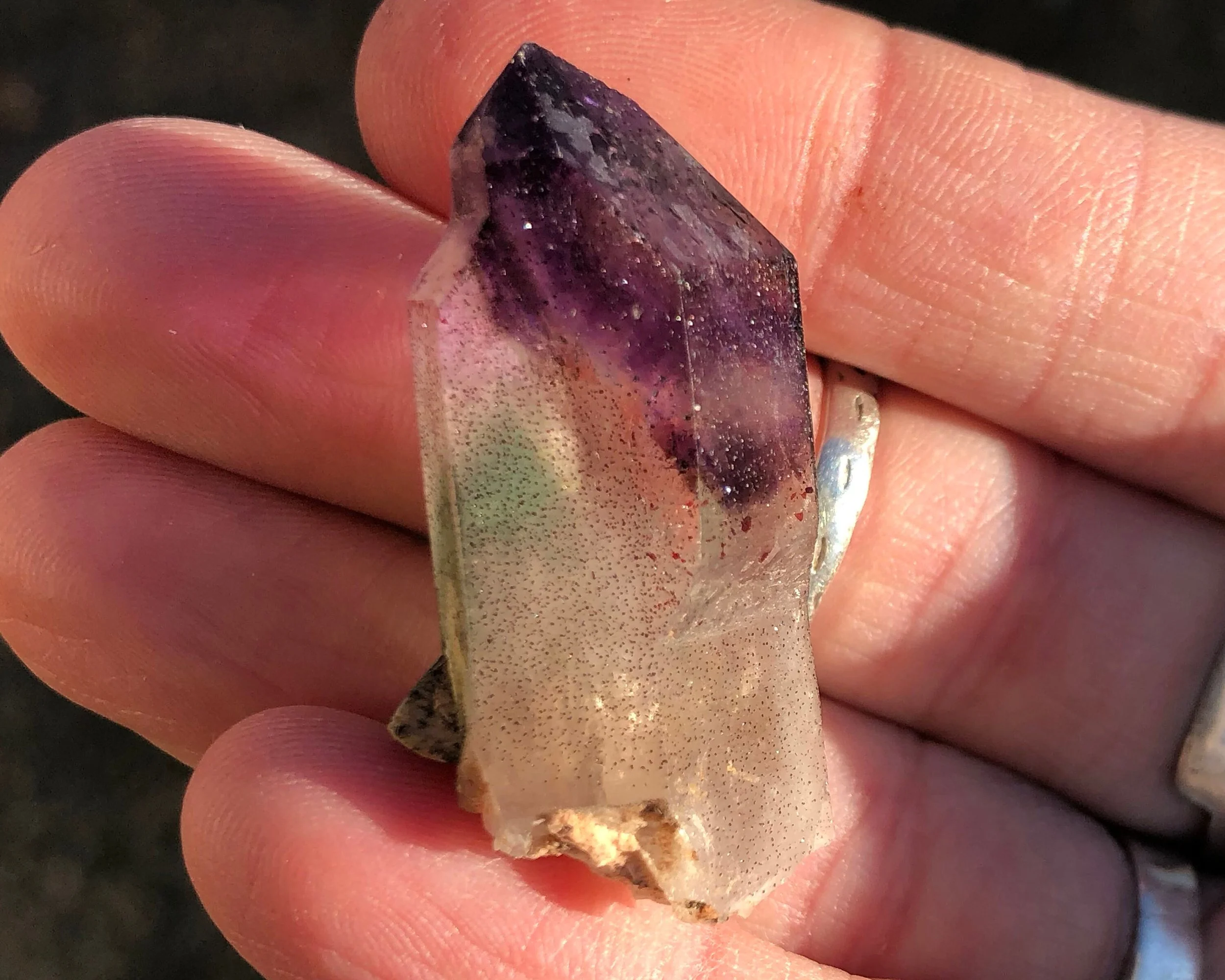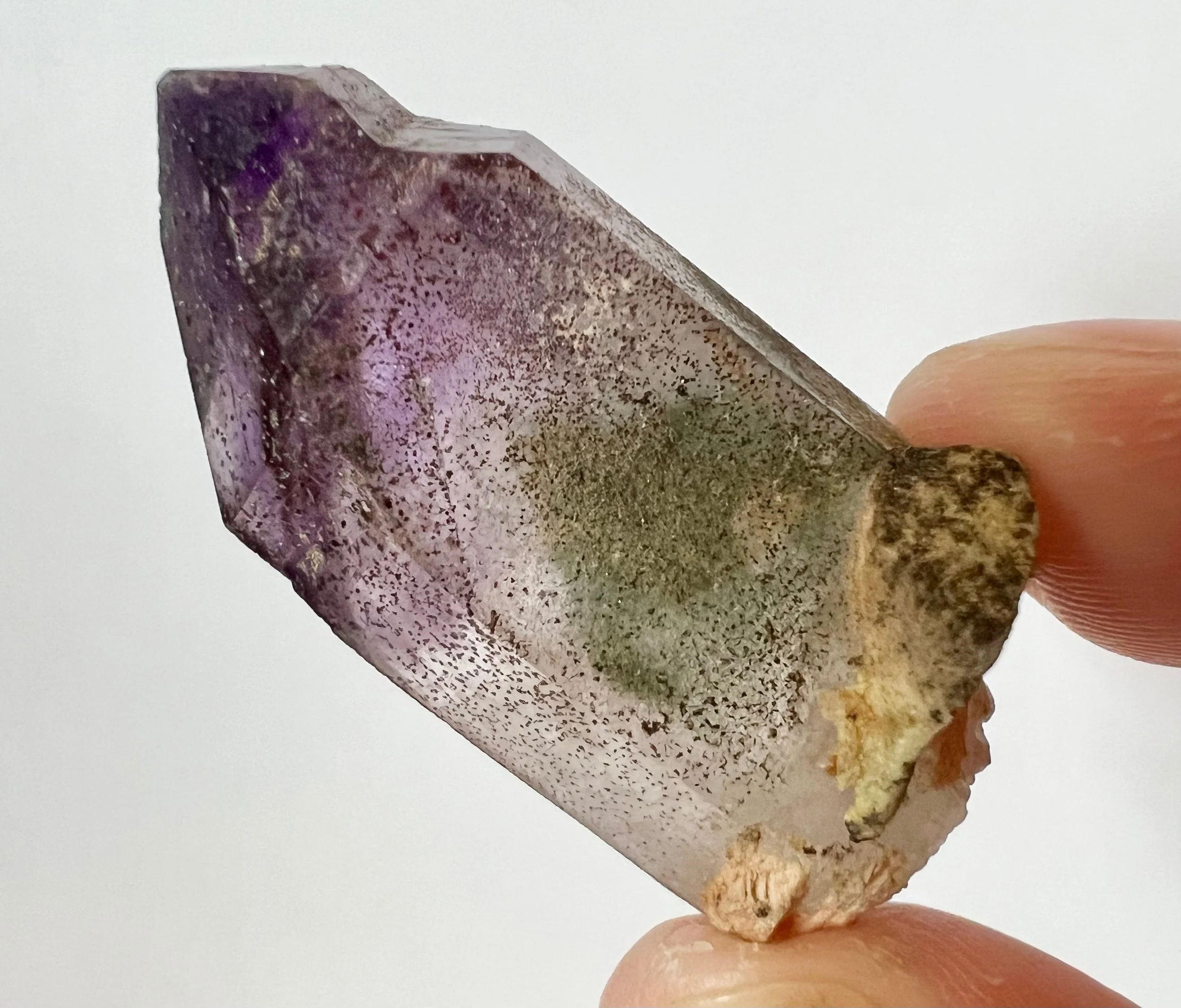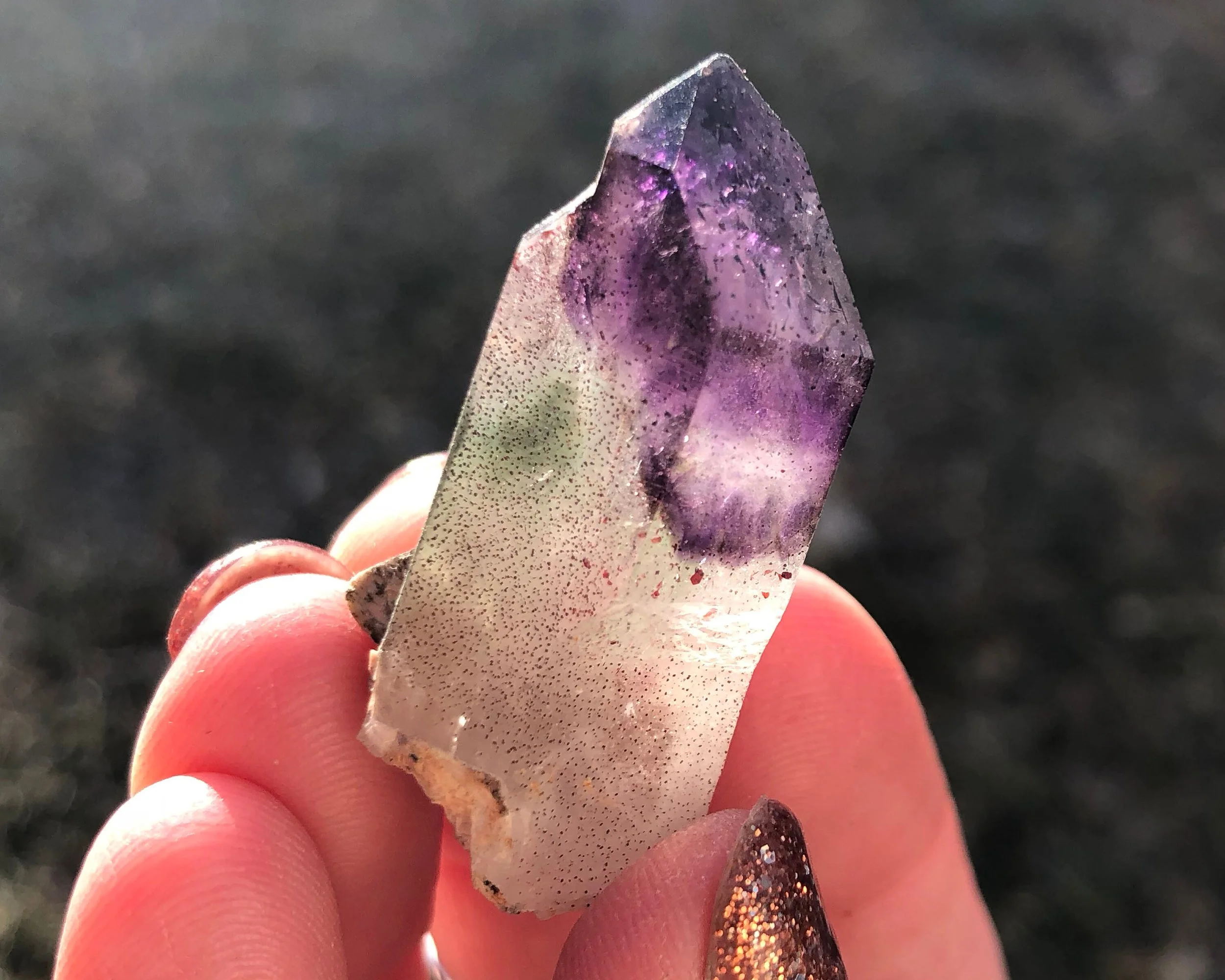 Brandberg Amethyst Crystal with Green Chlorite, Red Hematite, Erongo Region Namibia, Dark Purple Phantom Quartz Point, Rare #25
