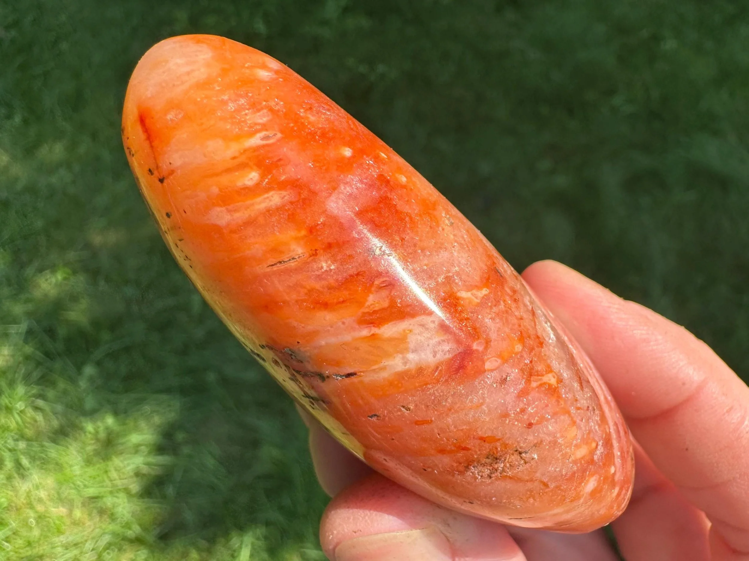 Carnelian Agate Palm Stone #7 Large Natural Banded Red Orange White Polished Smooth, Gift for Women, for Him, Leo Crystals, Virgo Birthstone