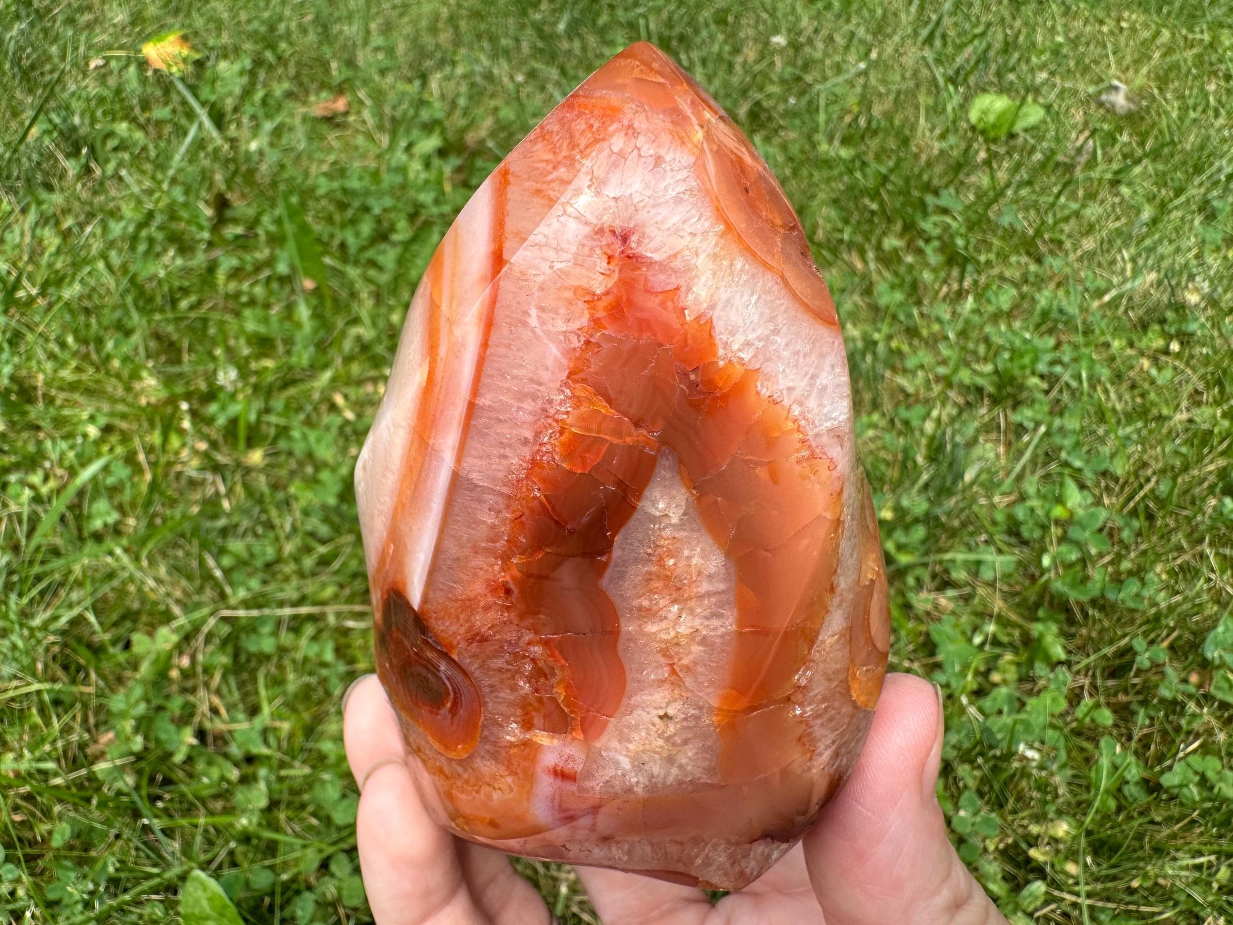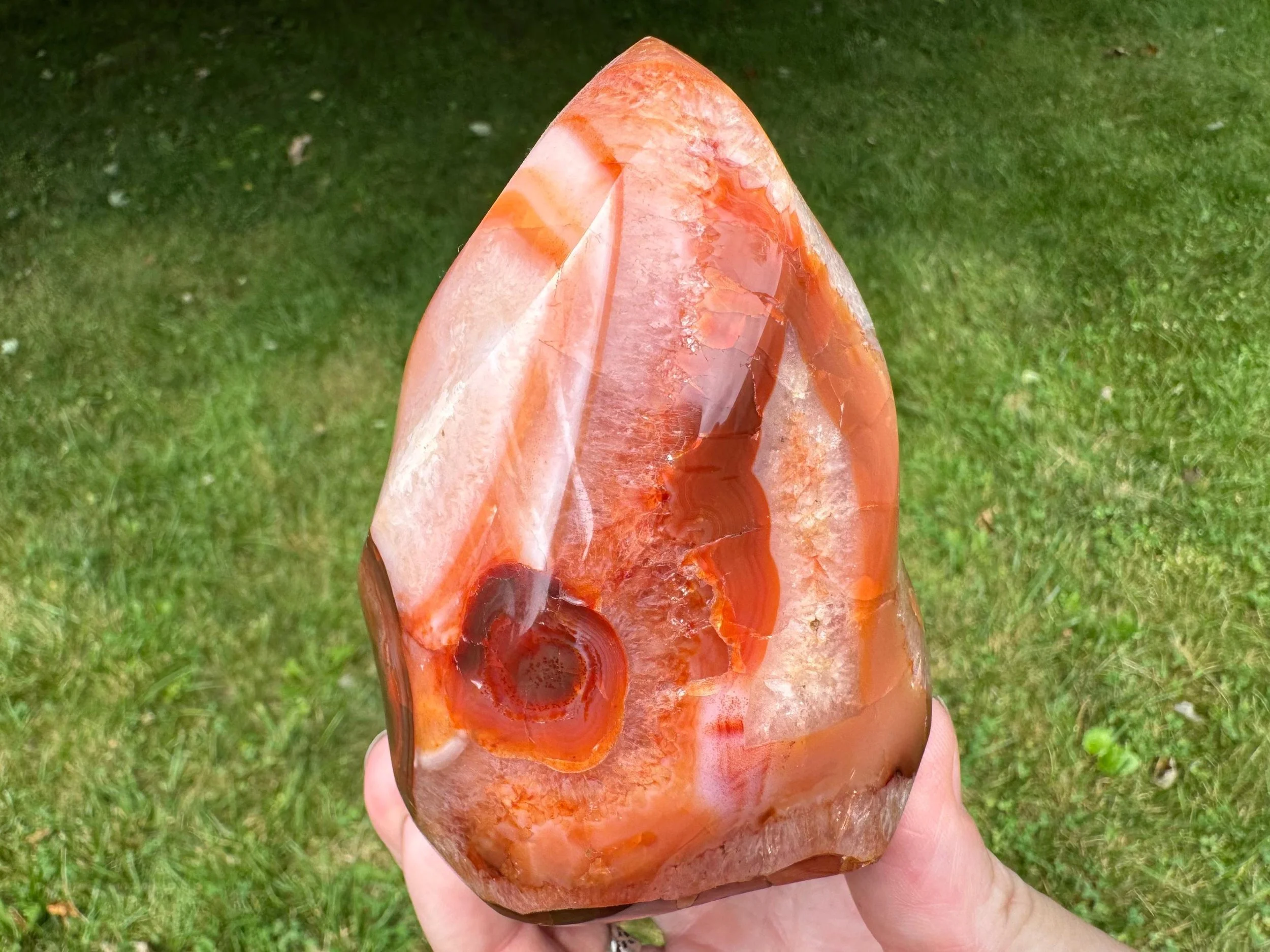 Carnelian Flame #8 Spiral Crystal, Banded Agate, Leo Crystals, Virgo Birthstone, Living Room Decor, Witchy Gift, Sacral Chakra Stone
