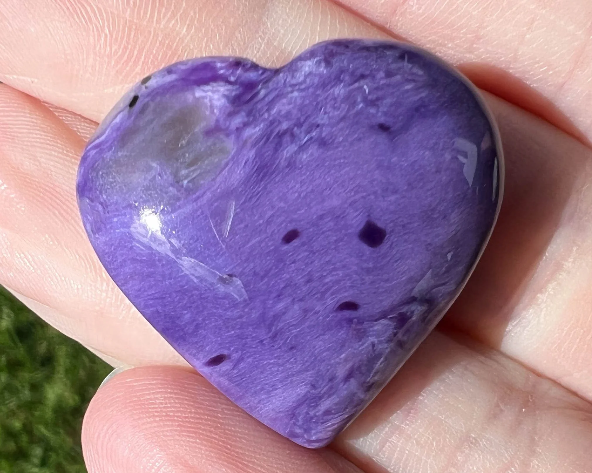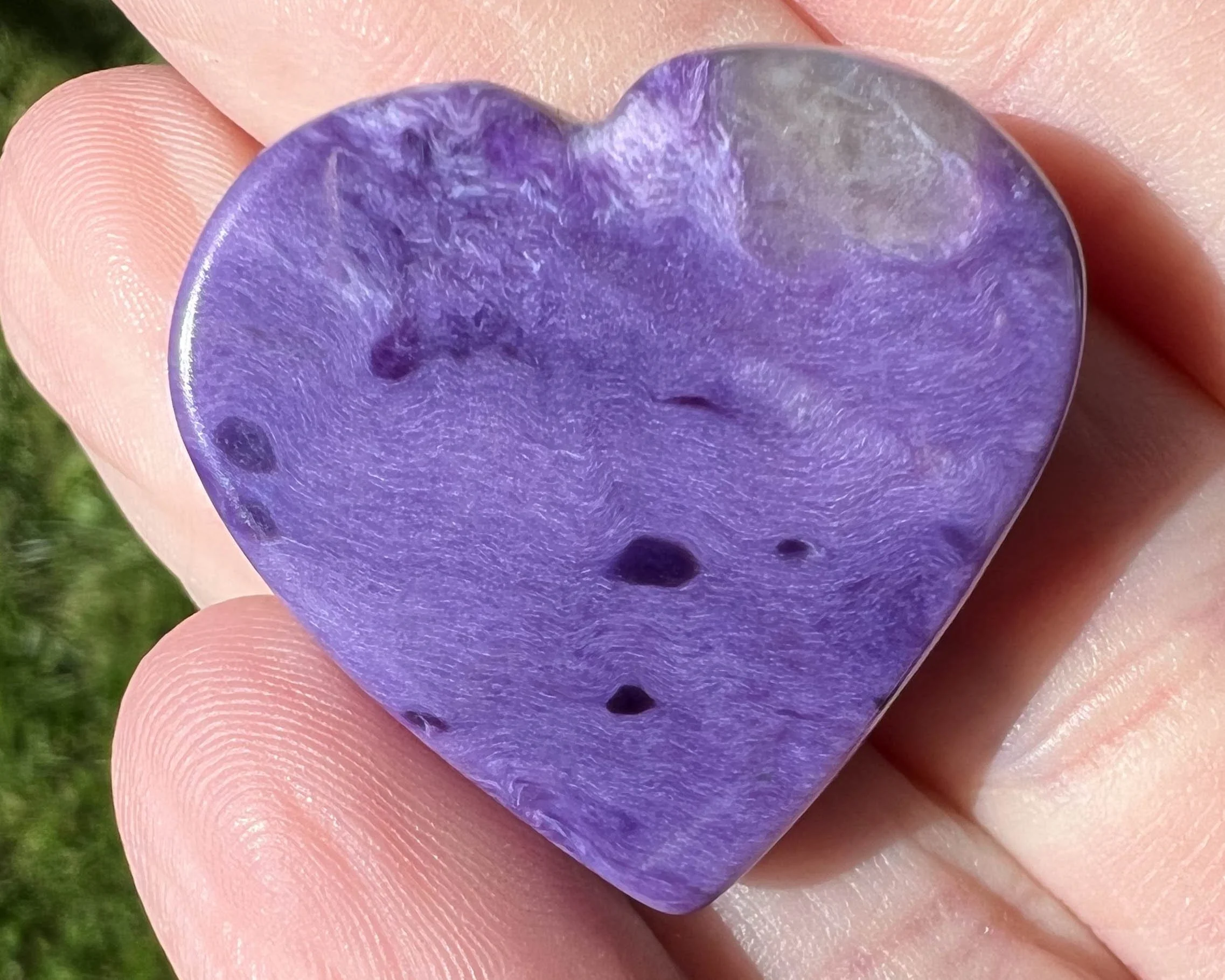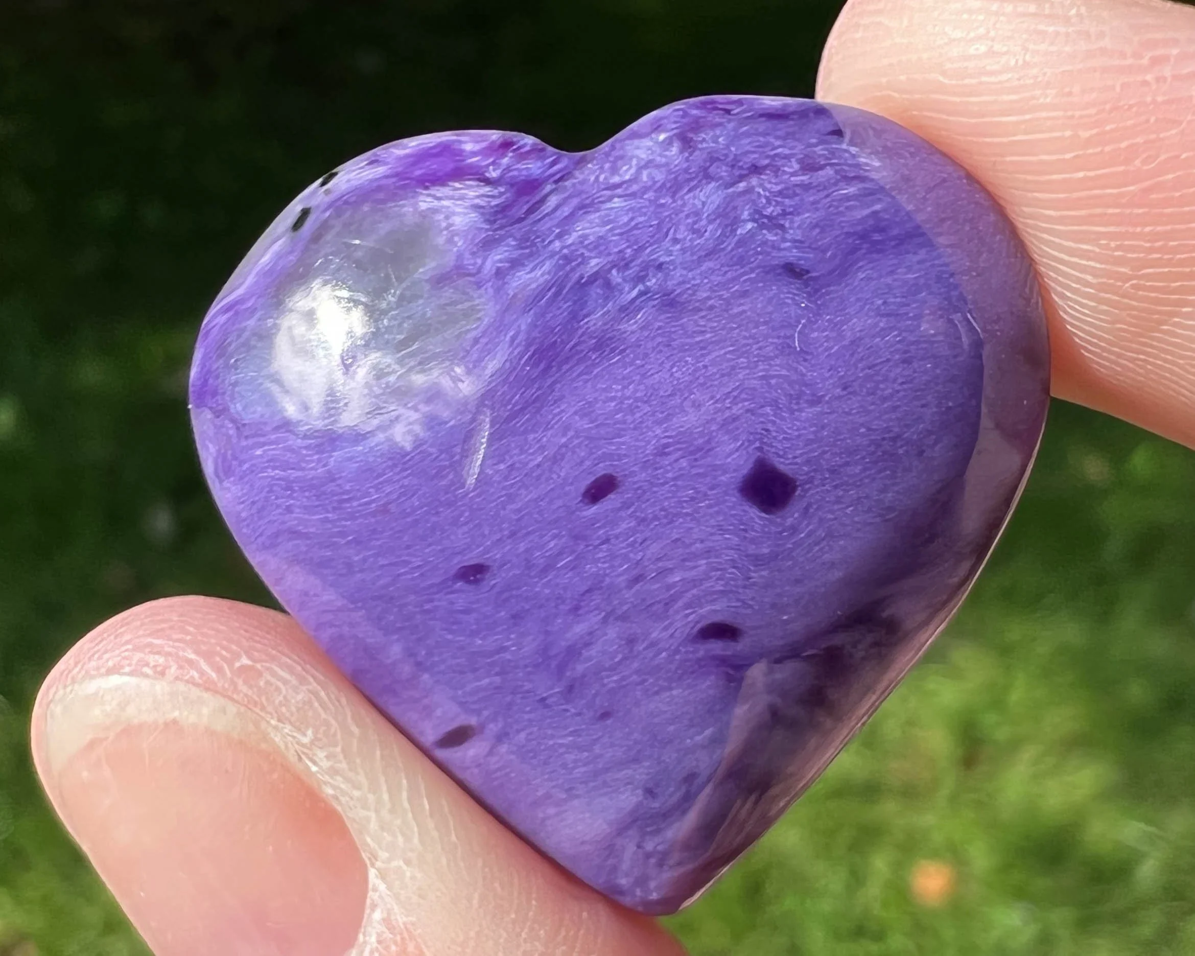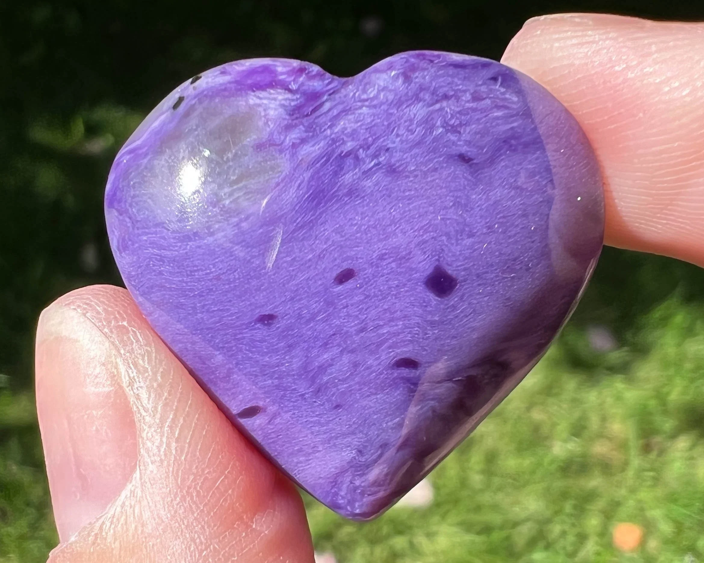 Charoite Heart Cabochon, Charoite Cabochon, Small Chatoyant Bright Purple Gemstone, Crystal Heart Carving, for Jewelry, Pendant, Gift #2