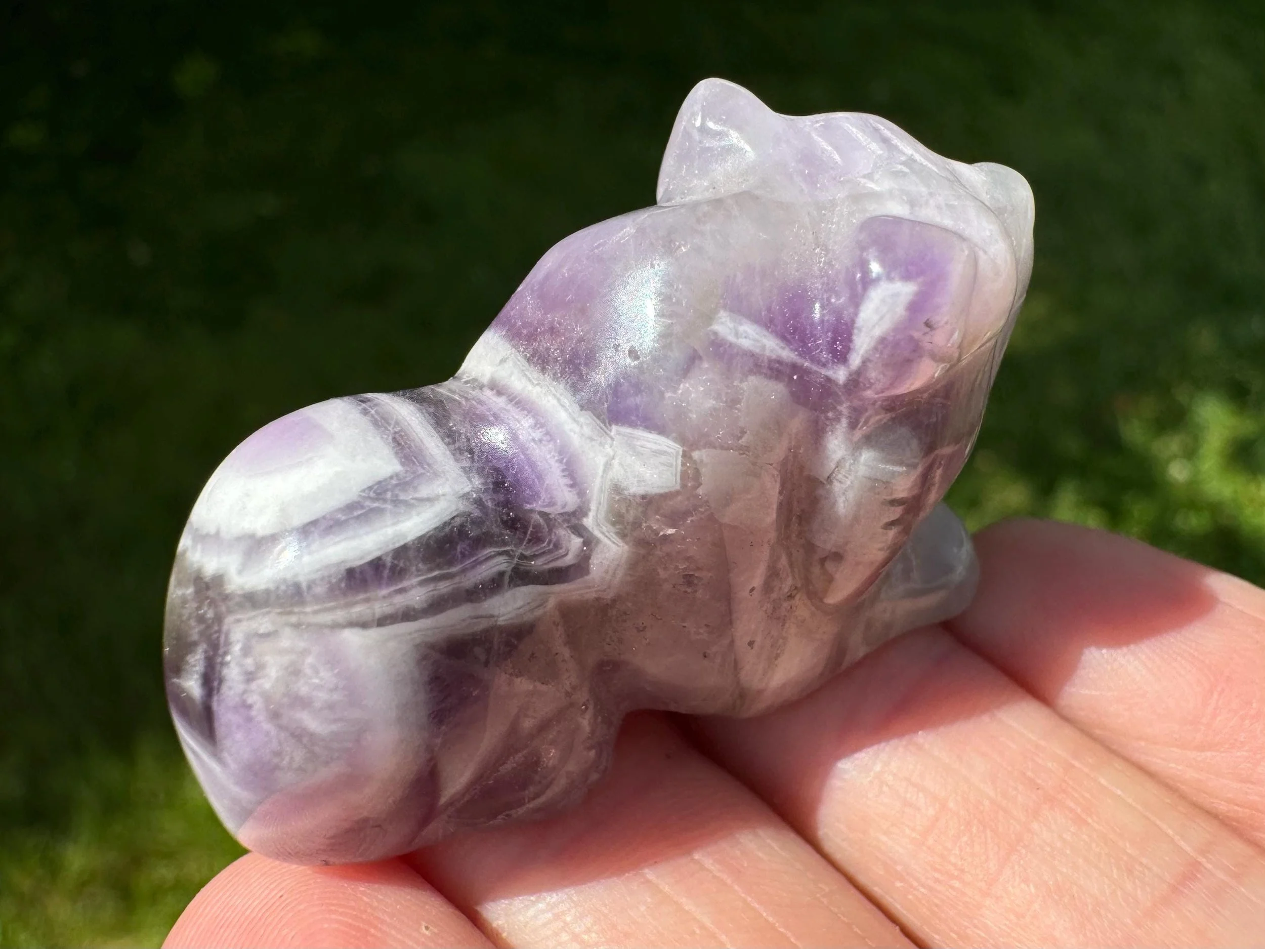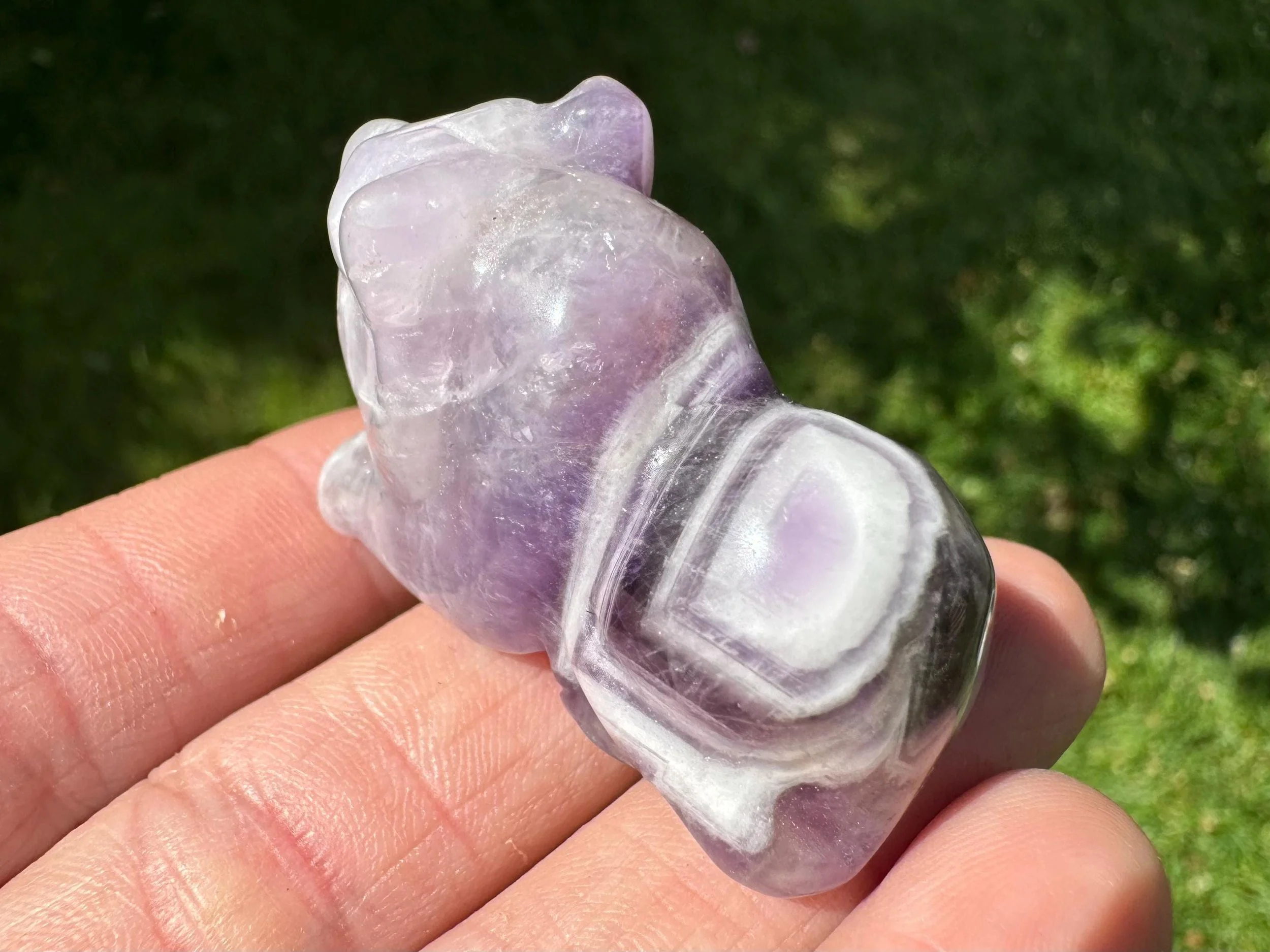 Chevron Amethyst Lion Figurine #2 Small Crystal Cat Carving, Gemstone Tiger, Gift for Animal Lover, February Birthstone, Aquarius Pisces