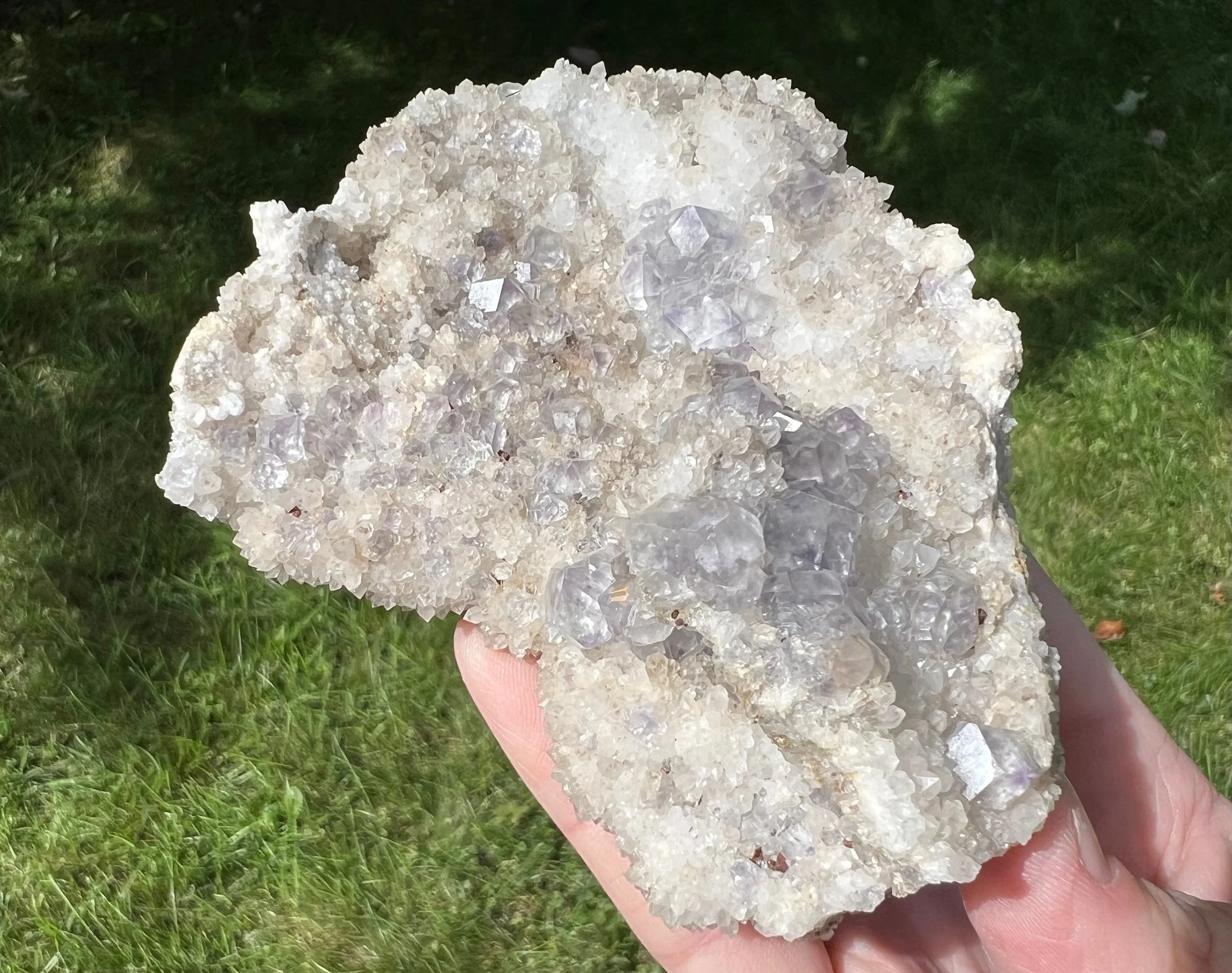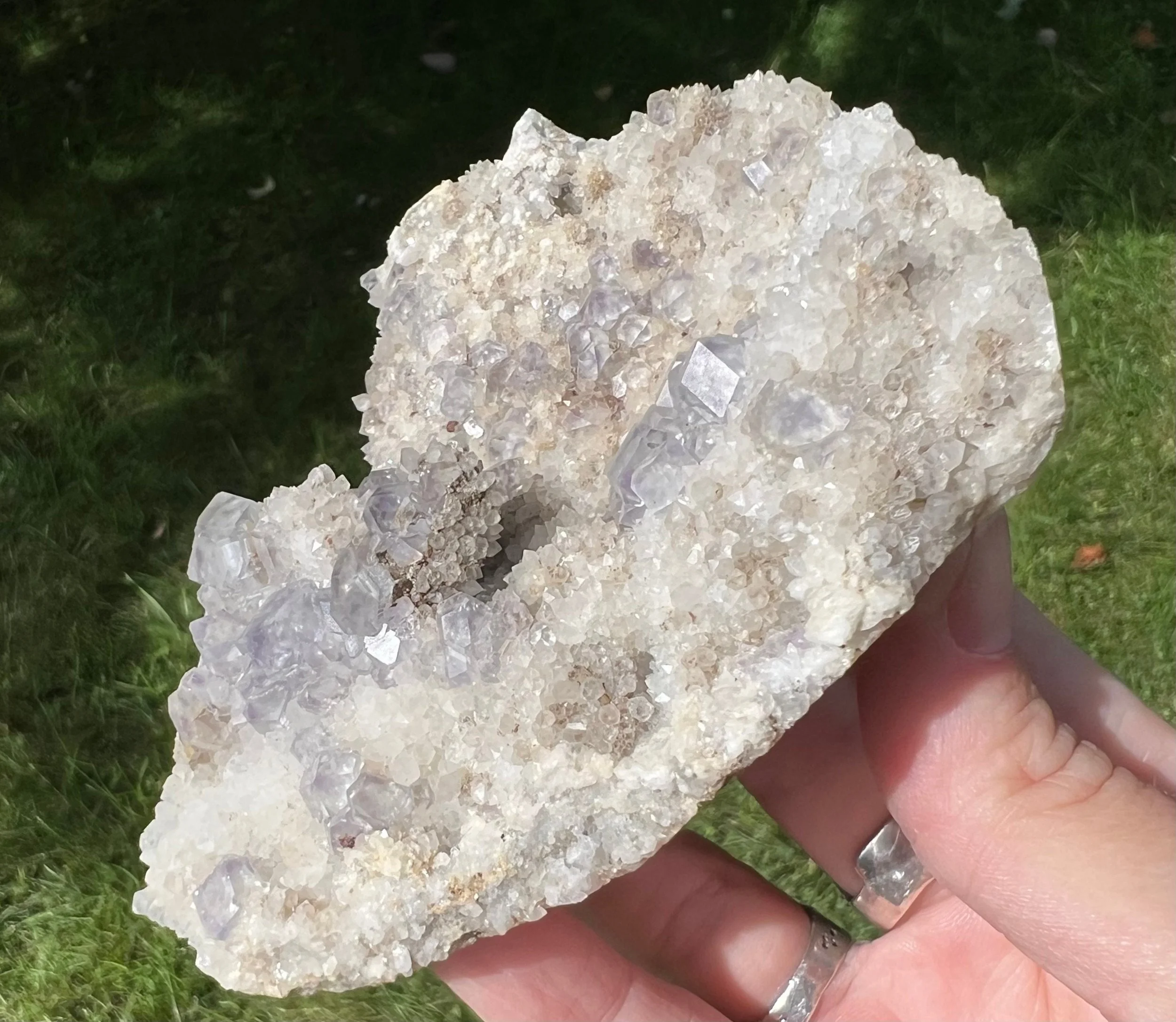 CLEARANCE Blue and Purple Fluorite Crystals on Druzy Quartz Cluster #10 from Fujian Province, China, Mineral Specimen, Gift for Her