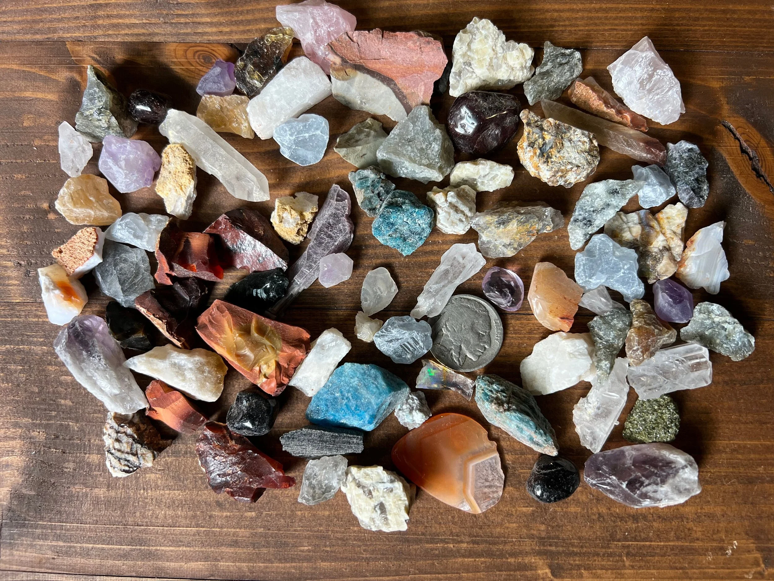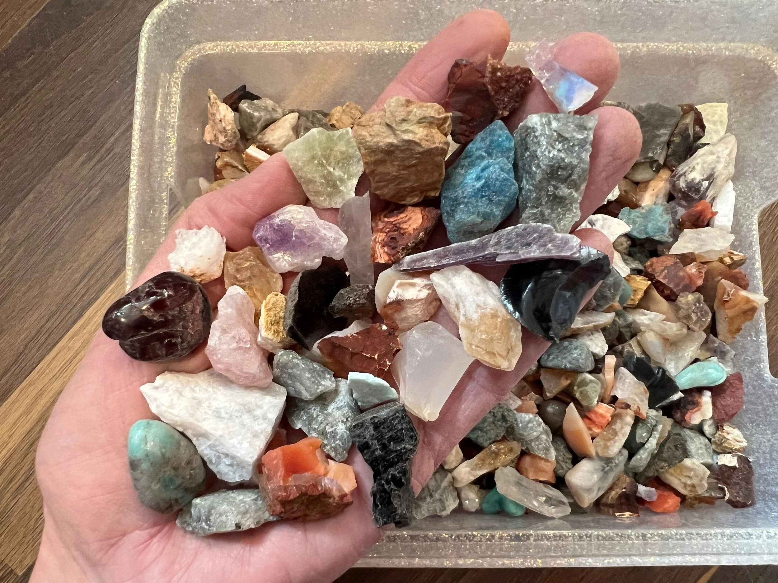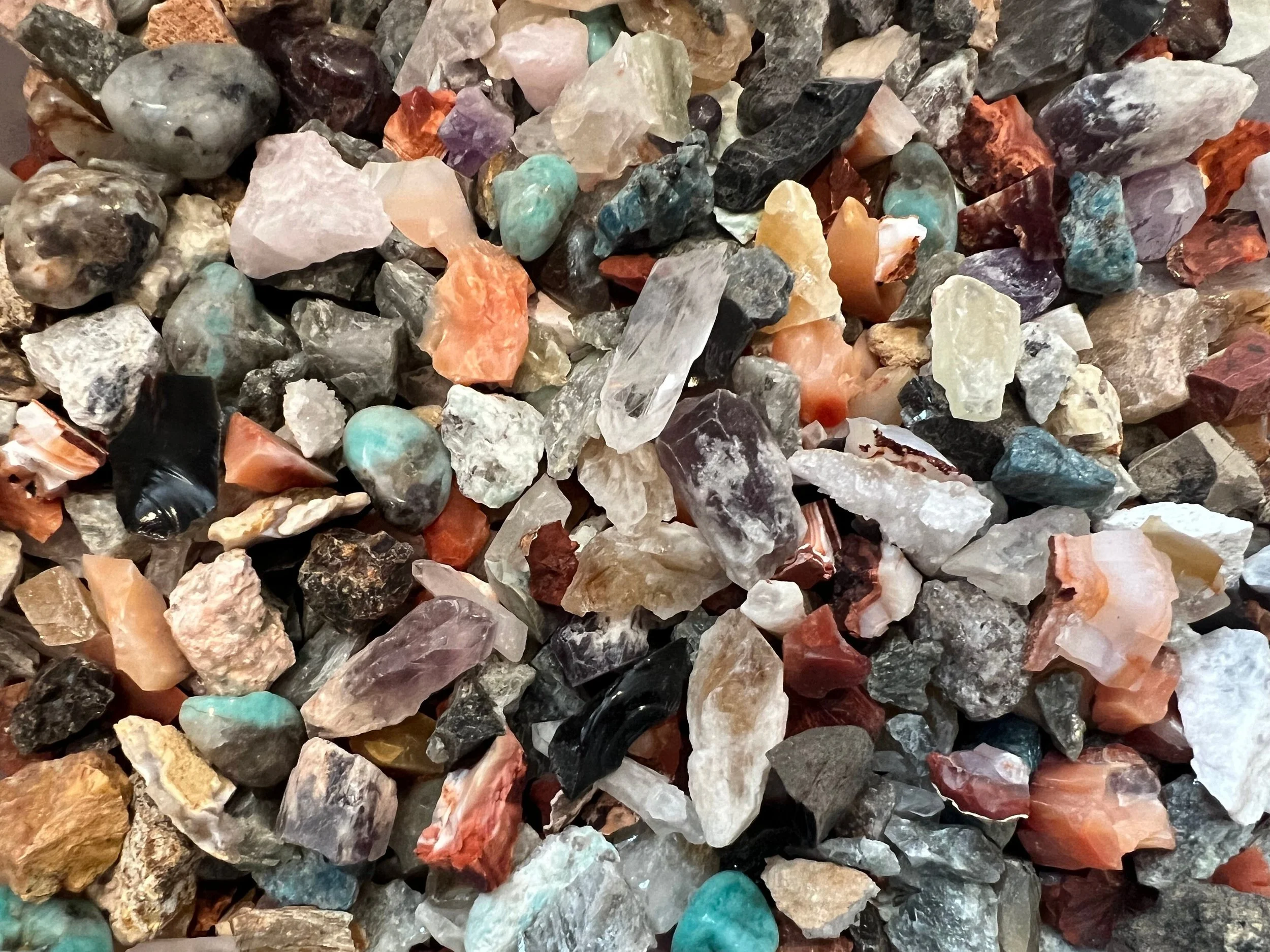 This is for 1/2 pound of crystal confetti also called floor sweepings, these are a mix of small tumbled stones, rough chips and small points, small pieces of rough stones from the bottom of wholesale bags etc.