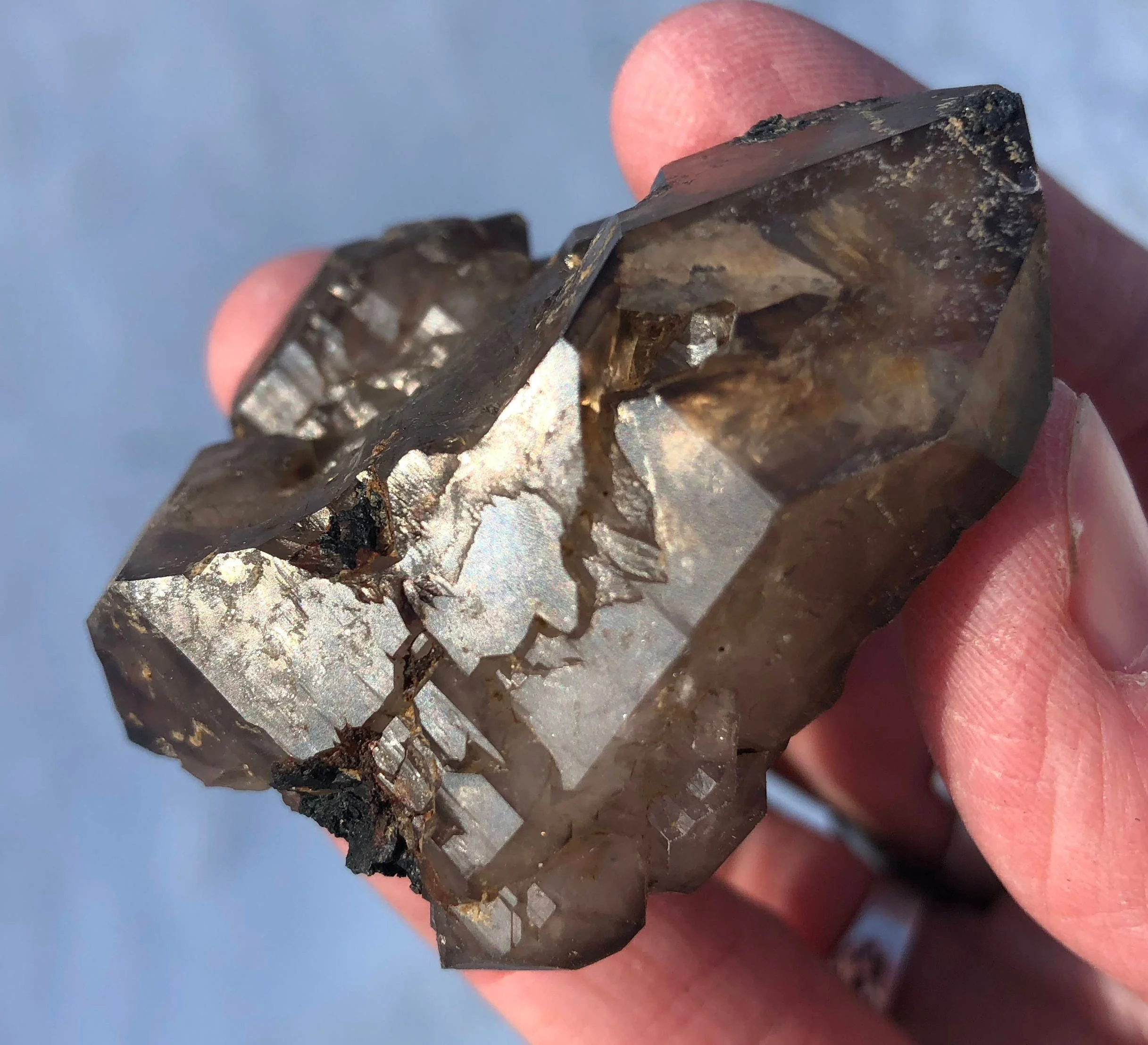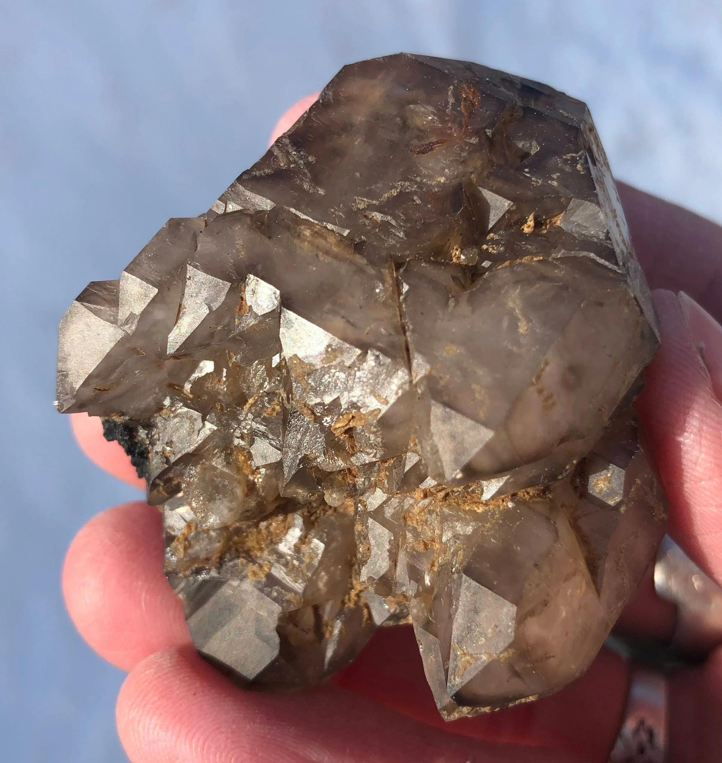 This is a beautiful natural Smoky Quartz crystal with many elestial terminations and some skeletal growth habit. This piece has pretty darker gray zoning along edges. This piece is double terminated with many terminations. A beautiful specimen! :)