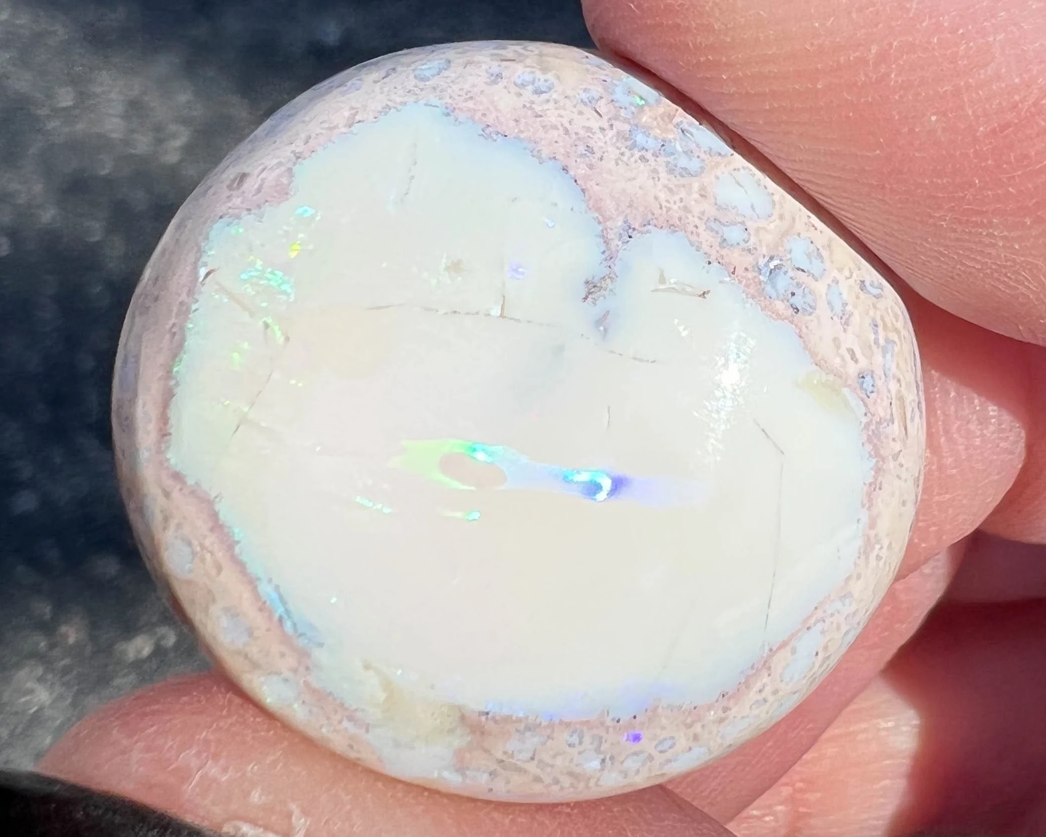 Ethiopian Opal Cabochon, Large Oval Cab, Precious White Opal, Bright Rainbow, 25mm for Pendant, Necklace, Display Piece, Gift for Her #B