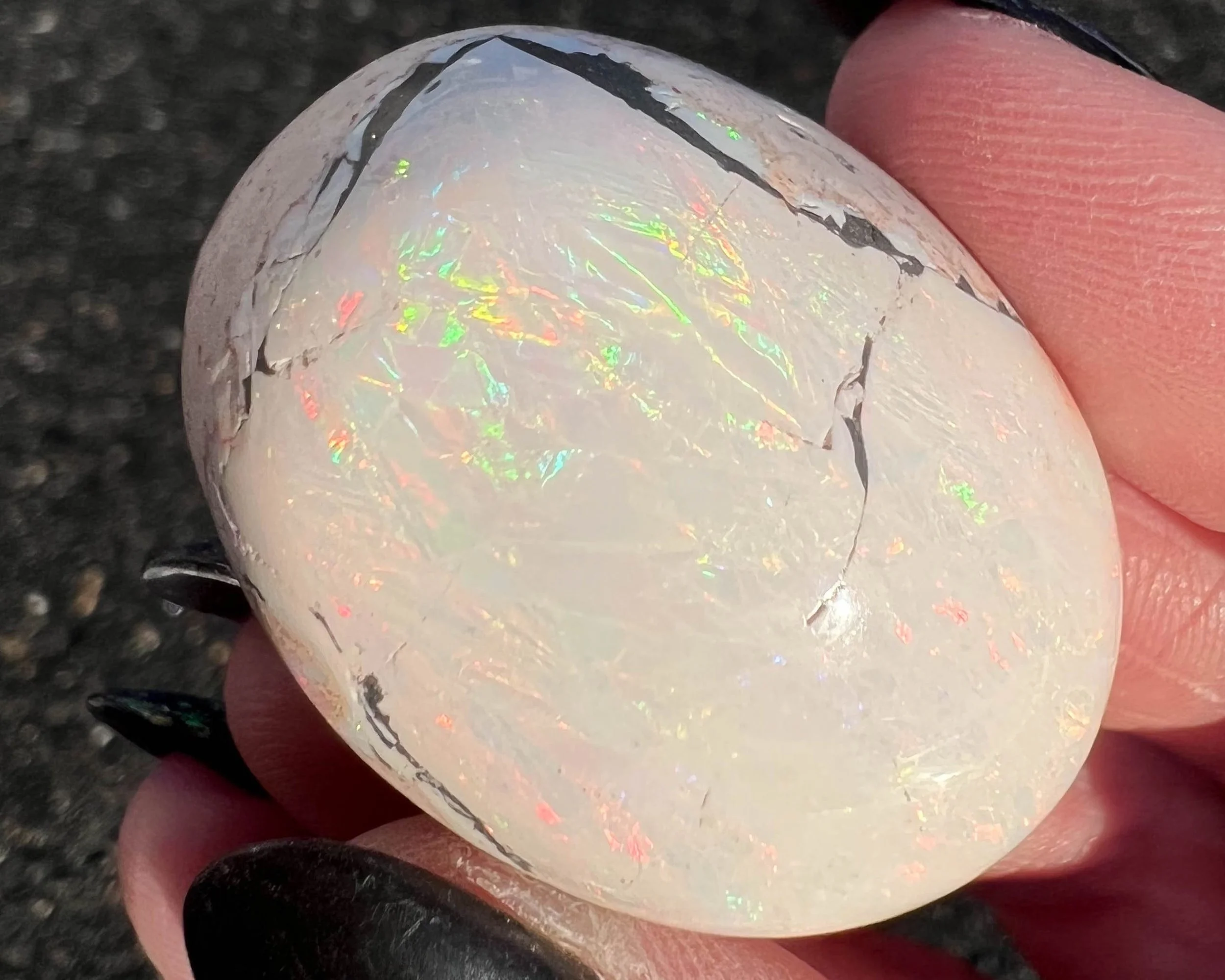 Ethiopian Opal Cabochon, Large Oval Cab, Precious White Opal, Bright Rainbow, 36mm for Pendant, Necklace, Display Piece, Gift for Her #A