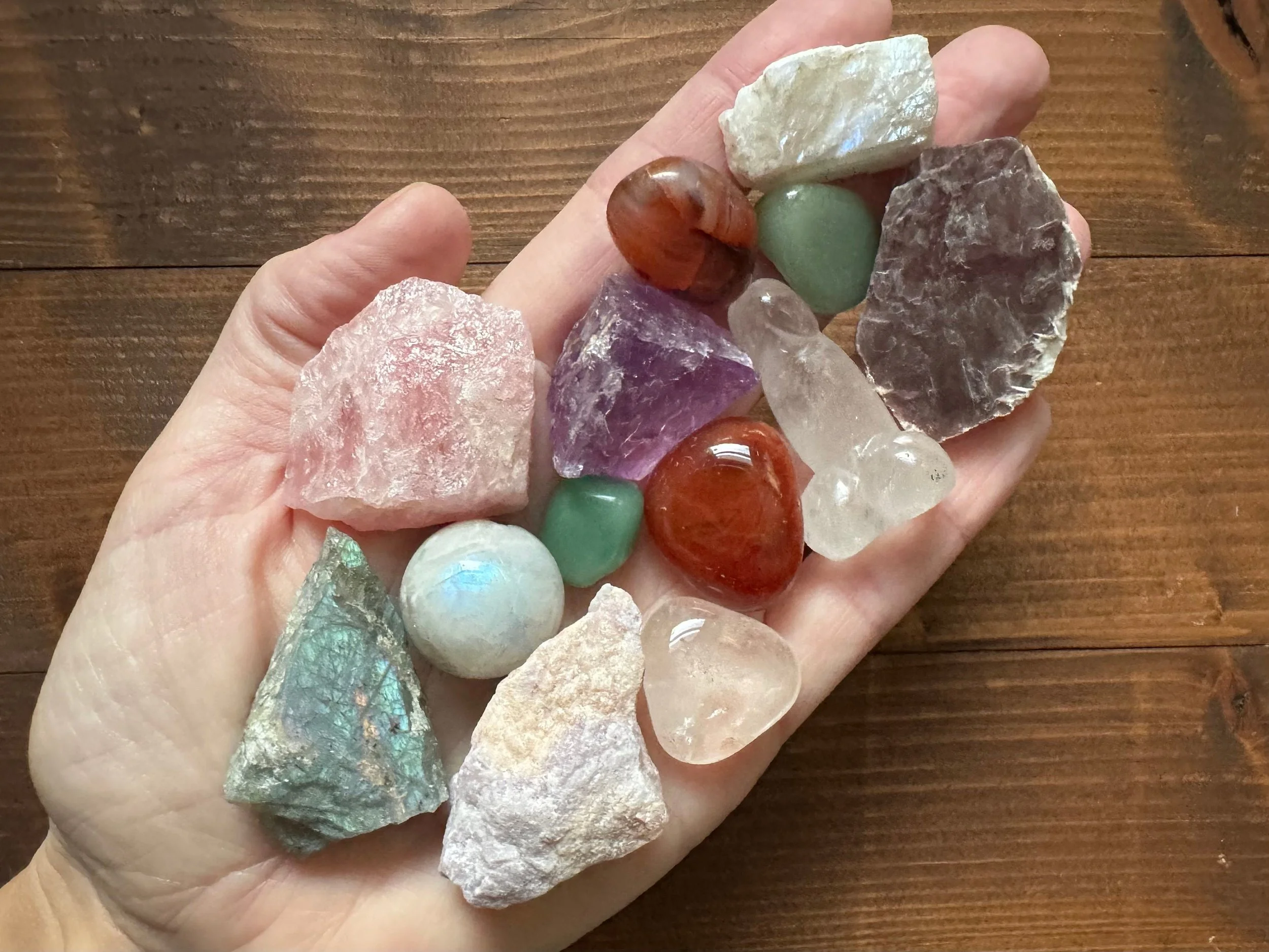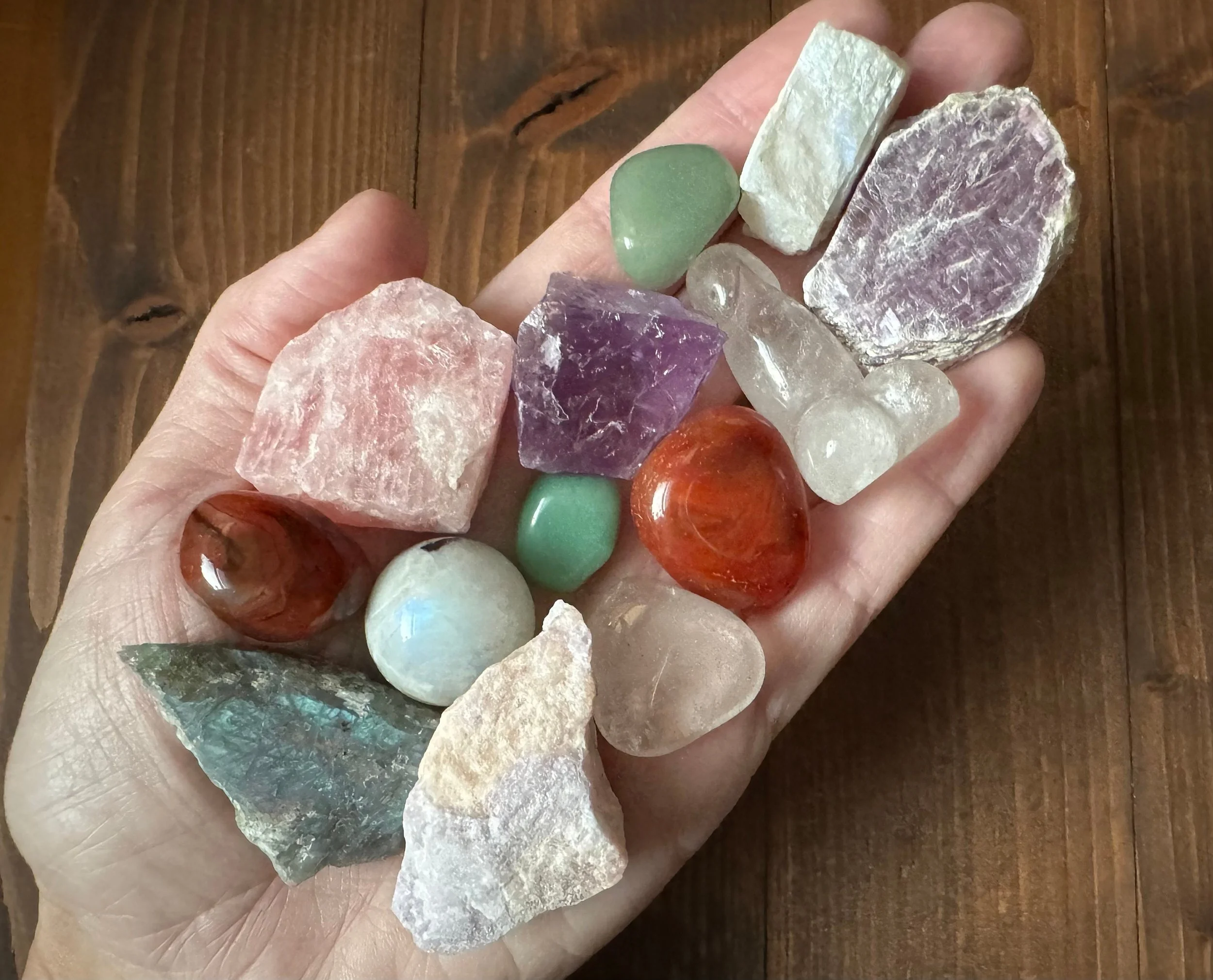 Fertility Crystal Set: Moonstone, Carnelian, Rose Quartz, Labradorite, Gift Set #4