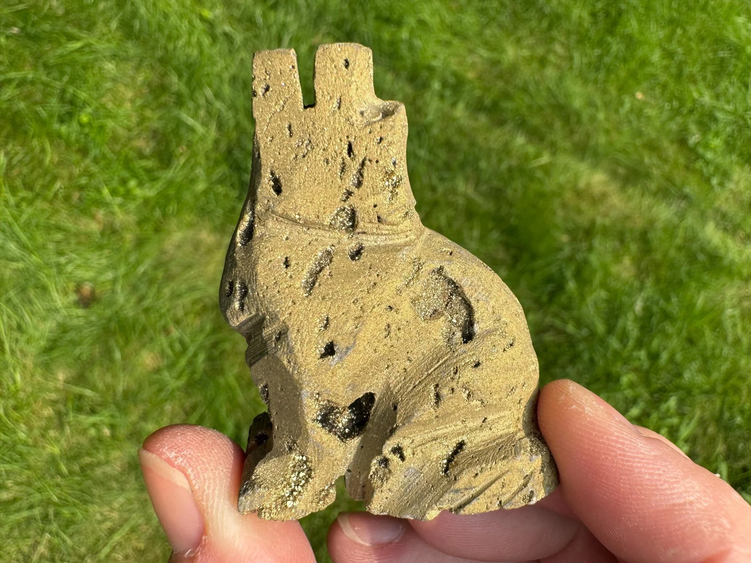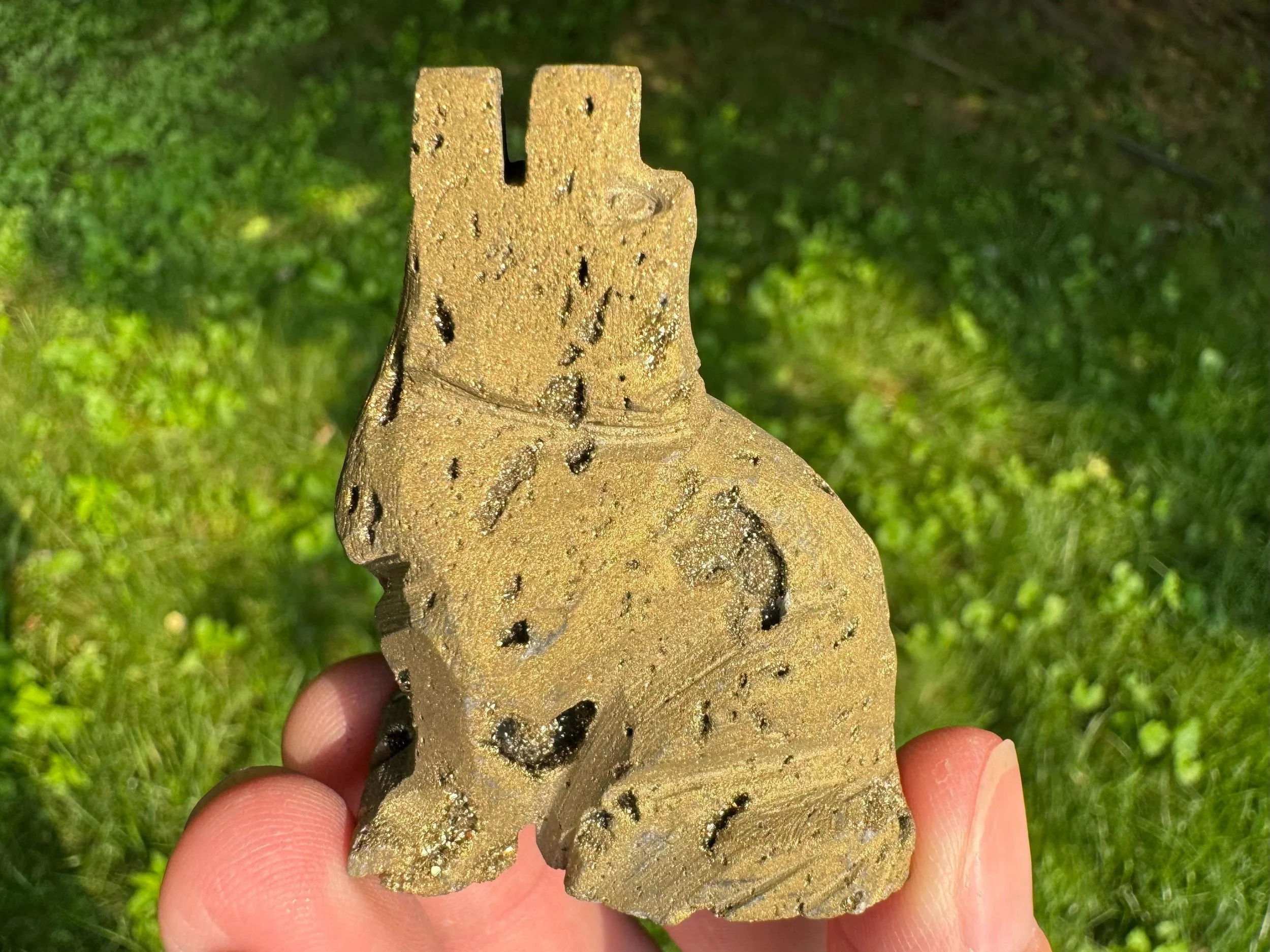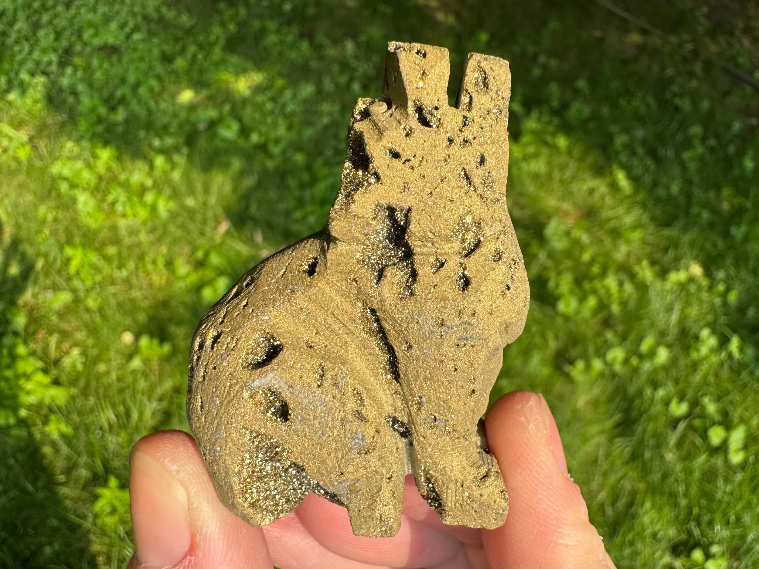This is a gorgeous howling wolf (or coyote) carved from Quartz with sparkly druzy Quartz pockets all over! It is coated in golden aura which makes it sparkly gold colored, It is sparkly and fabulous and awesome!