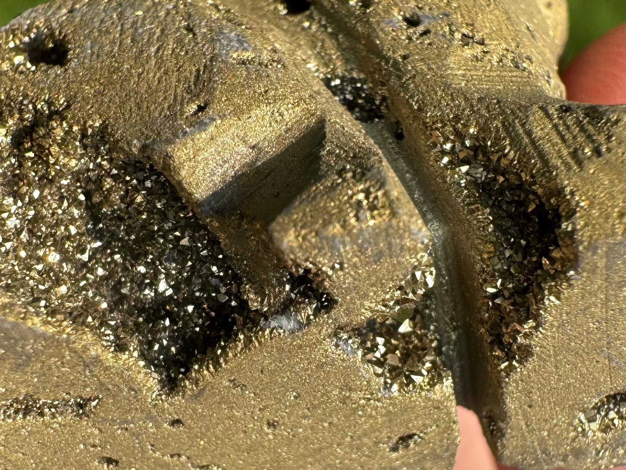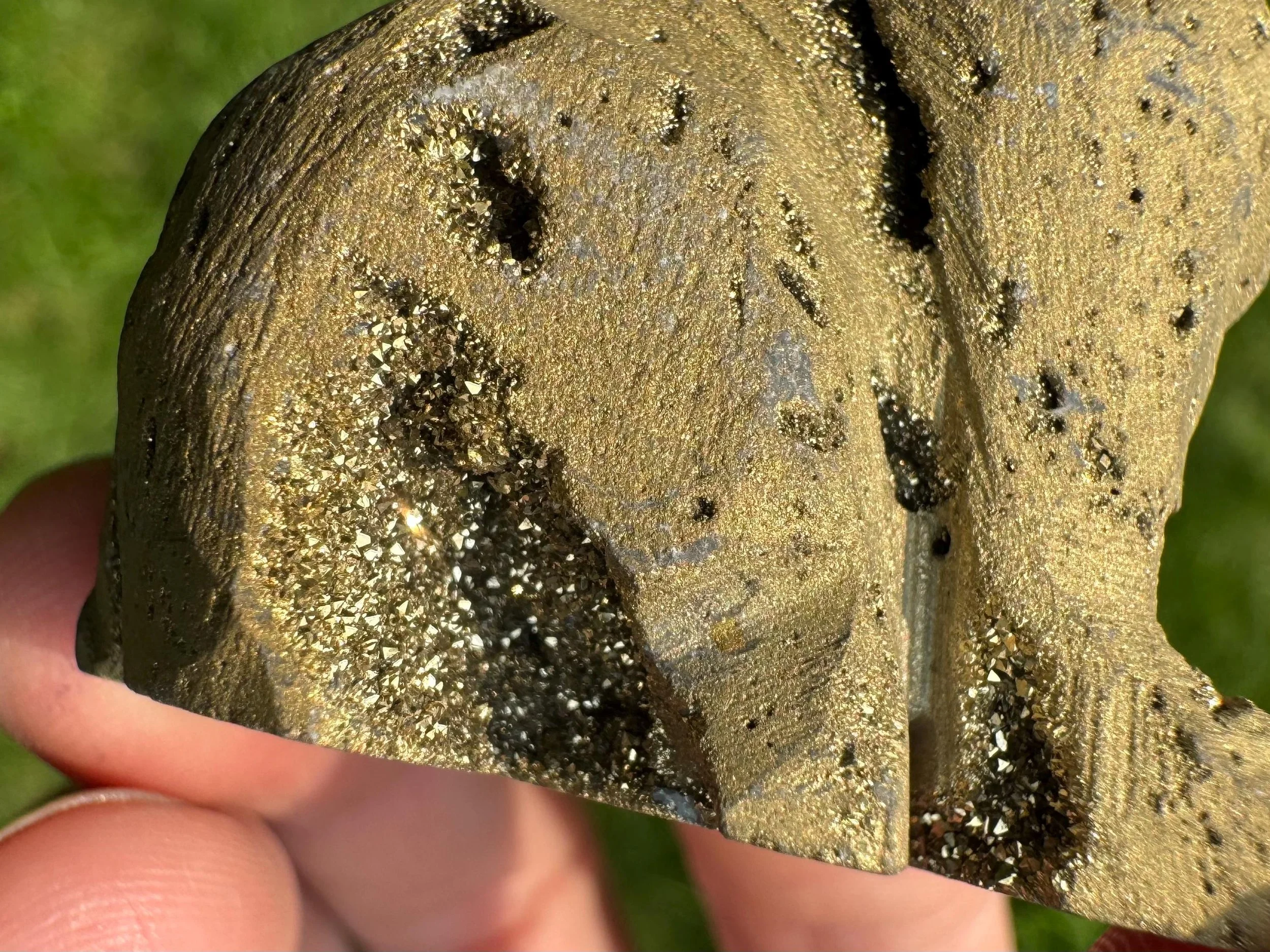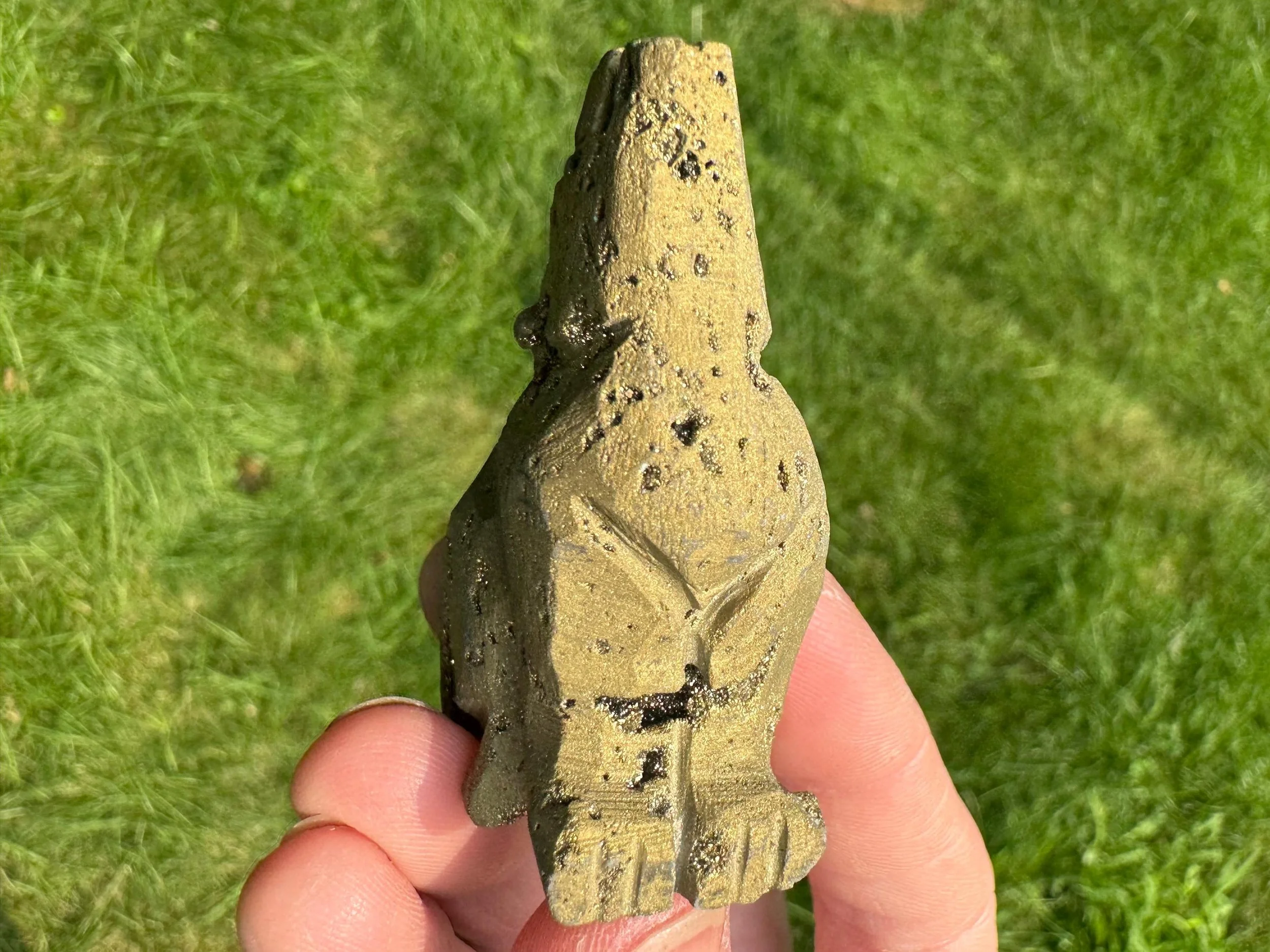 This is a gorgeous howling wolf (or coyote) carved from Quartz with sparkly druzy Quartz pockets all over! It is coated in golden aura which makes it sparkly gold colored, It is sparkly and fabulous and awesome!