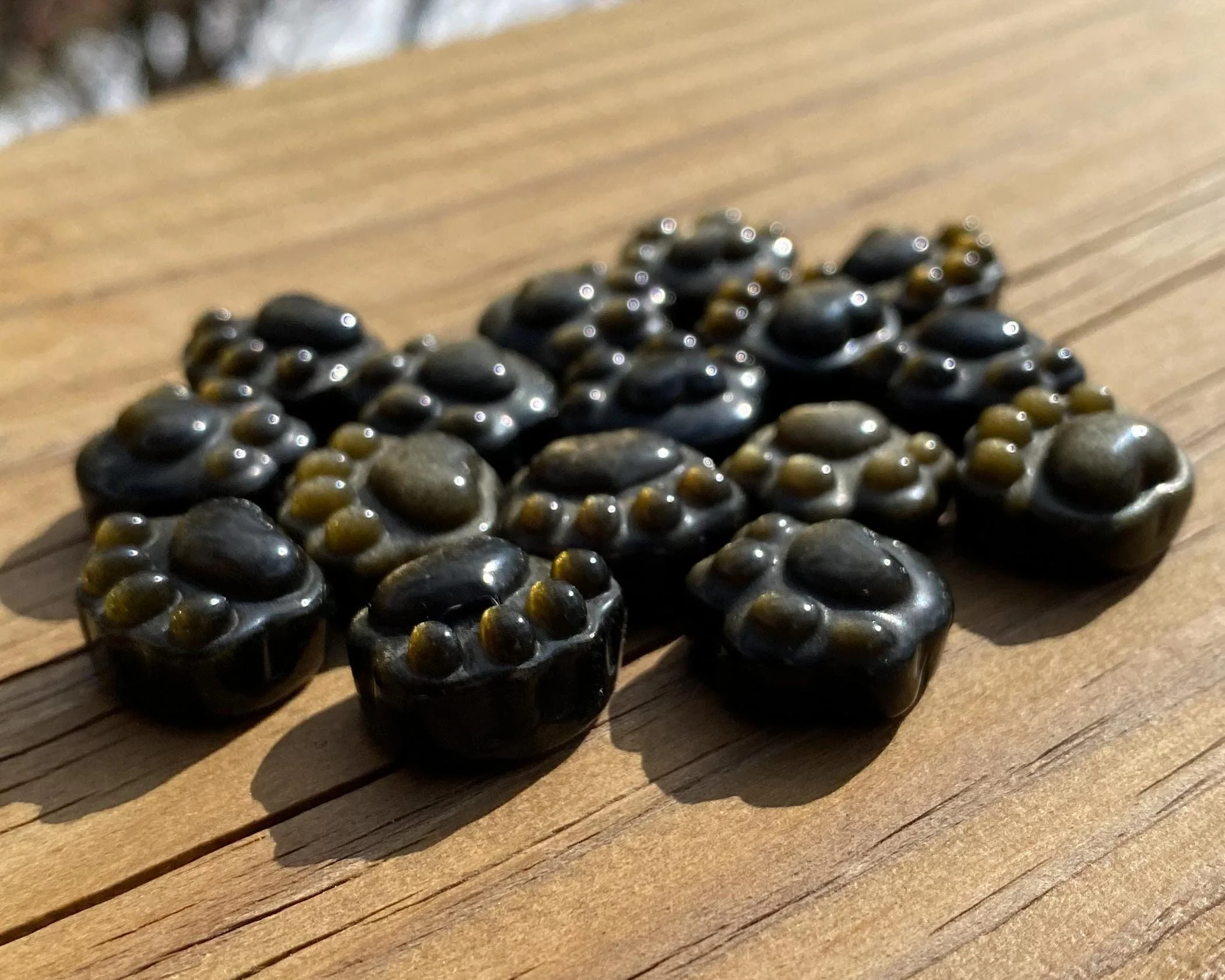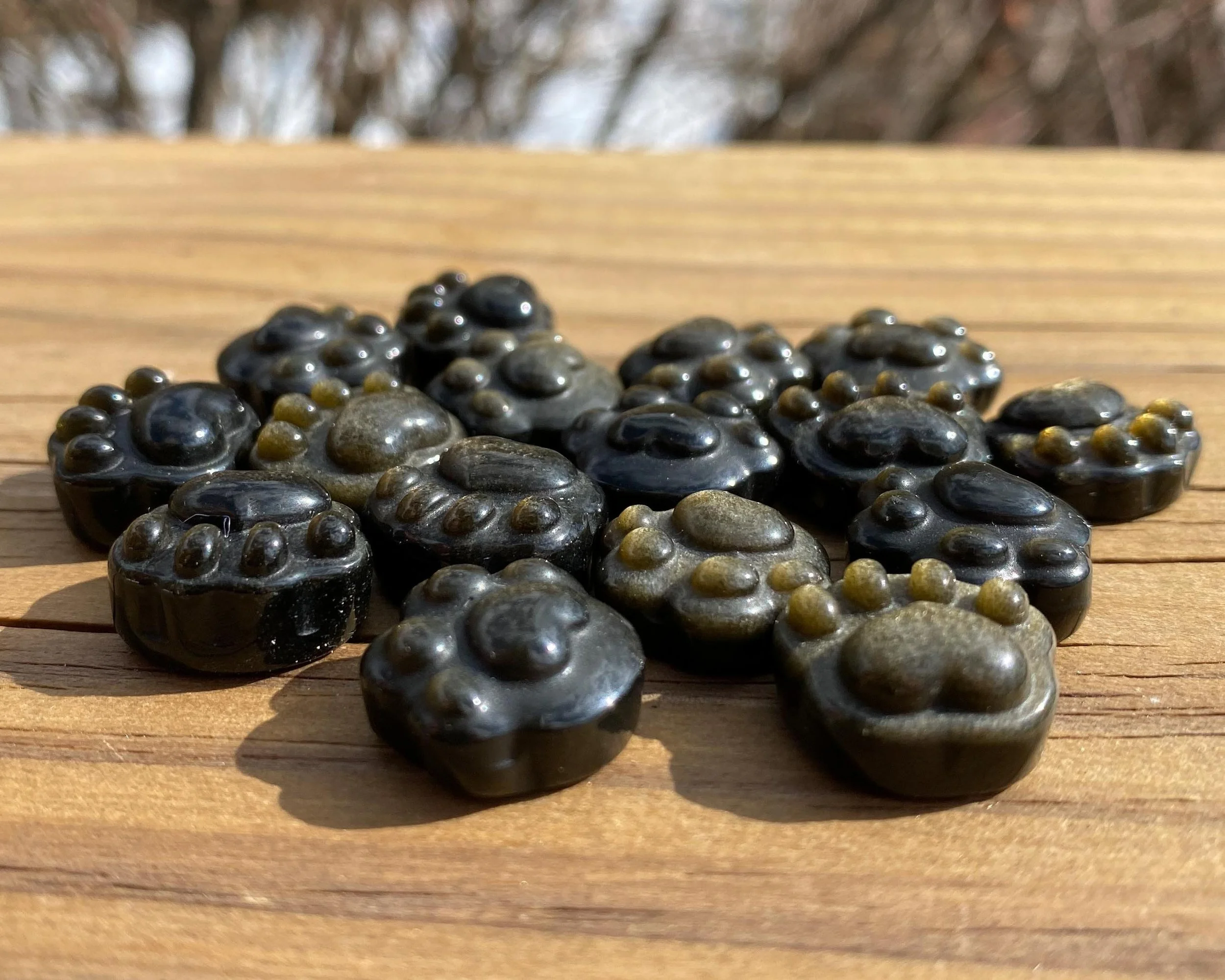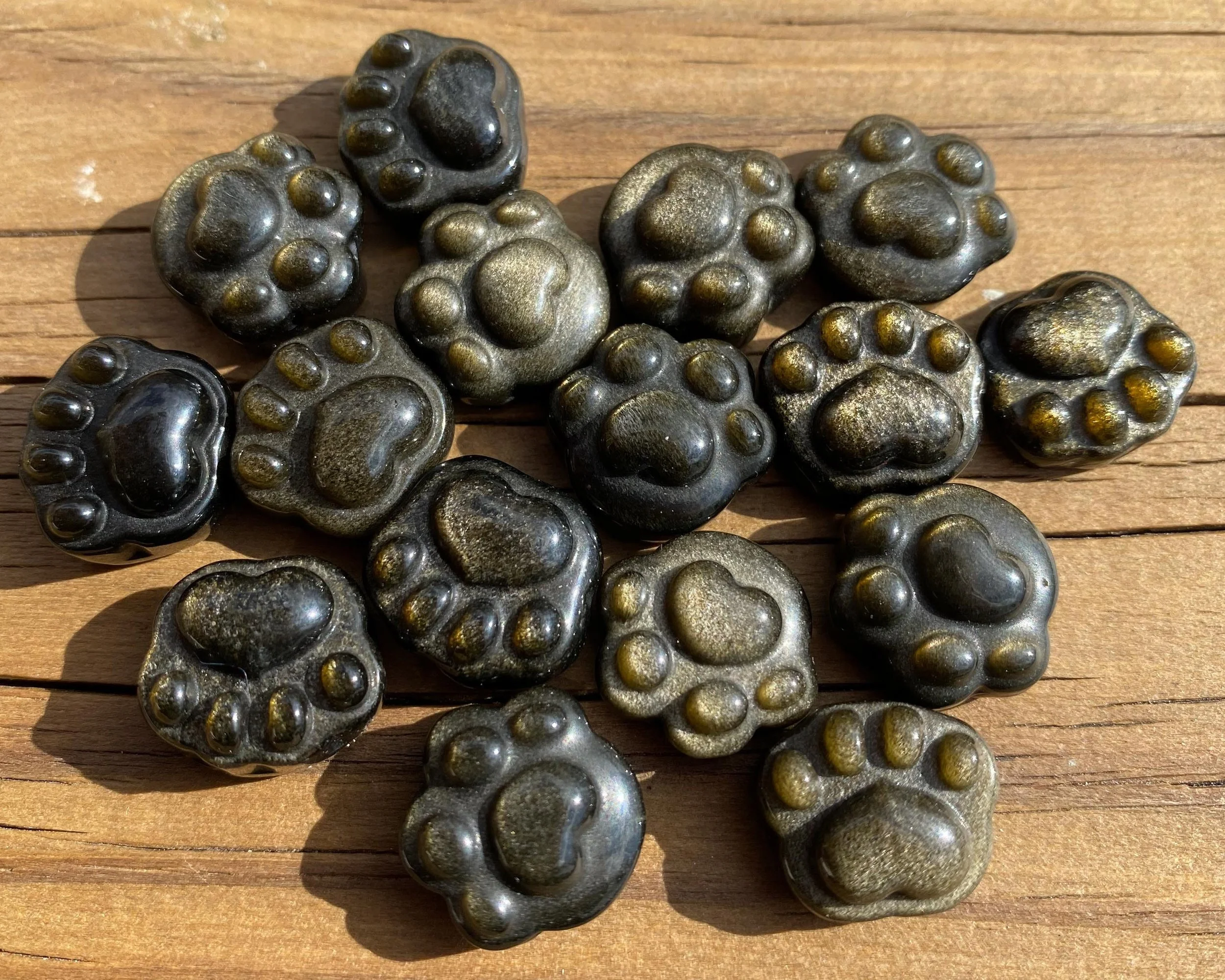 Gold Sheen Obsidian Paw Prints, Dog or Cat Memorial Crystal, Gemstone Paw Print, Small Paw Print Carving, Stone Cabochon for Jewelry