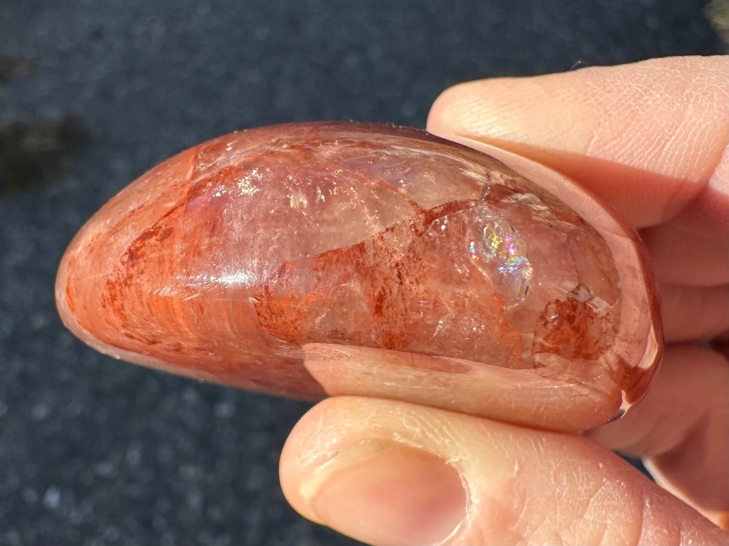 Hematoid Quartz Palm Stone with Rainbows #1 Fire Quartz, Smooth Crystal Fidget, Red Hematite in Girasol Quartz, Gift for Her Mom, Home Decor