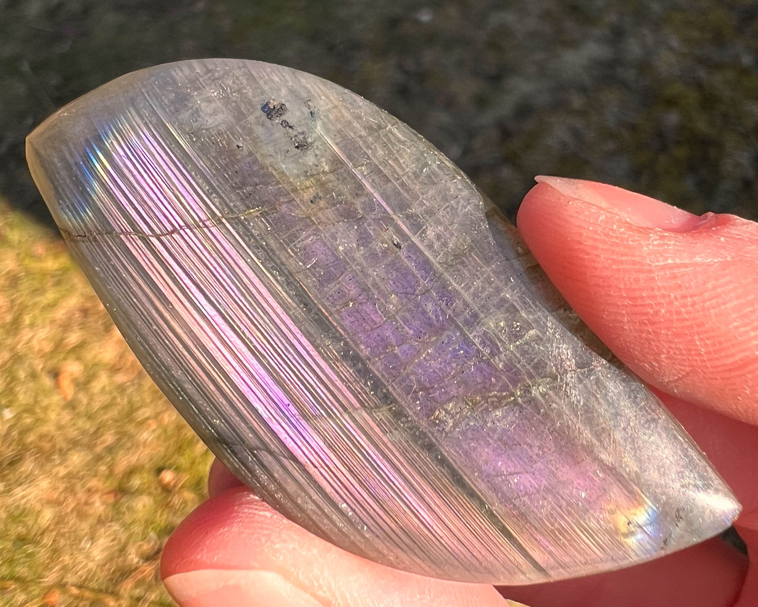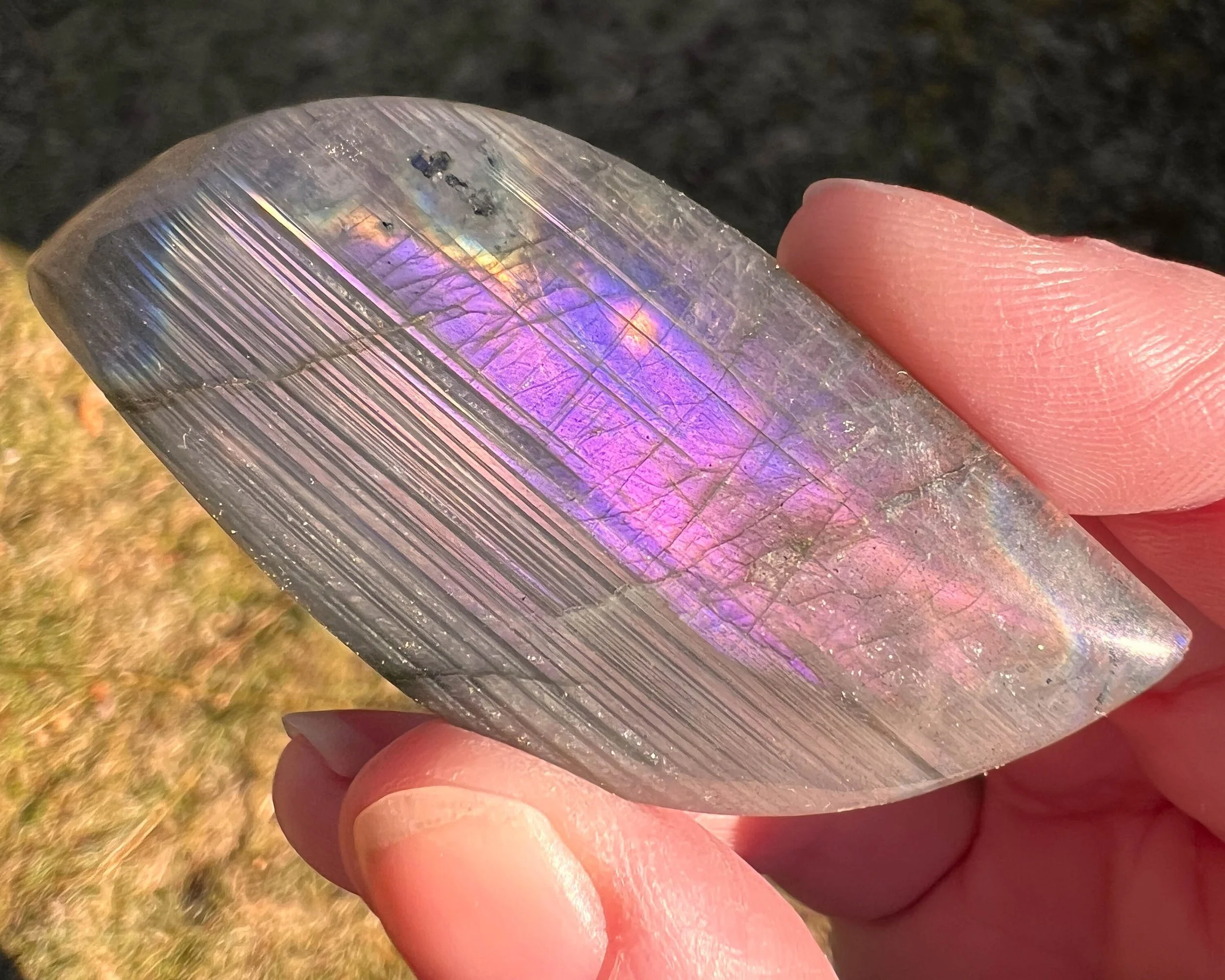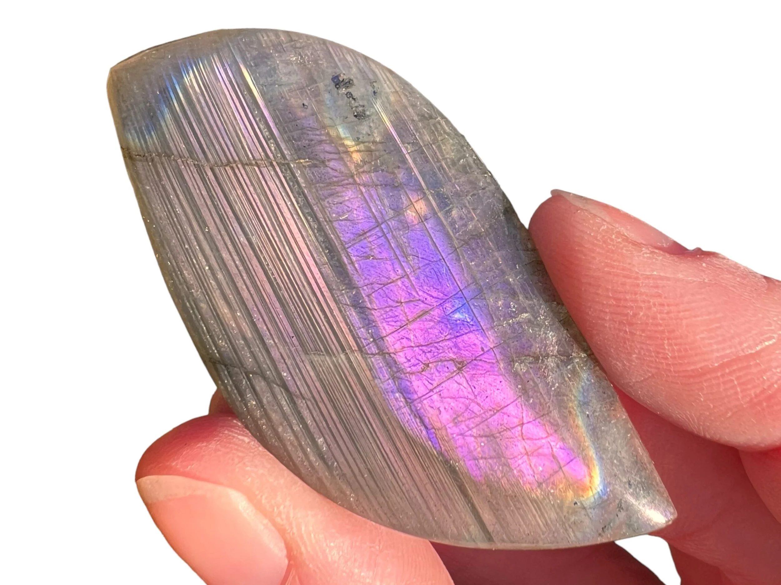 Labradorite Cabochon, Freeform Fancy Cut, Flashy Purple Labradorite Cab, Pink Blue, Crystal for Jewelry, for Pendant, Leather Crafts #1