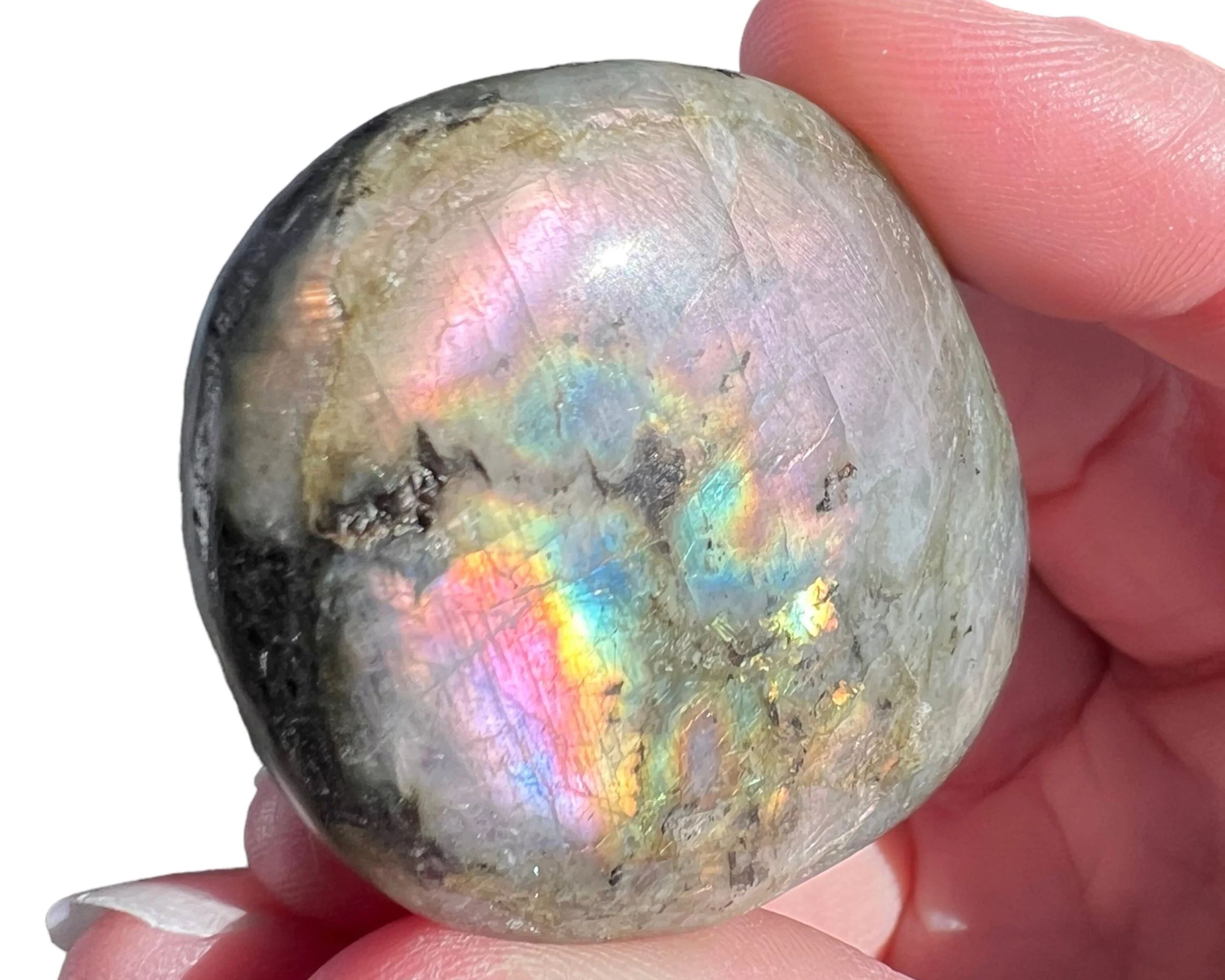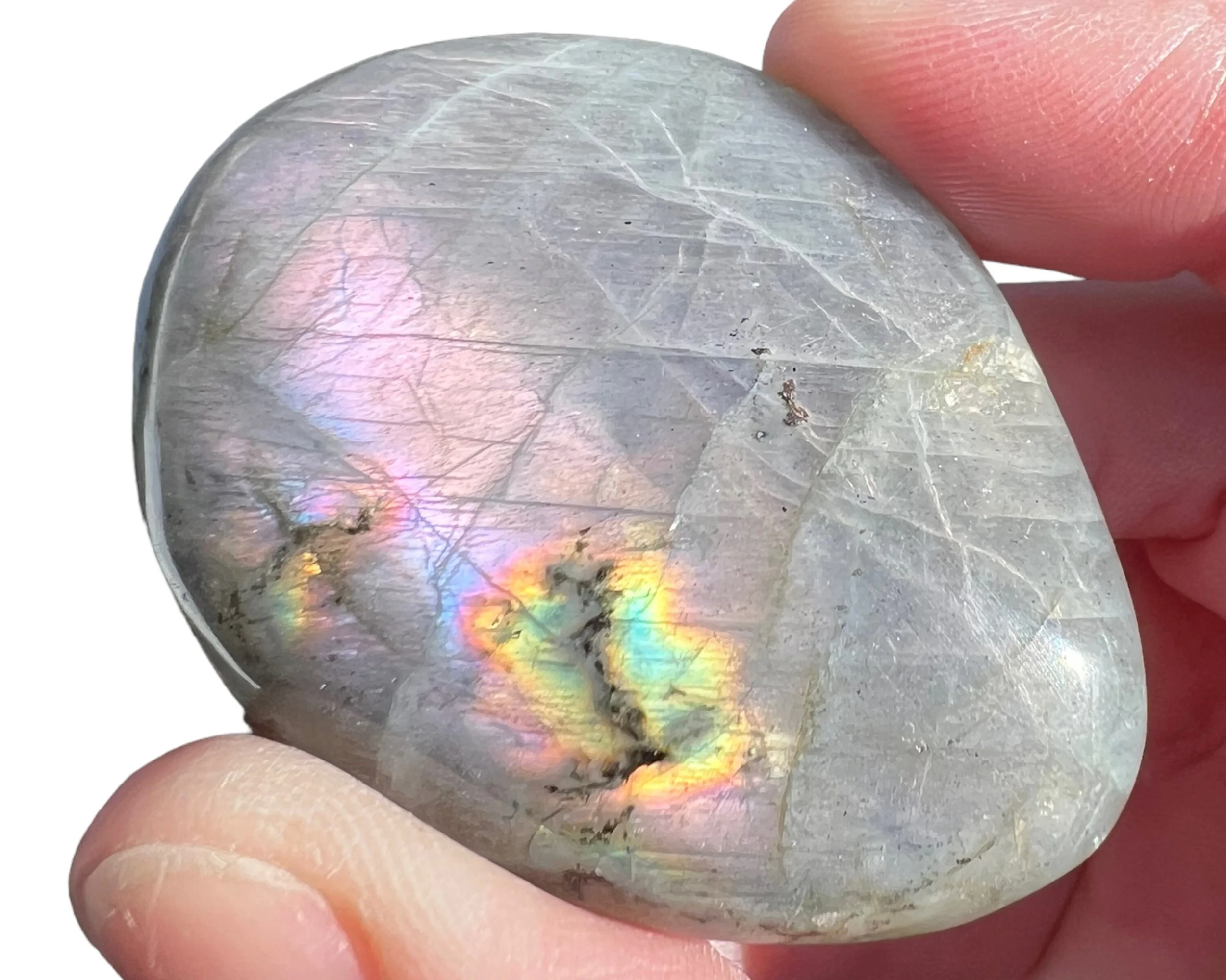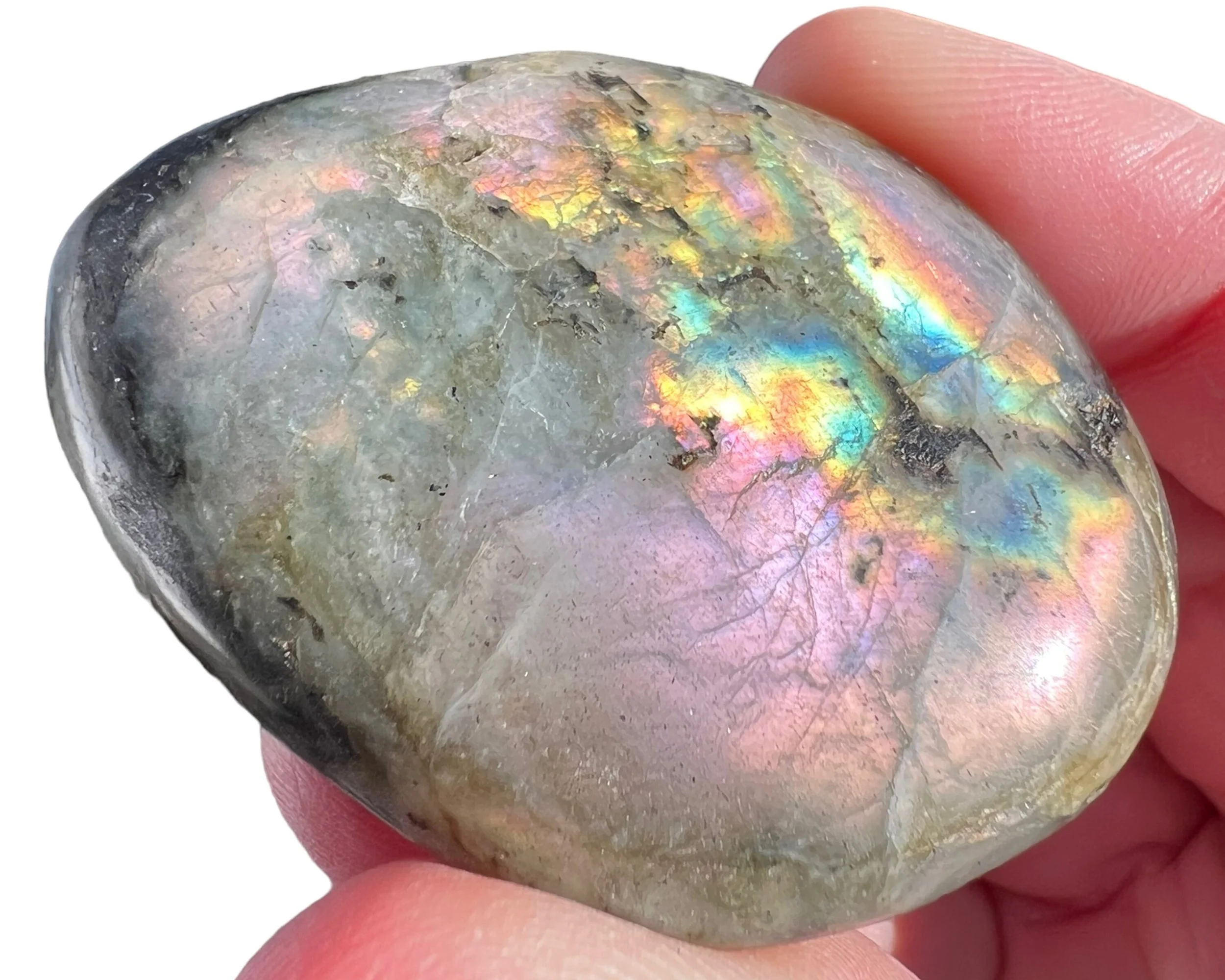 Labradorite Palm Stone #8 Purple Pink Flashy Rainbow Labradorite Crystal Gift for Sagittarius, Gemstone for Leo, for Scorpio, Fidget Stone