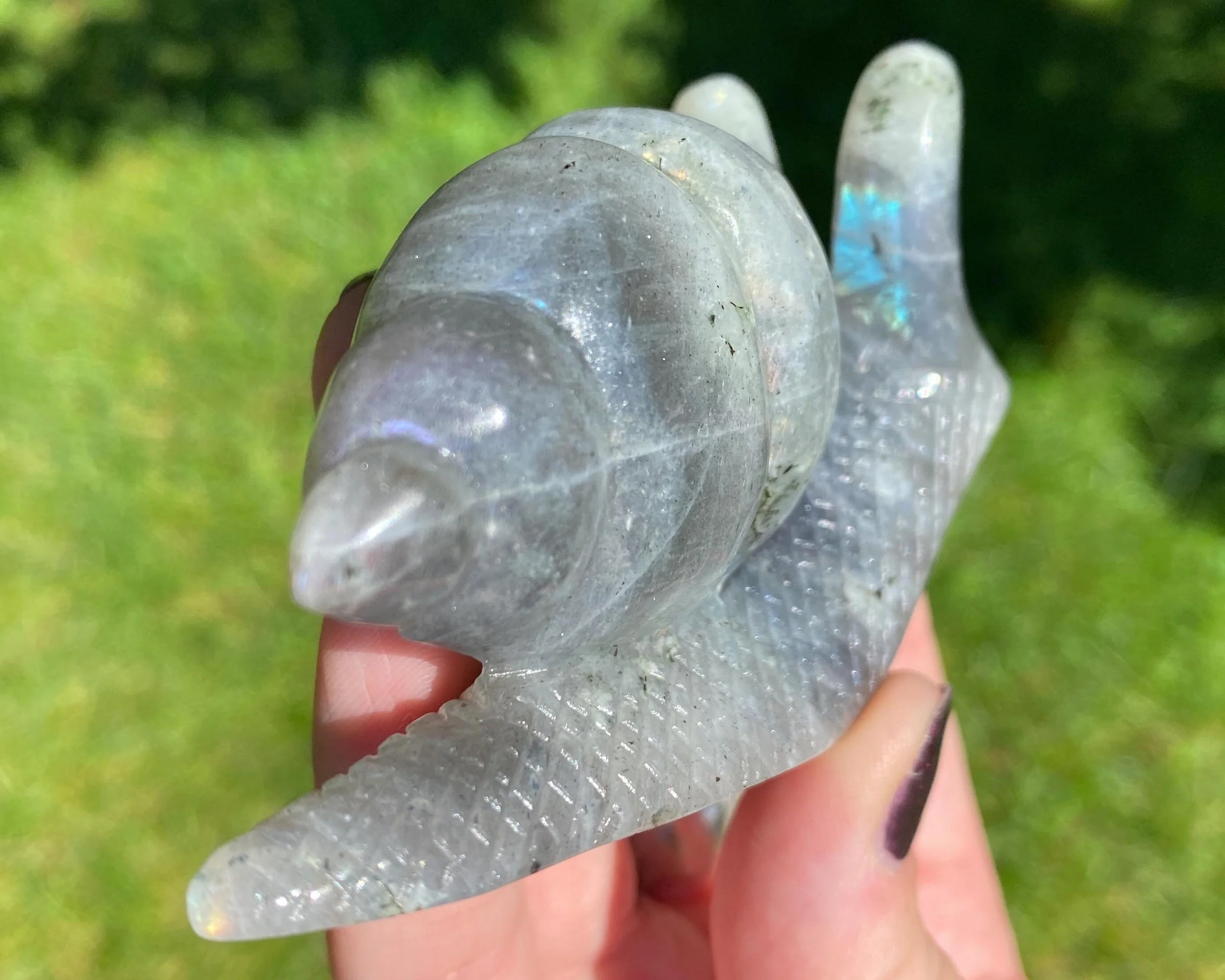 Labradorite Snail, Rainbow Crystal Carving, Pink Purple Blue Rainbow Flash, Large Snail Figurine, Flashy Labradorite Carving, Snail Decor #3
