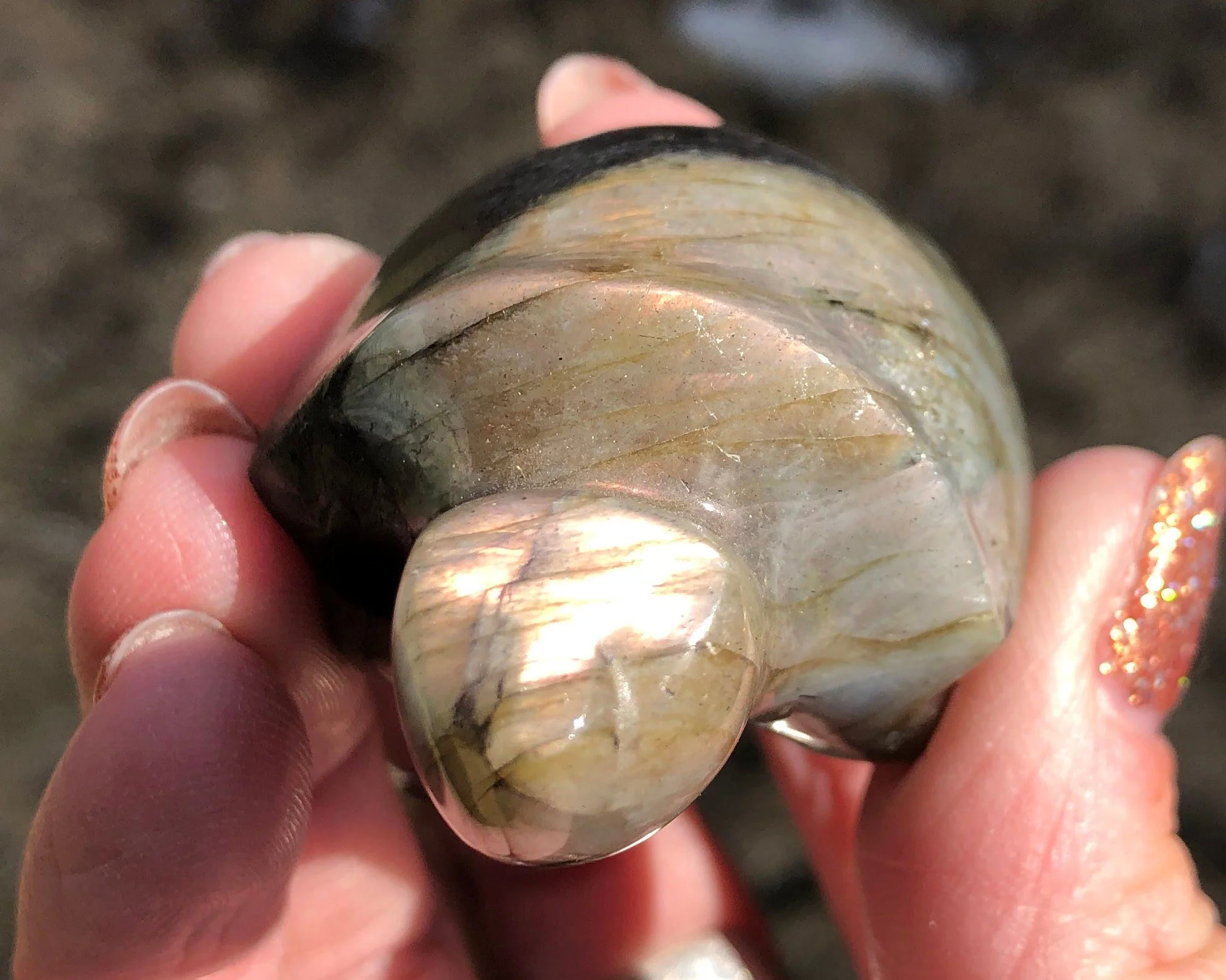 Labradorite Turtle with Pink Flash, Crystal Carving, Gemstone Turtle Gifts for Women, Birthday Gift for Mom, for Girlfriend, for Friend #1