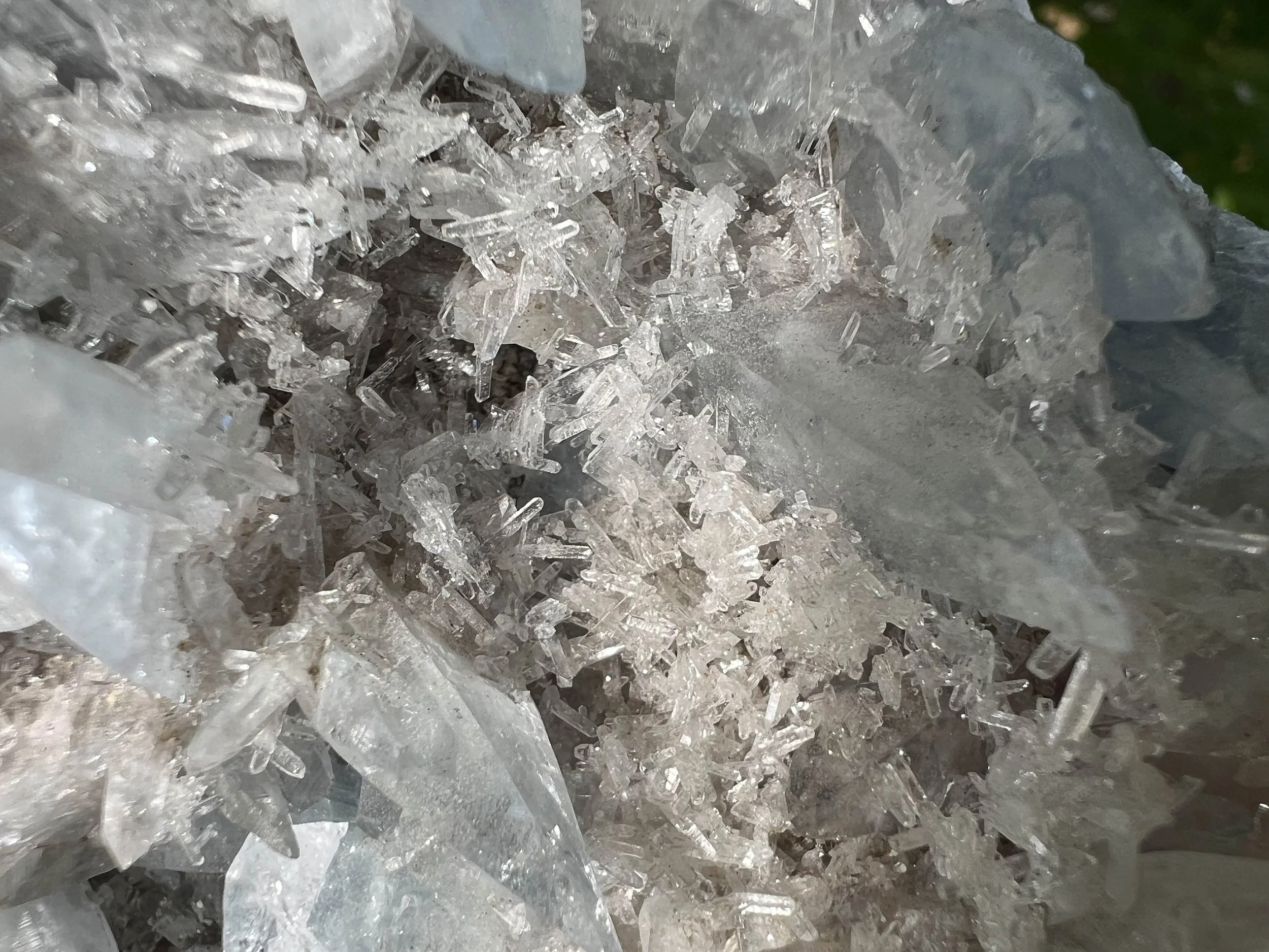 Large Blue Celestite Cluster, Gemmy Pointed Blue Celestine with Needle Quartz Crystals from Sakoany, Rare Minerals, Collector, Scalenohedral