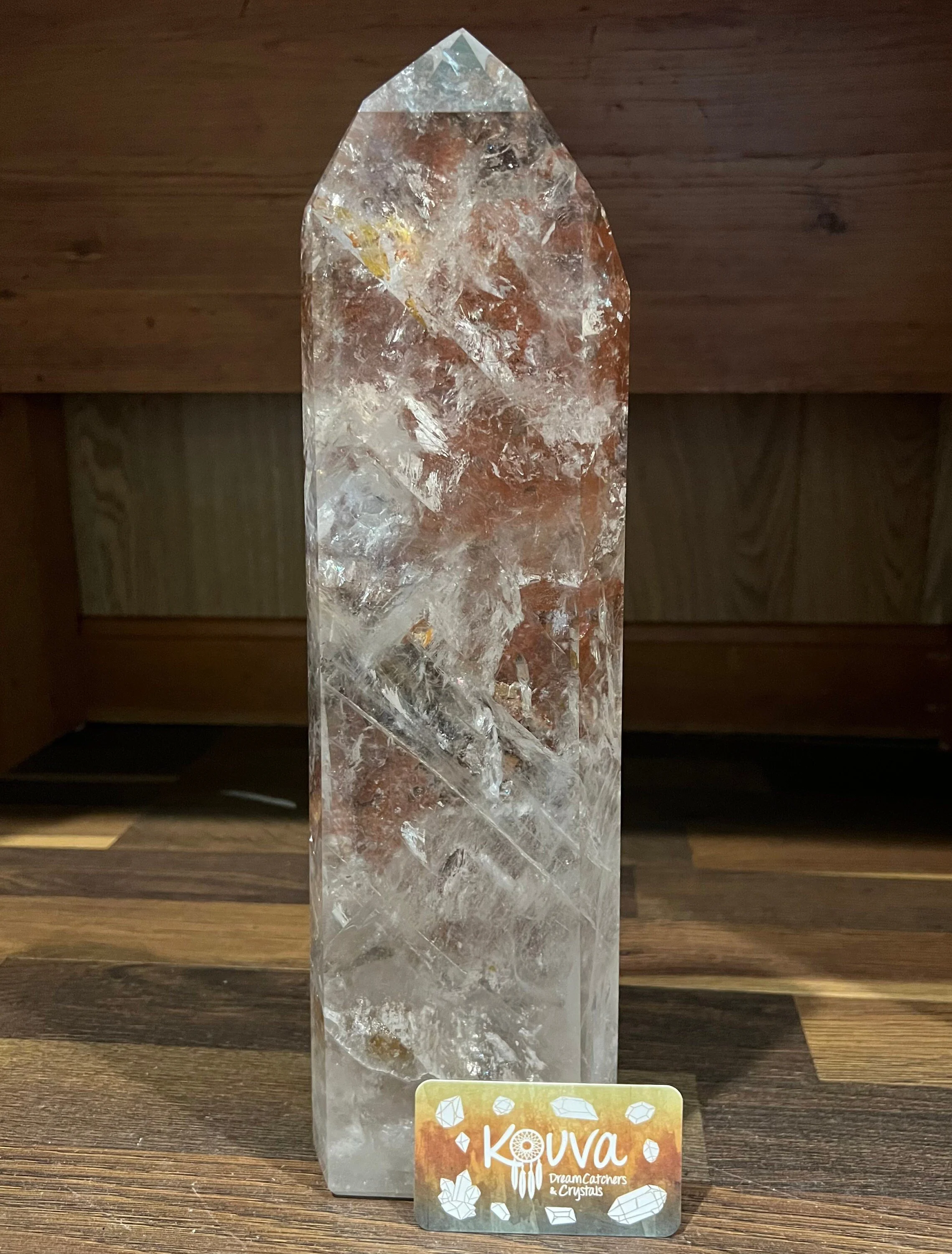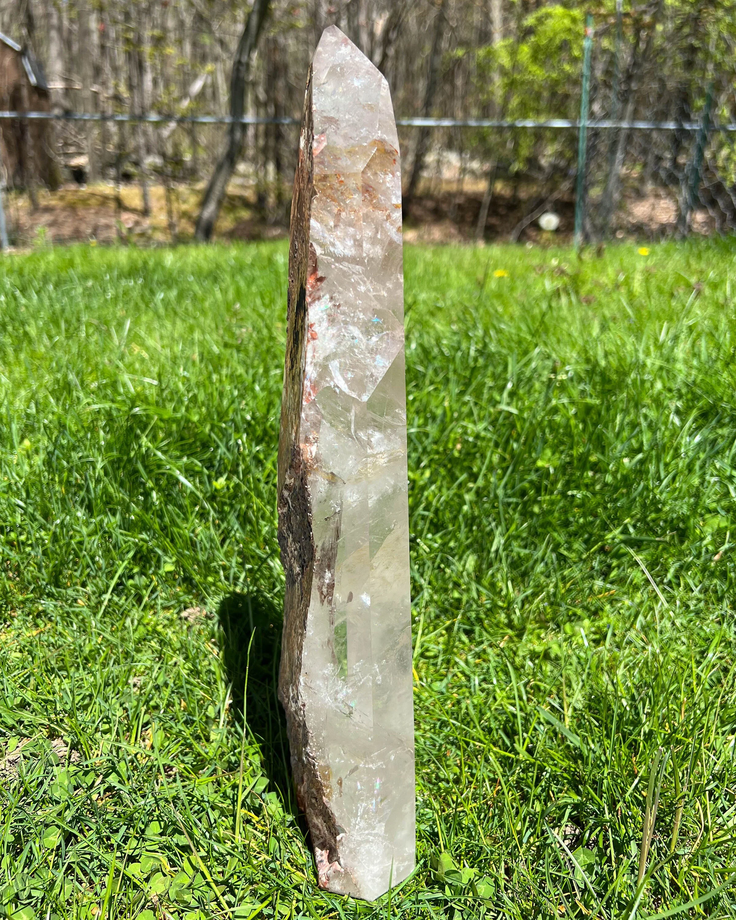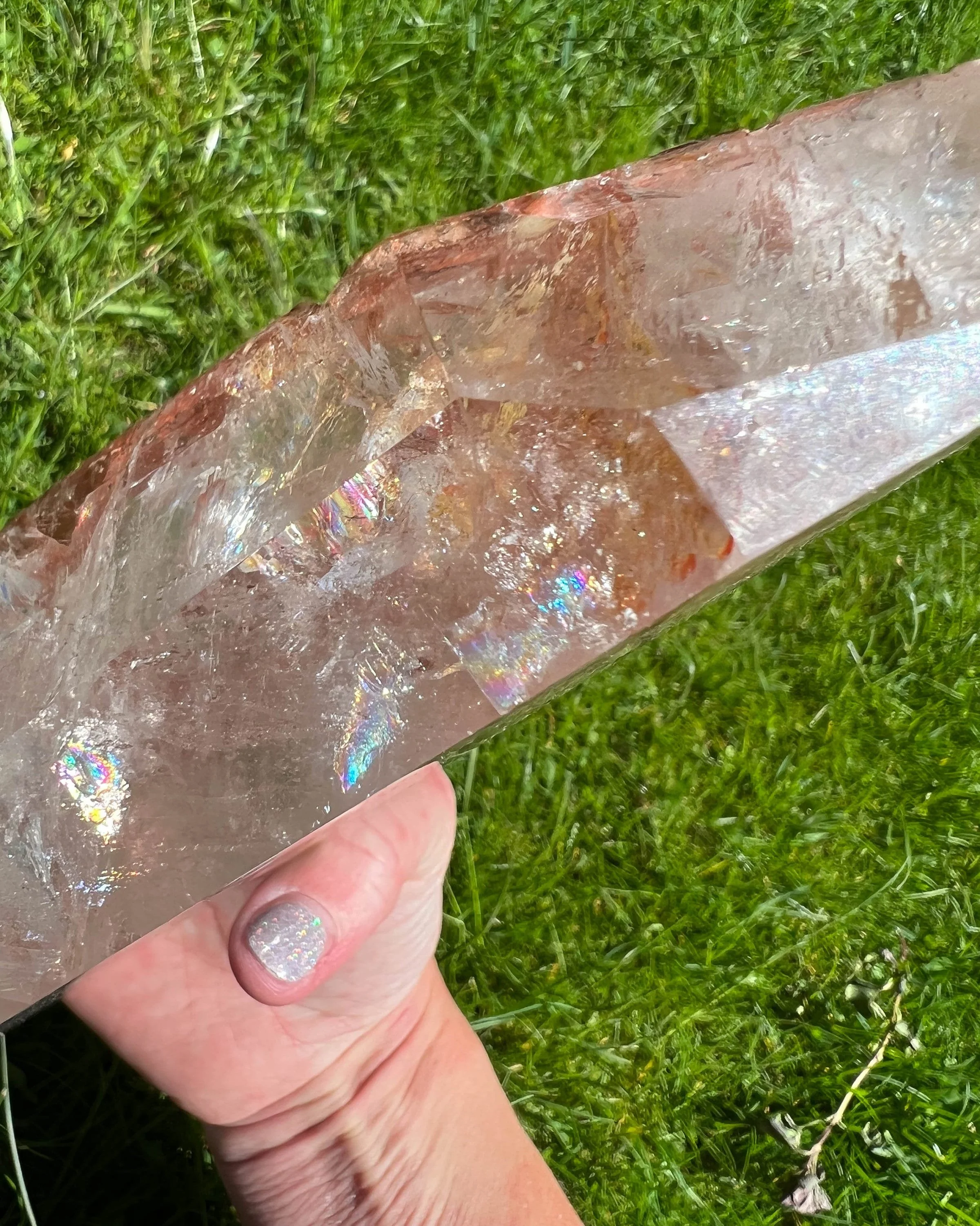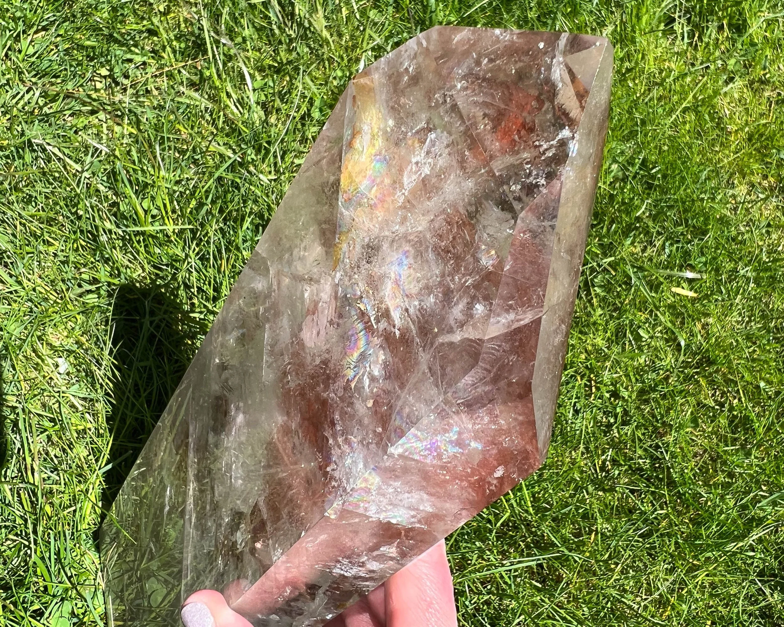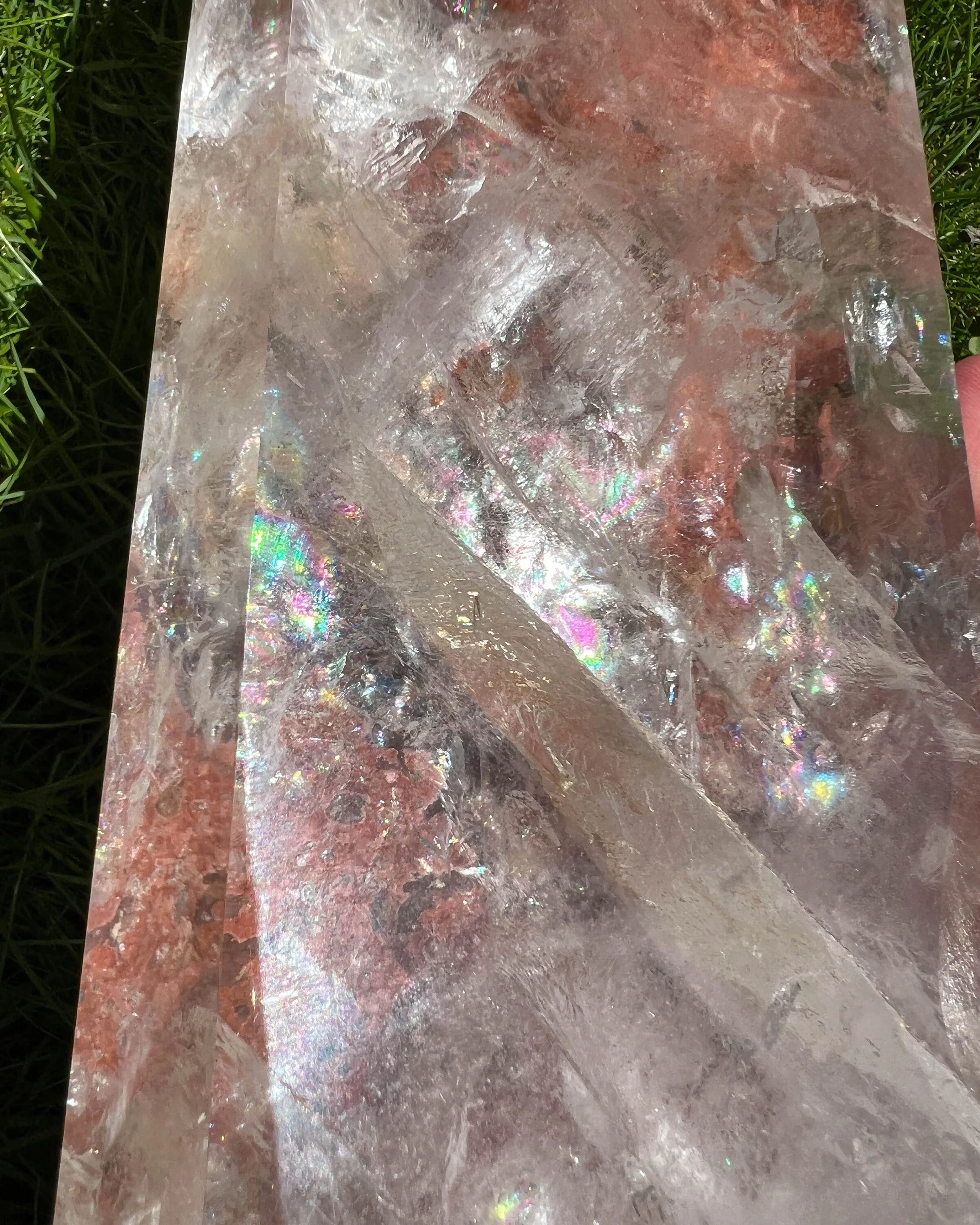 Large Hematoid Quartz Tower with Rainbows, Red Hematite in Quartz, Extra Large Quartz Crystal, Tabular Quartz Point, Home Decor, Polished