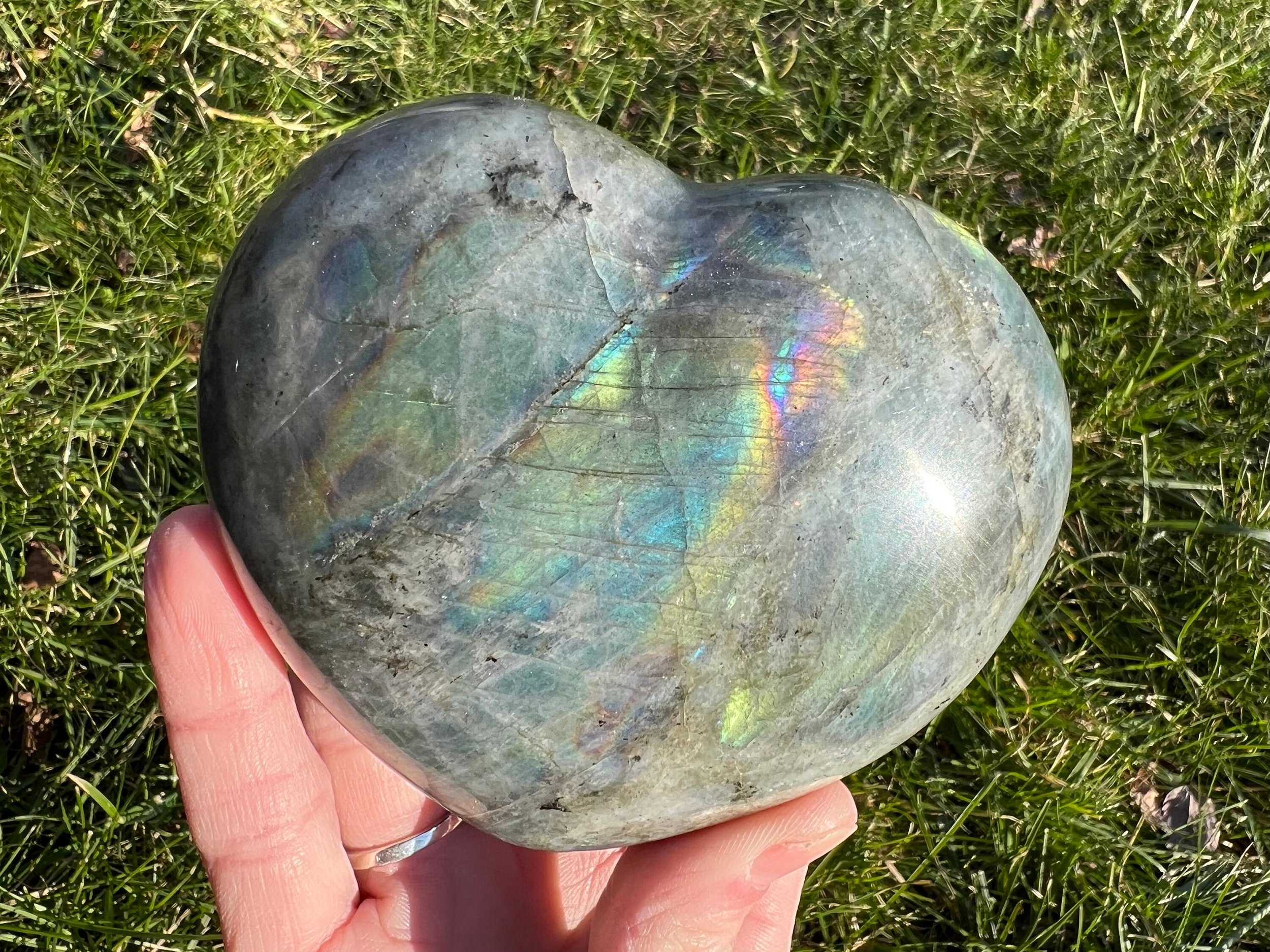 Large Labradorite Crystal Heart: Flashy Rainbow Gemstone (4.2") #6