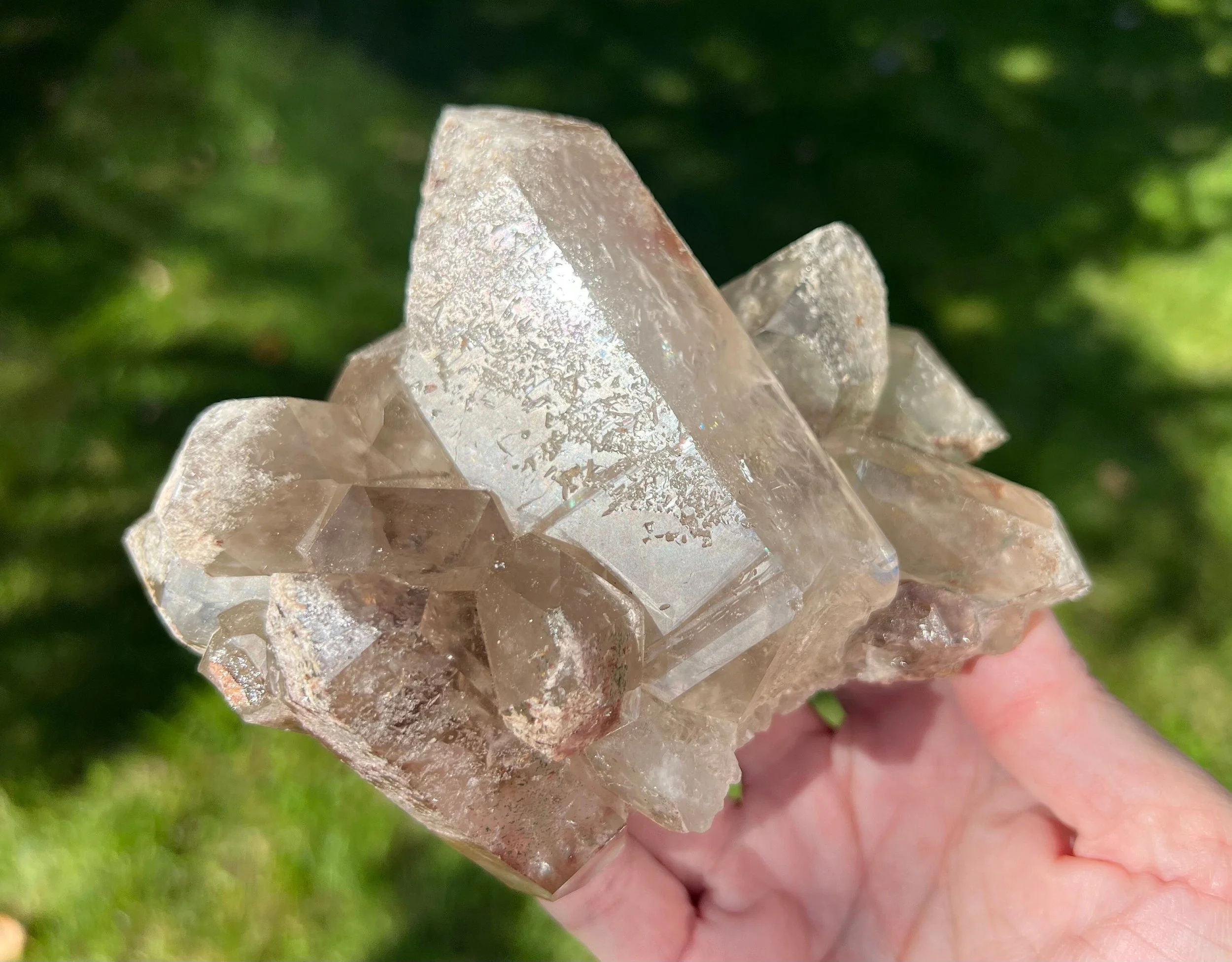 Large Lodolite Quartz Cluster L7 Double Terminated Pink Red Yellow Green Inclusion Quartz, Raw Rough Natural Smoky Quartz Crystal Home Decor