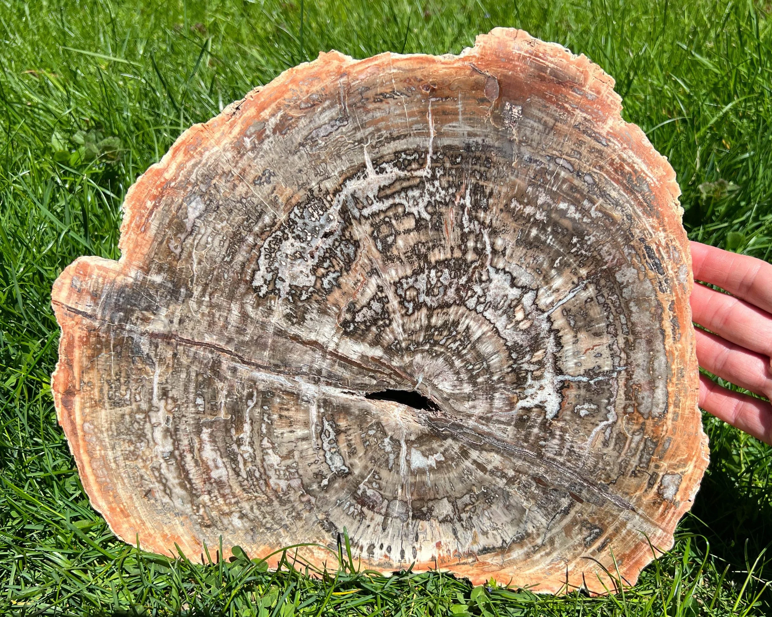 Large Petrified Wood Slab with Quartz Druzy, Polished Petrified Wood Slice, Fossilized Wood from Madagascar, Crystal Home Decor Gift for Her