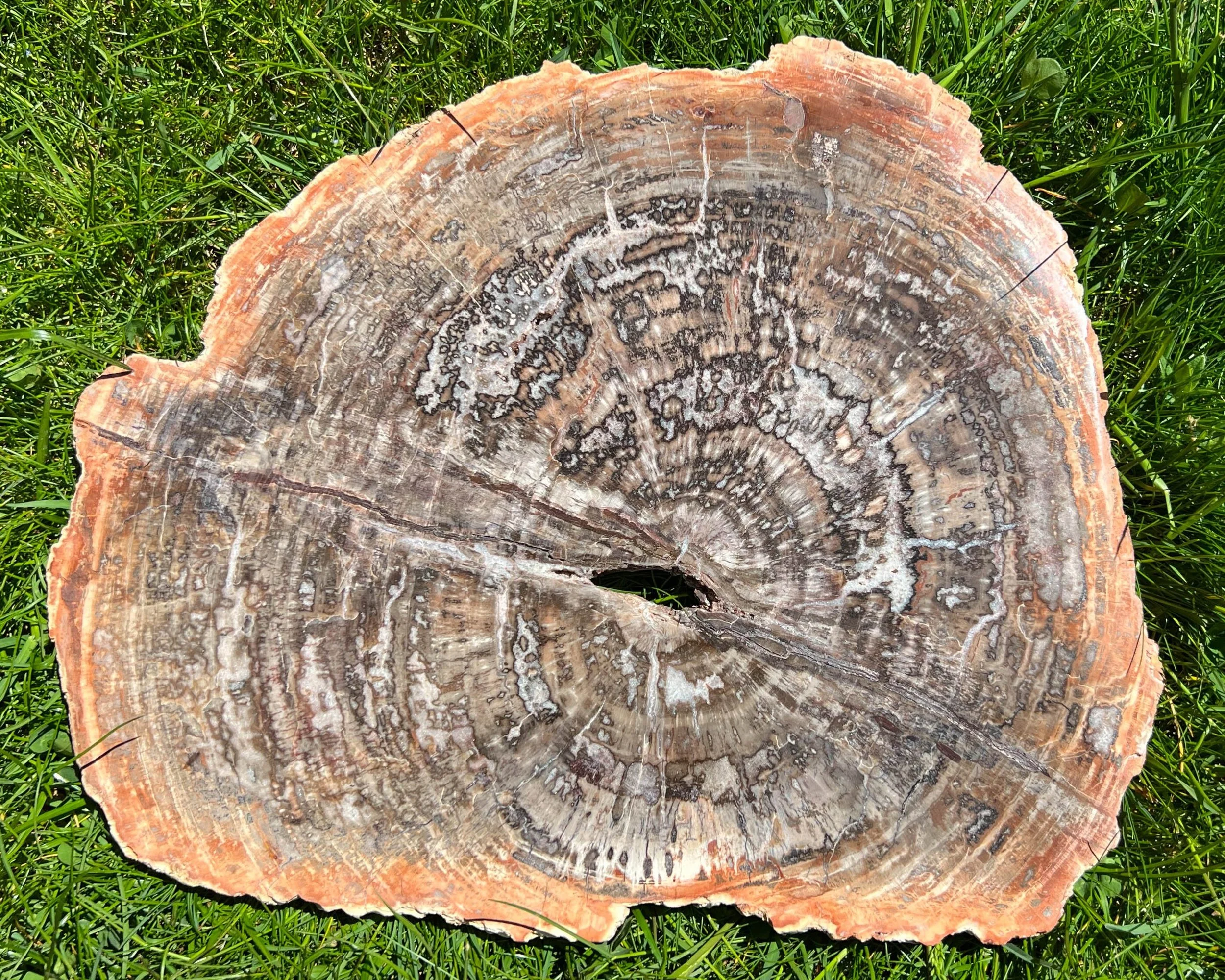 Large Petrified Wood Slice with Druzy, Fossilized Polished Slab from Madagascar, Crystal Home Decor