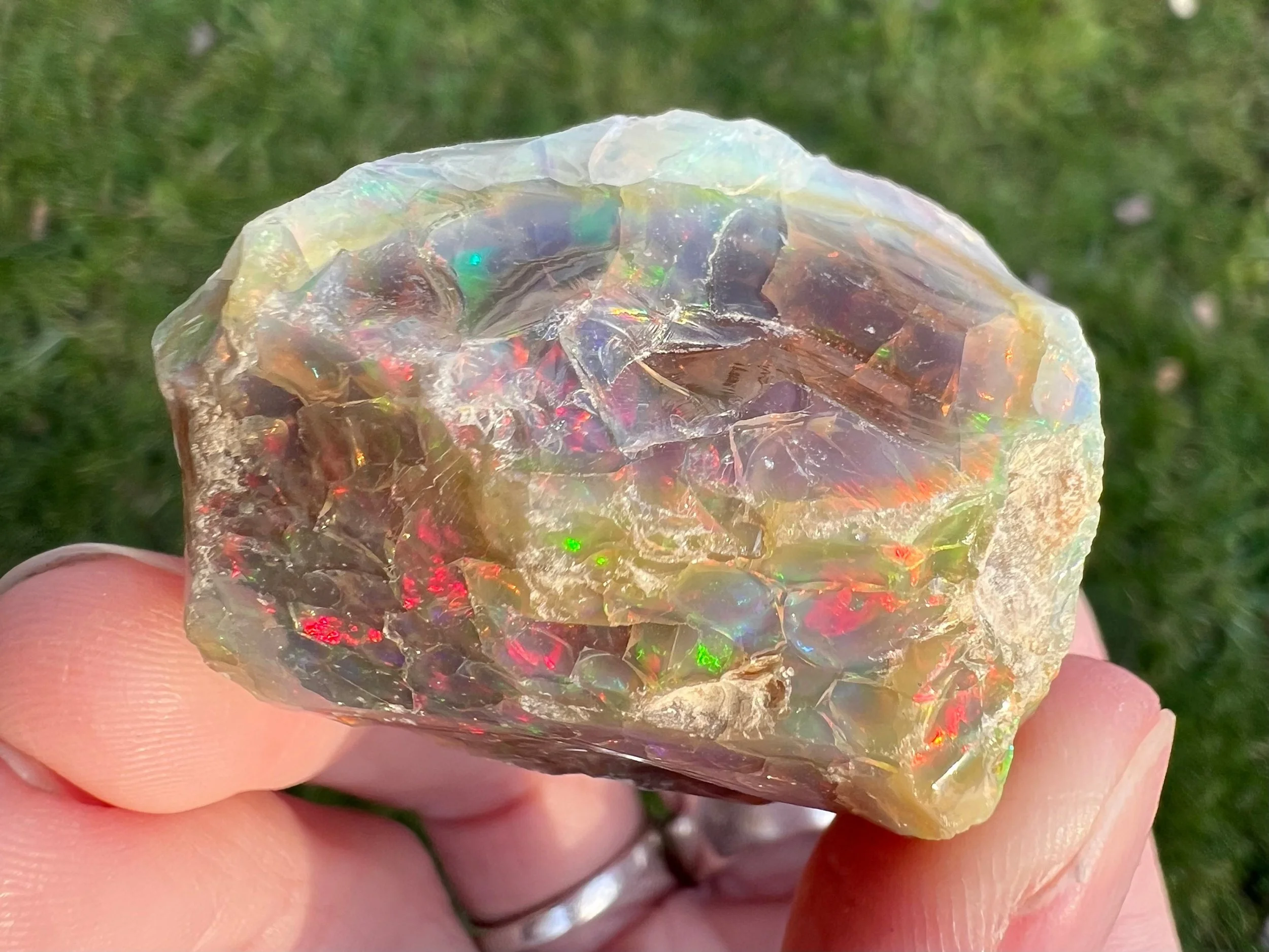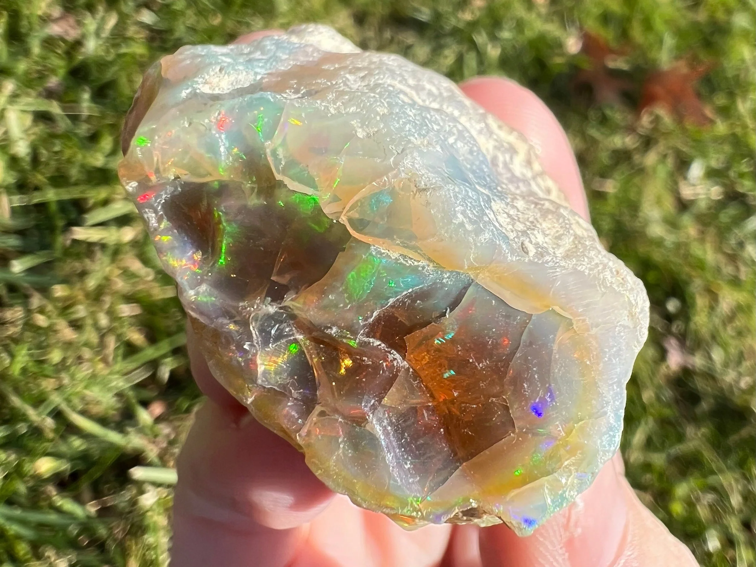 Large Raw Ethiopian Welo Opal with Rainbow Flash, Natural Rough Crystal, October Birthstone #207